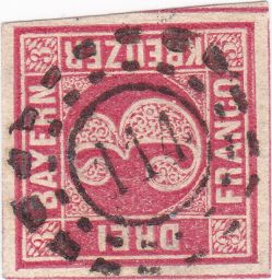 Der gMR 114 von Erlangen war wahrscheinlich nur im Dezember 1856 in Verwendung und ist deshalb sehr selten und nur auf Brief nachweisbar. |