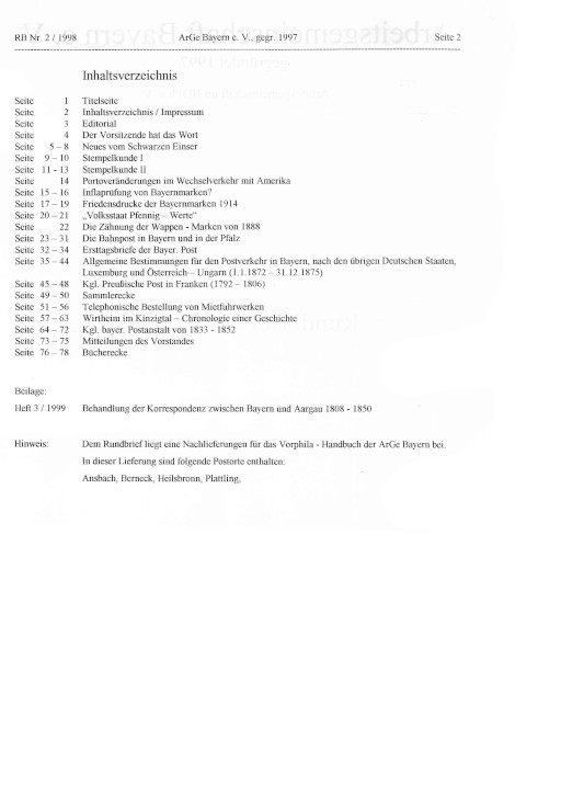 - Rundbrief der Arbeitsgemeinschaft Bayern e.V. 1997 aus dem Jahre 1999. Gedruckt im Format DIN A4 mit vielen s/w-Abbildungen.