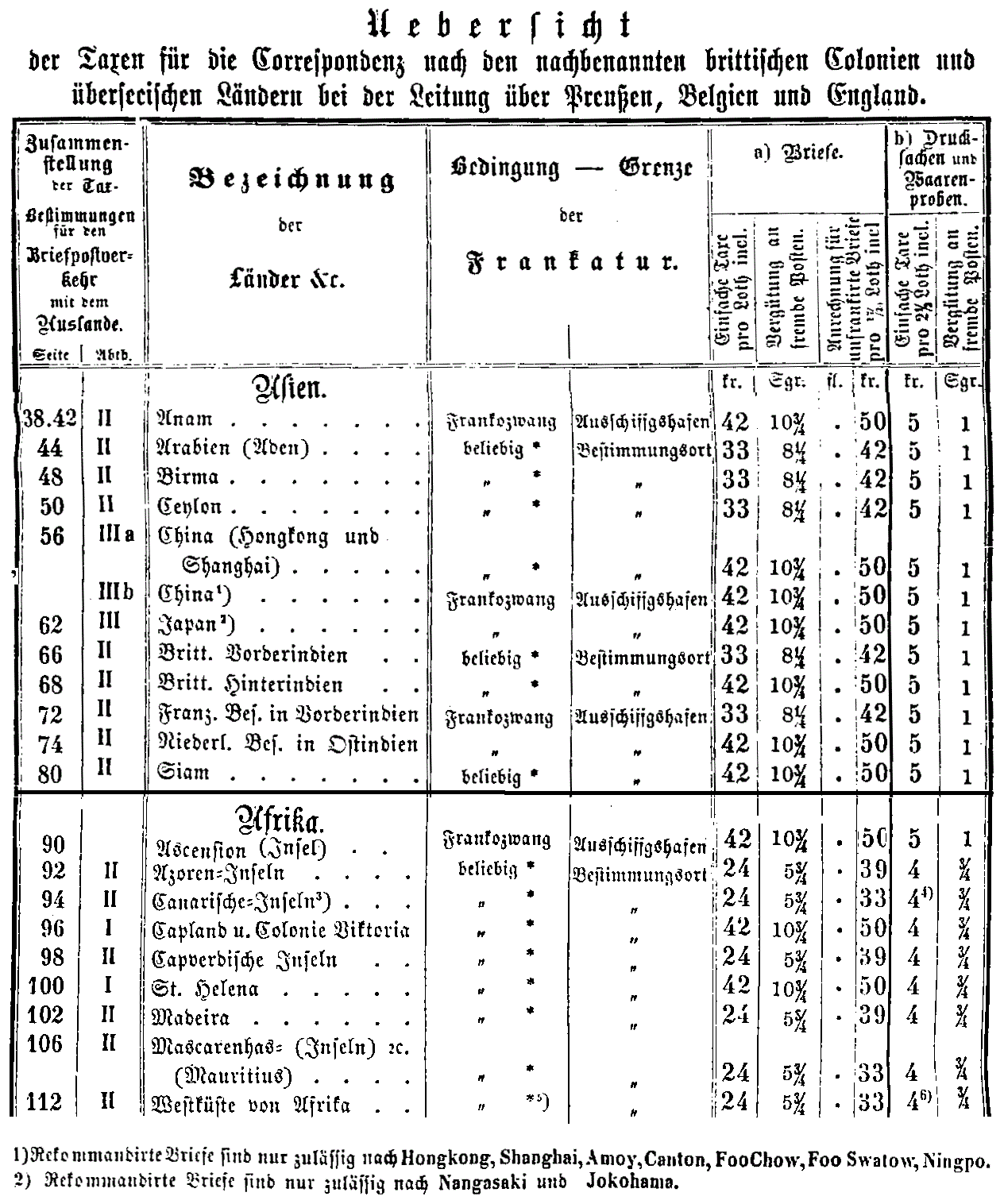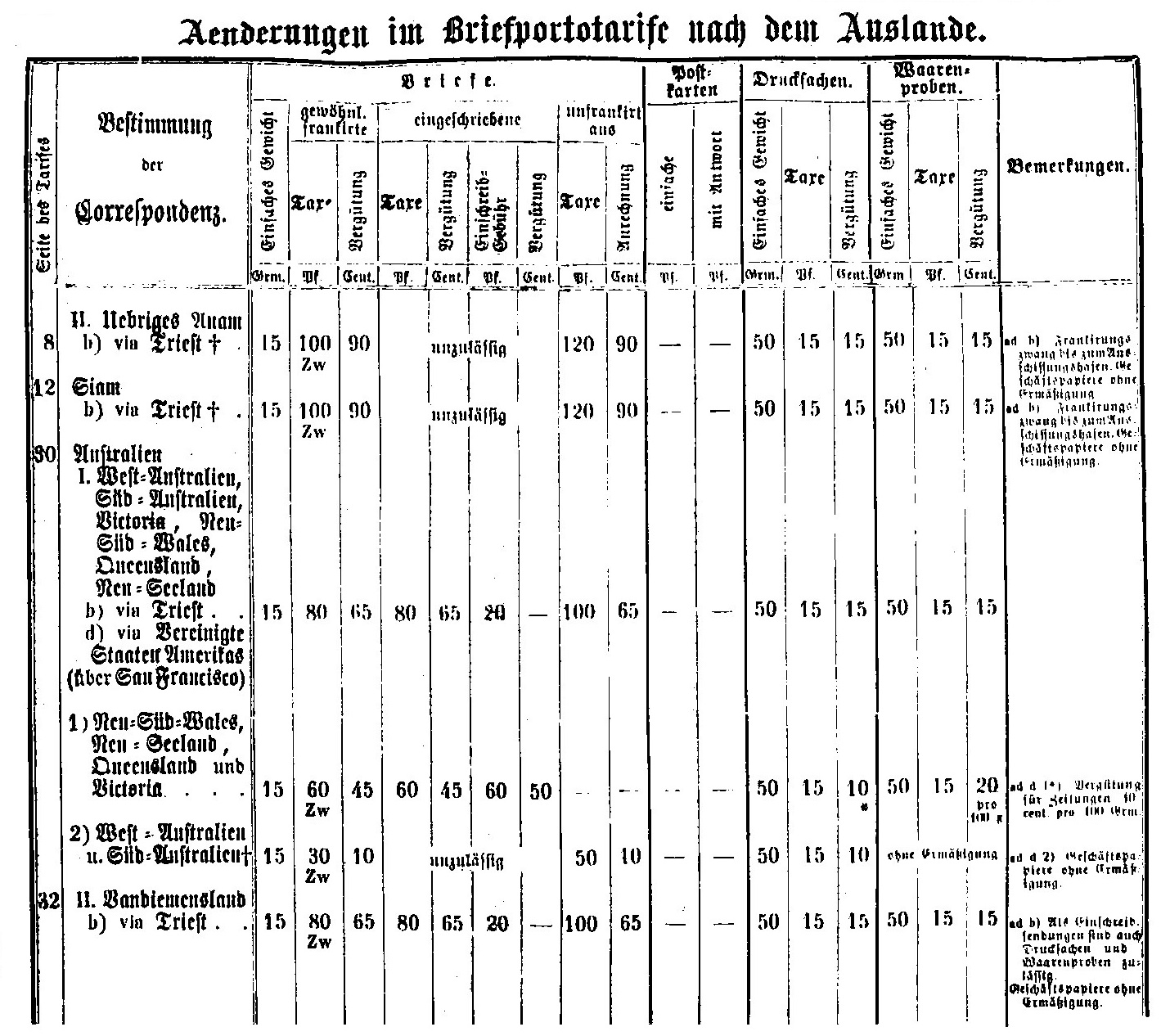 Postverordnungen - Transitgebühren