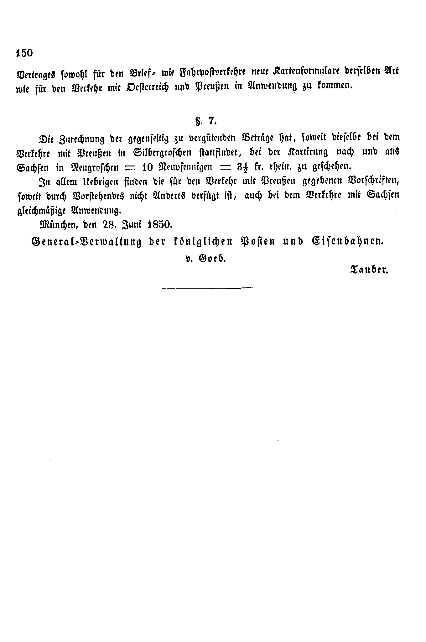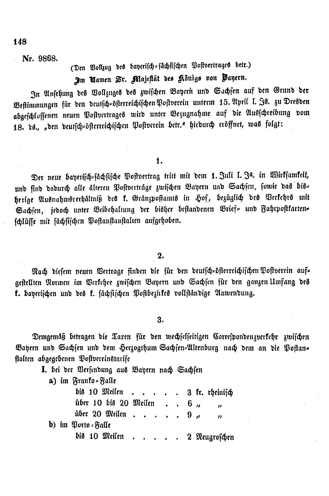 Postverordnungen - Postvertrag Bayern-Preussen-Sachsen 1850