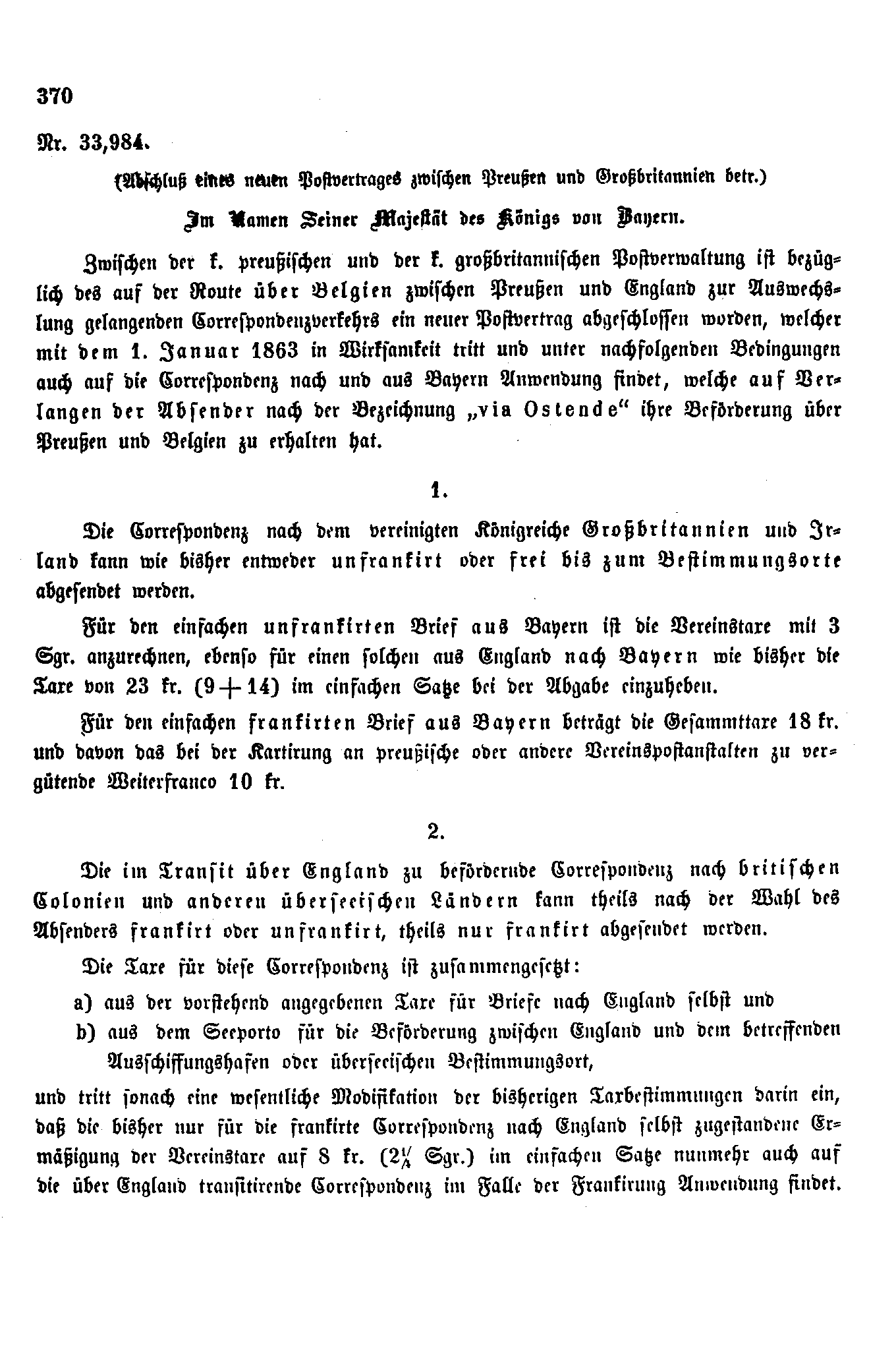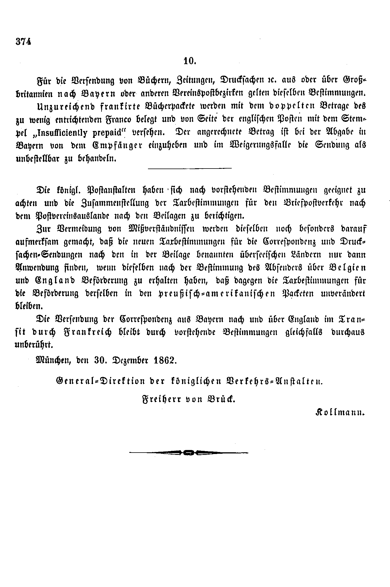 Postverordnungen - Postvertrag Preussen - Grossbritannien 1862