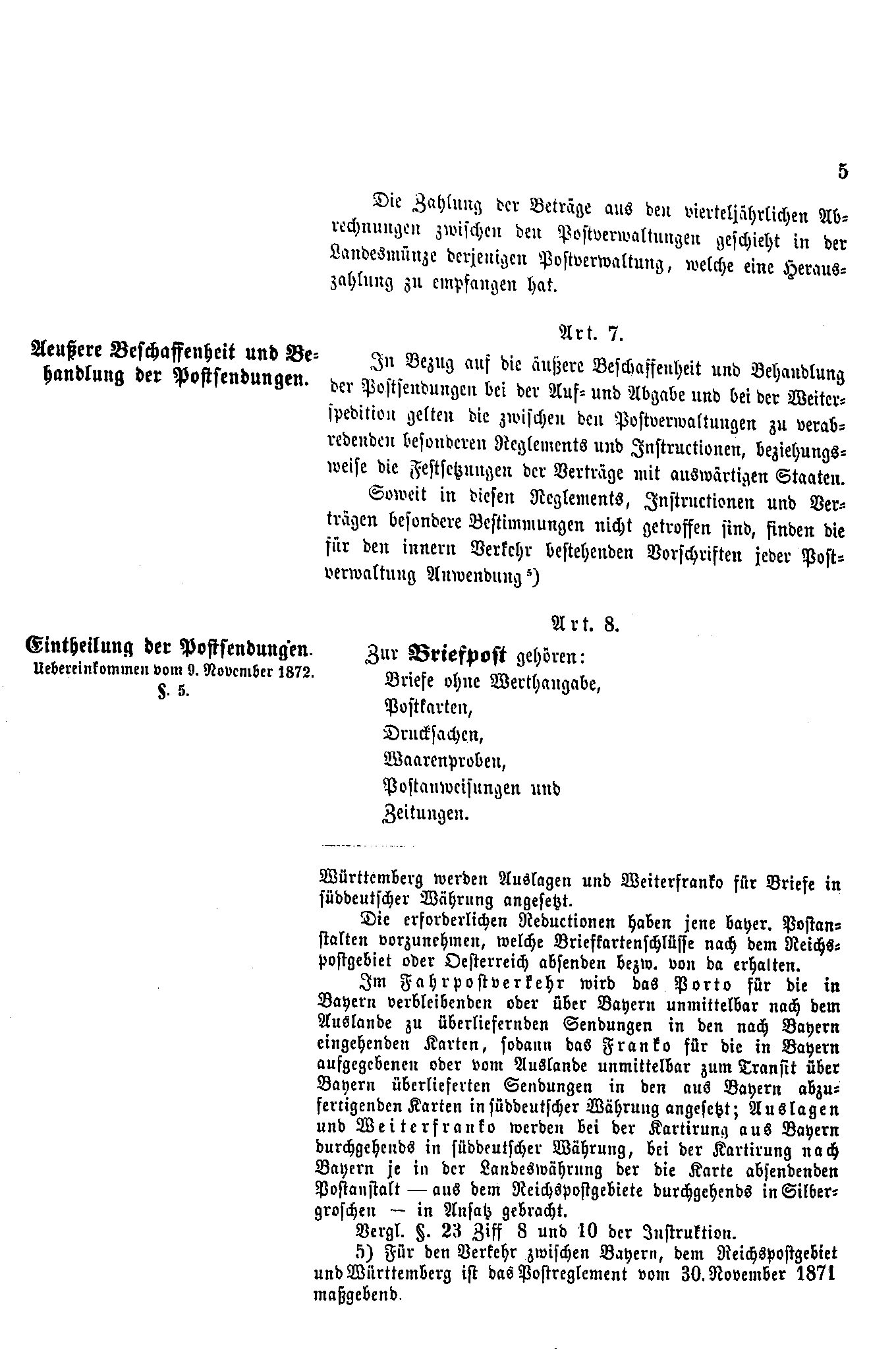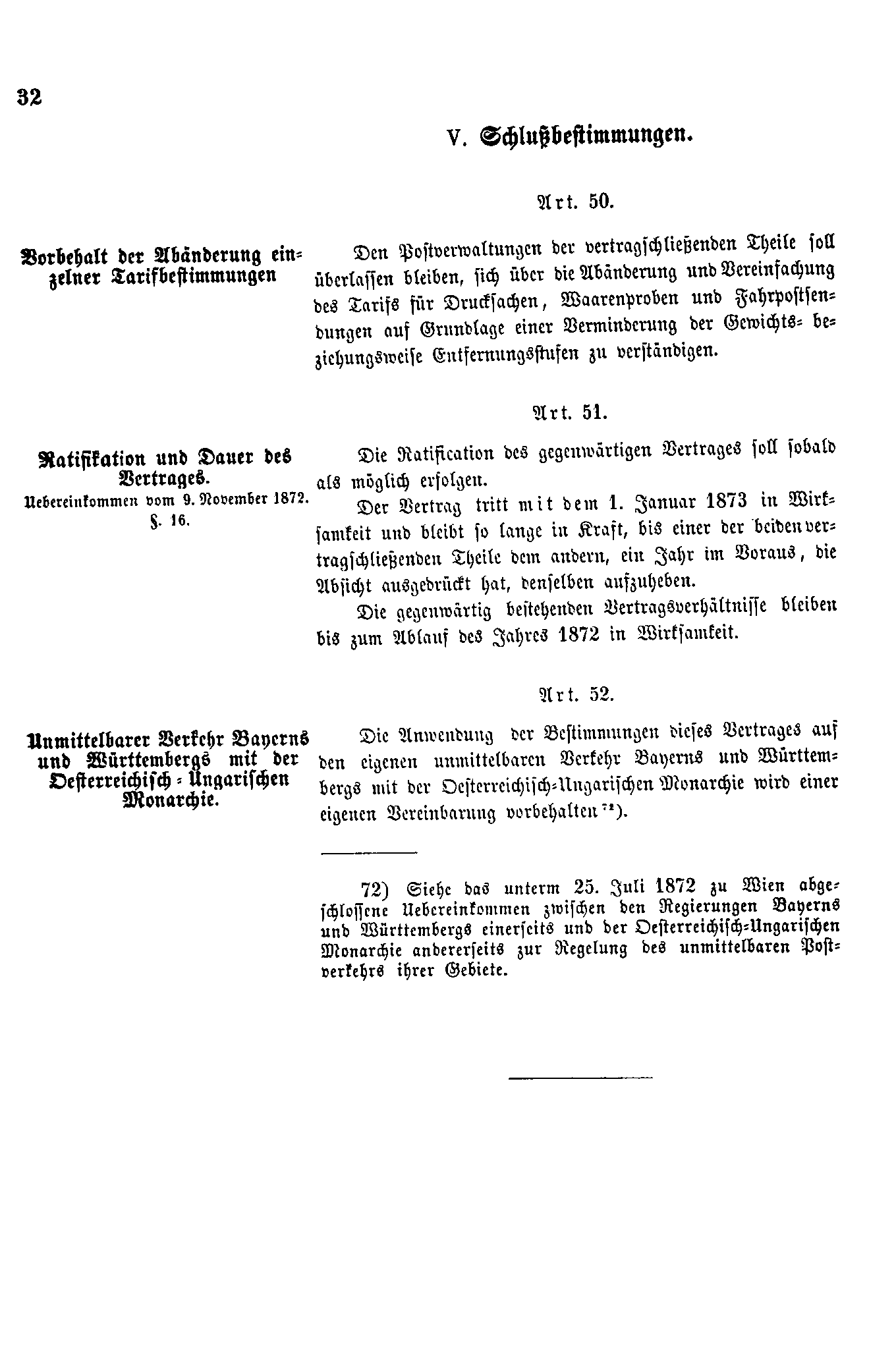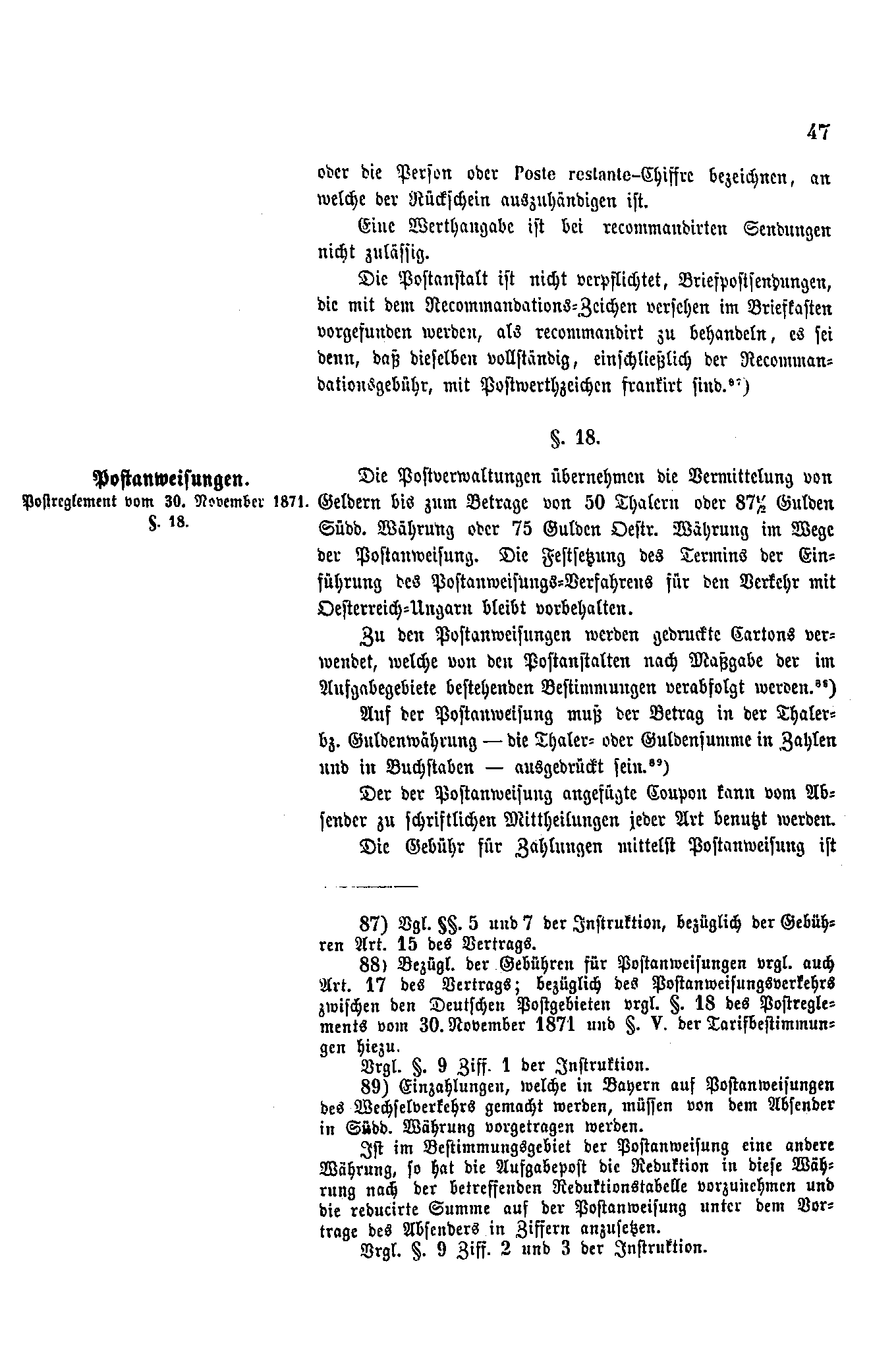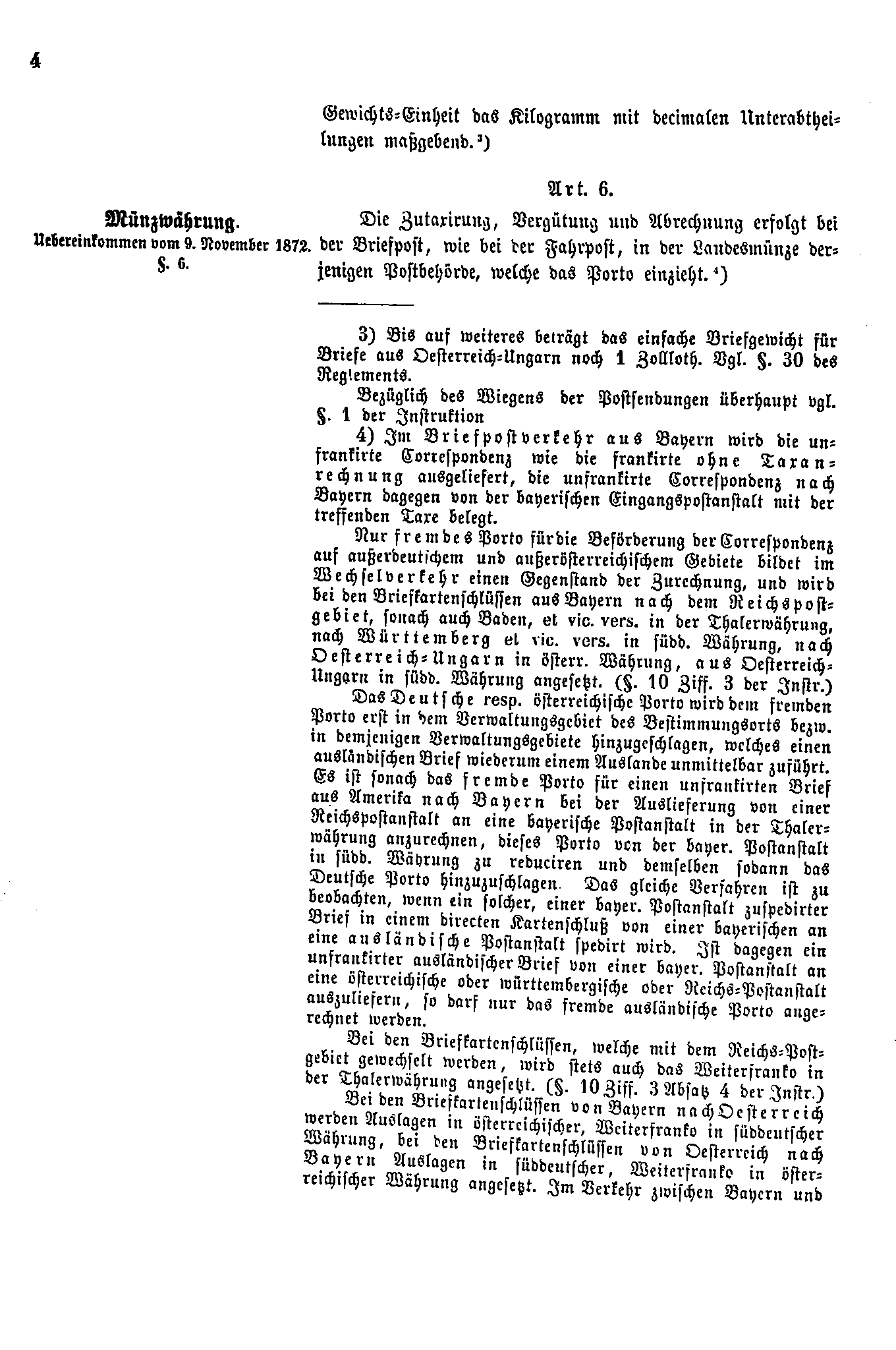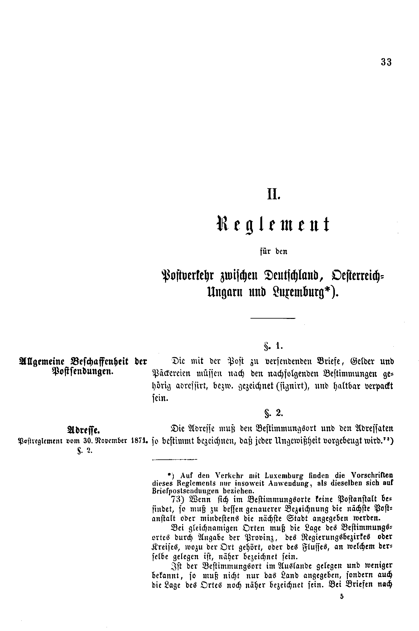 Postverordnungen - Postvertrag Deutsches Reich - Österreich - Ungarn - Luxemburg 1872