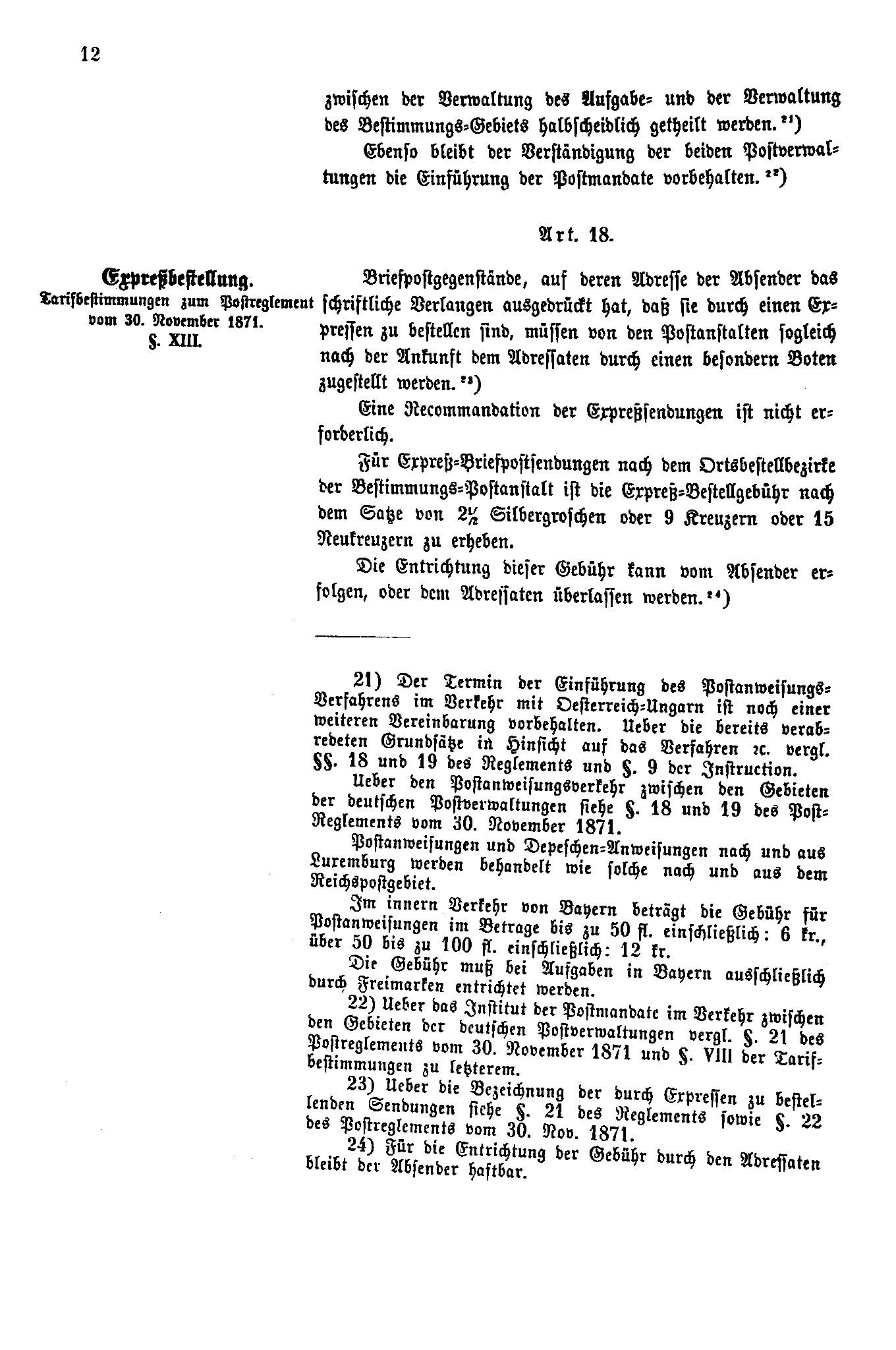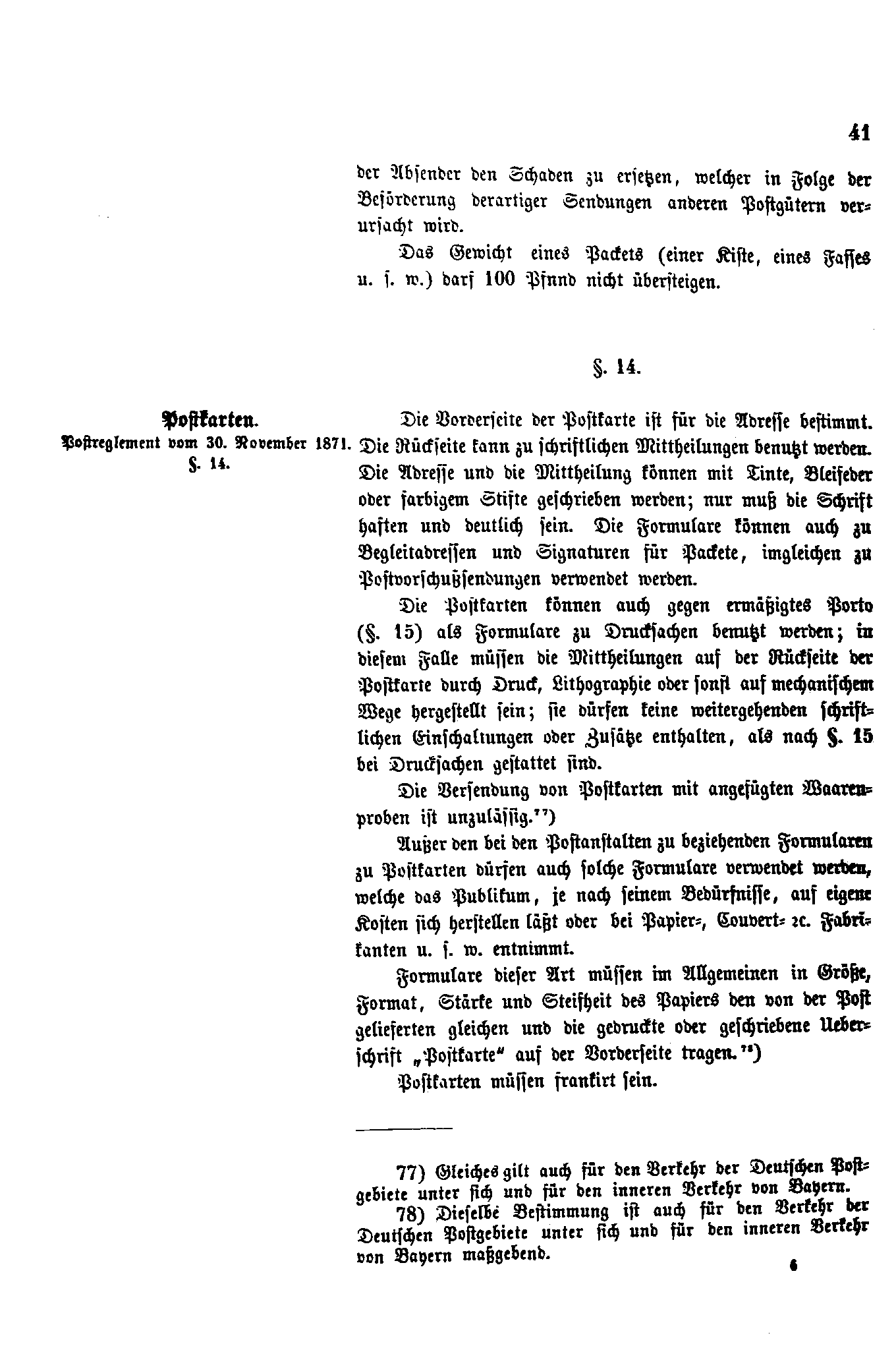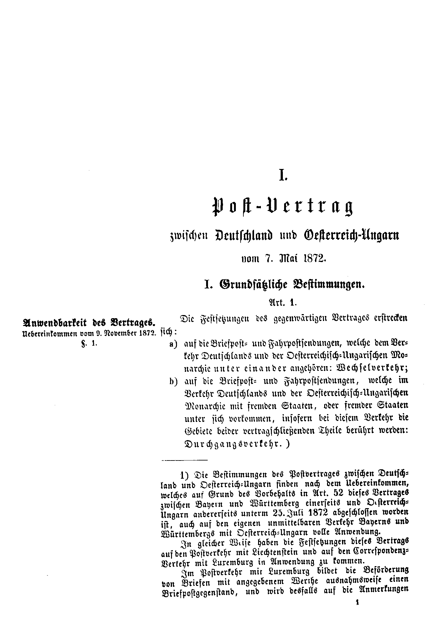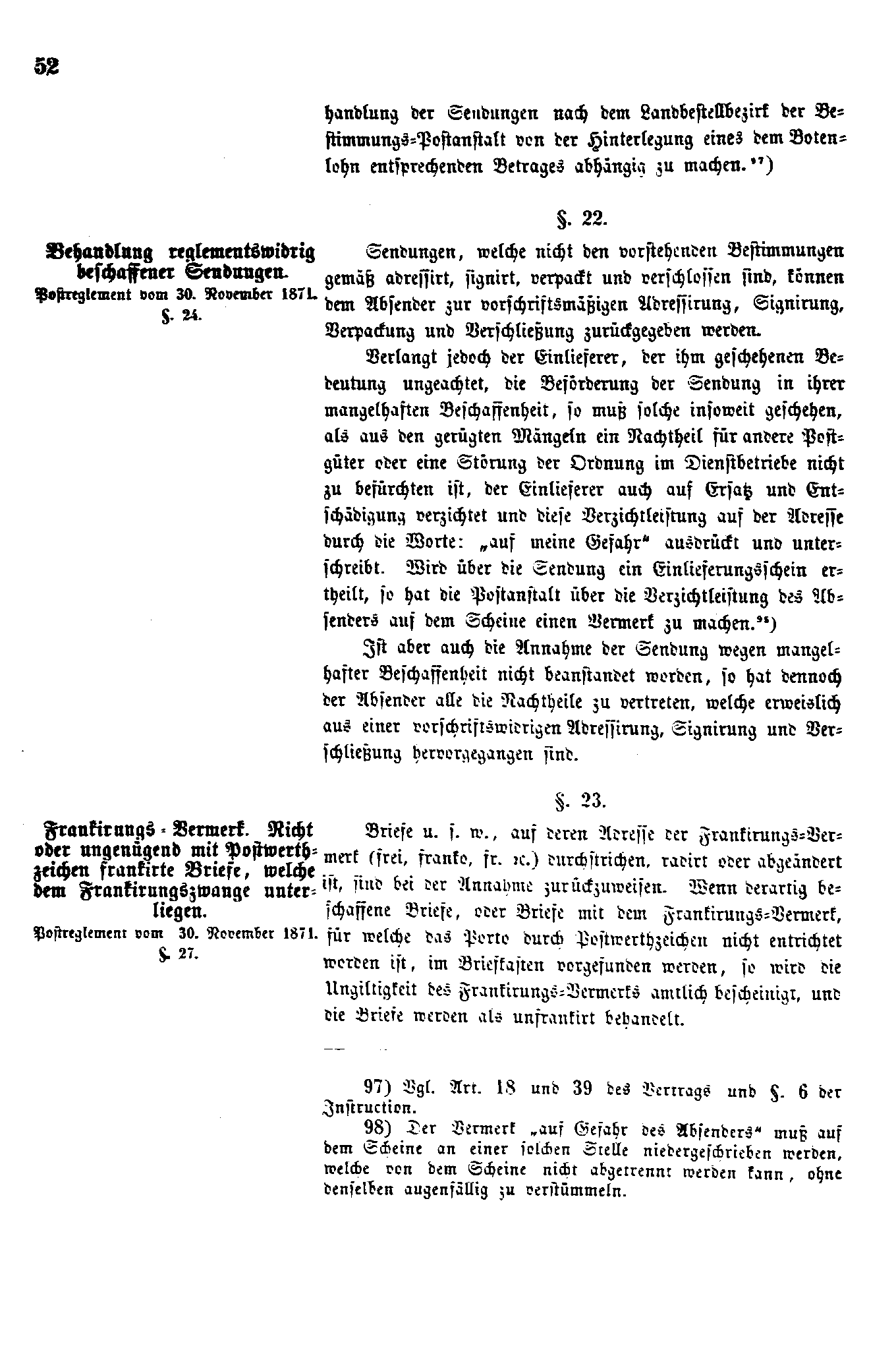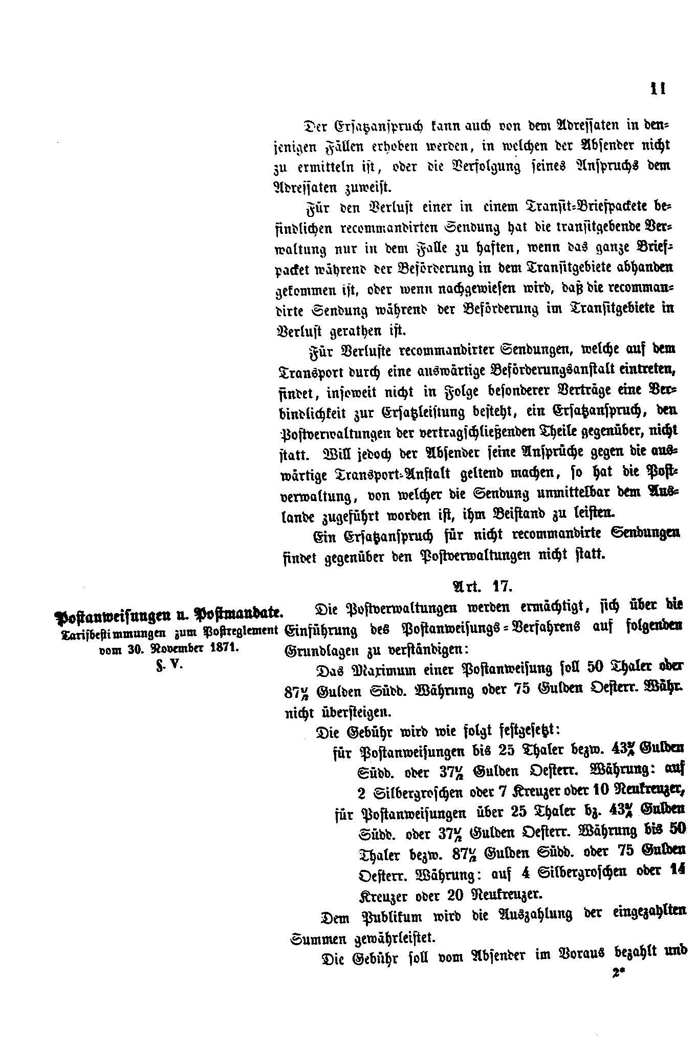 Postverordnungen - Postvertrag Deutsches Reich - Österreich - Ungarn - Luxemburg 1872