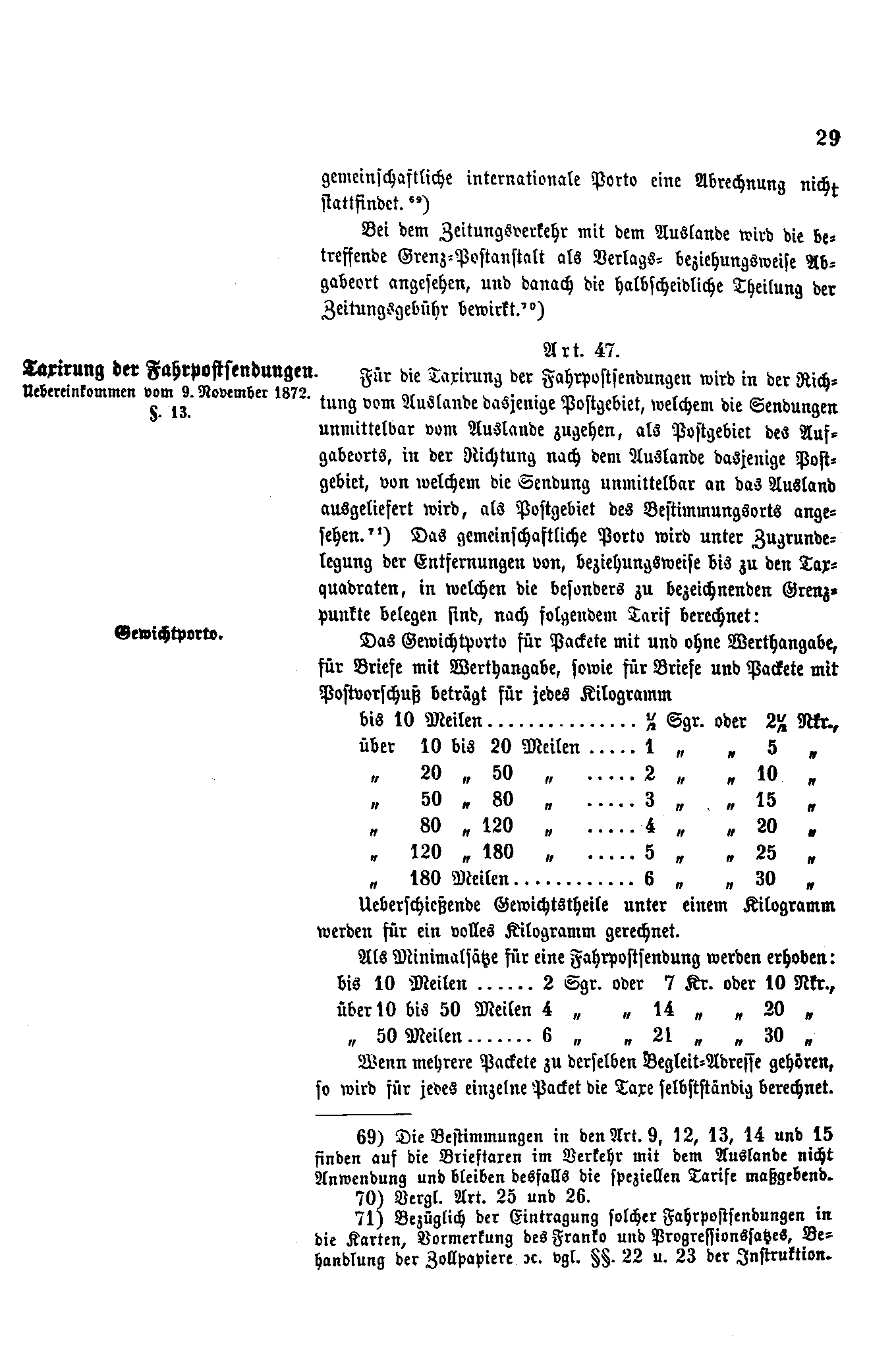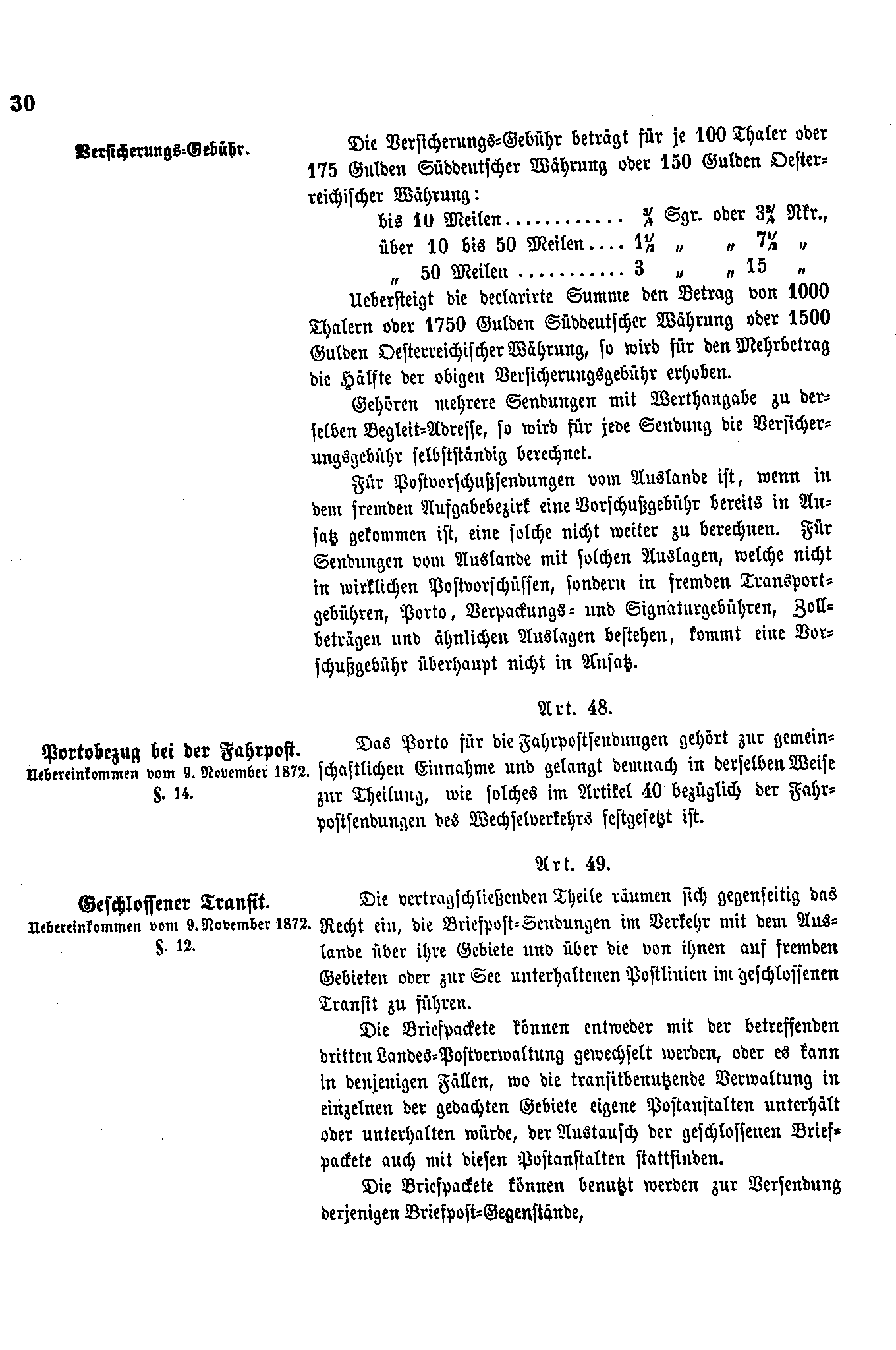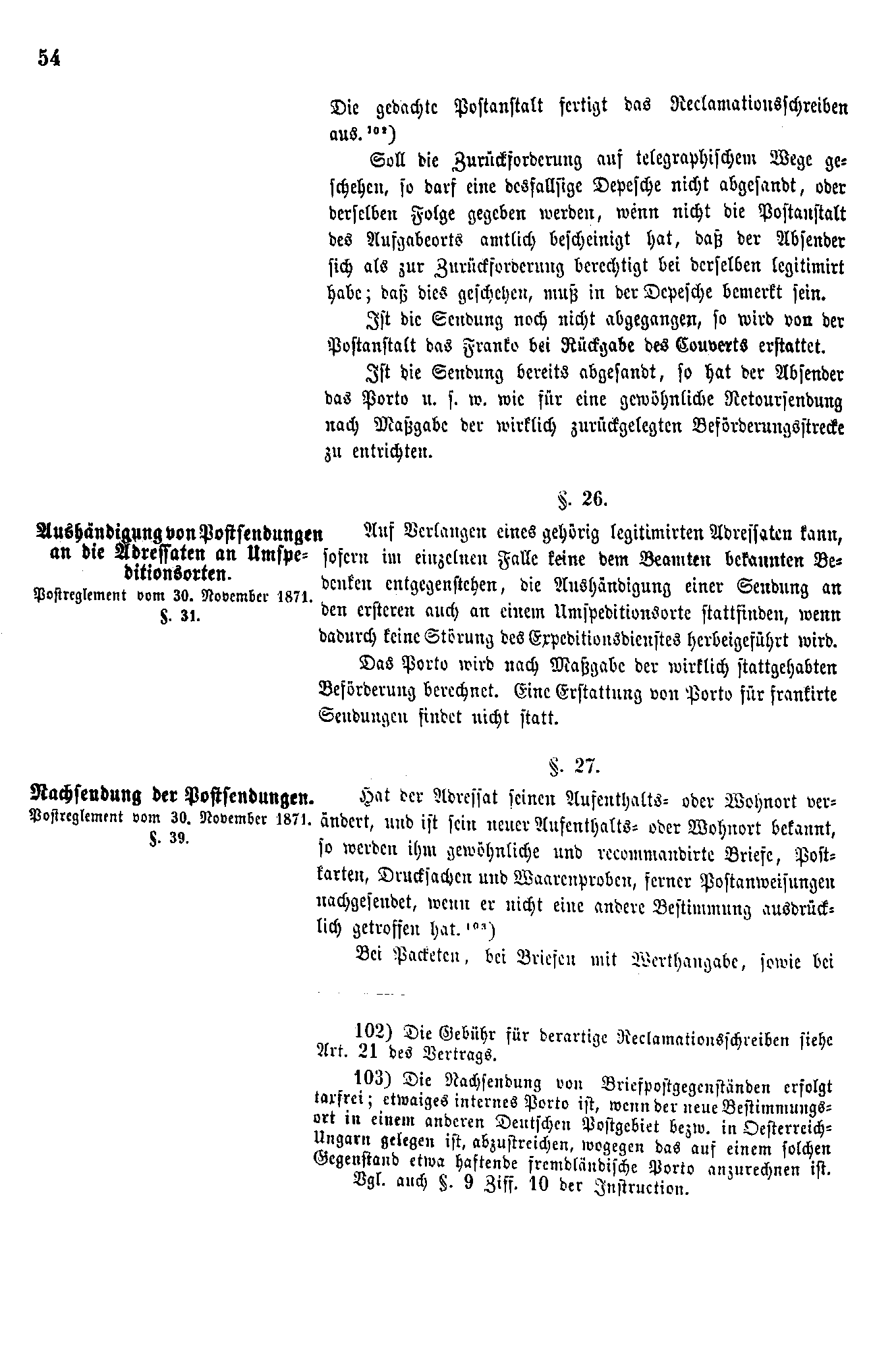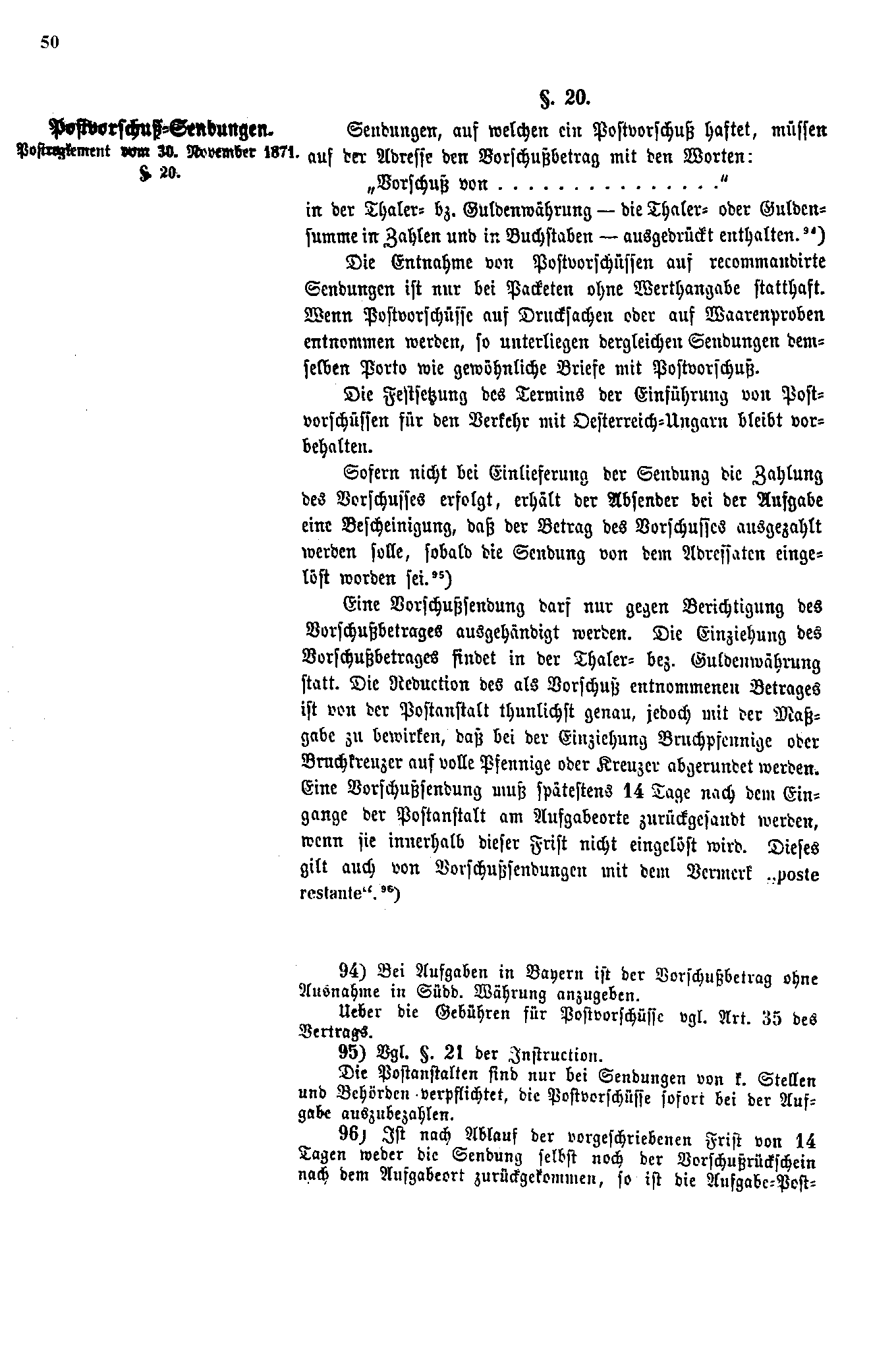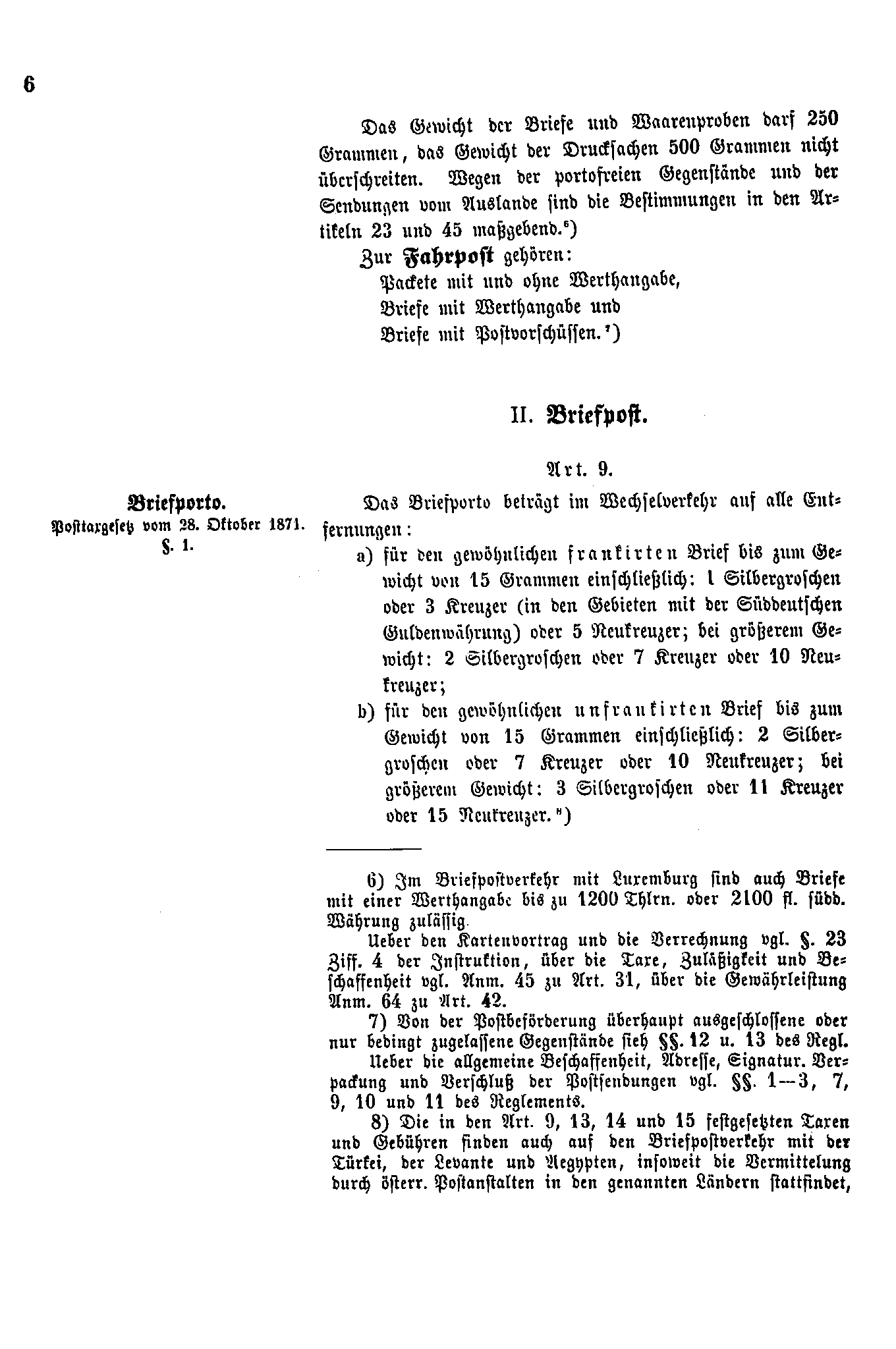 Postverordnungen - Postvertrag Deutsches Reich - Österreich - Ungarn - Luxemburg 1872