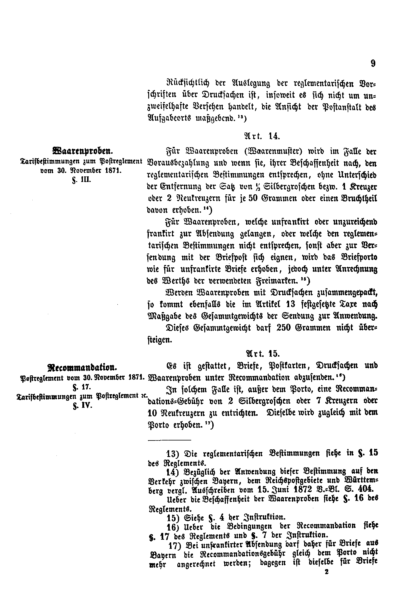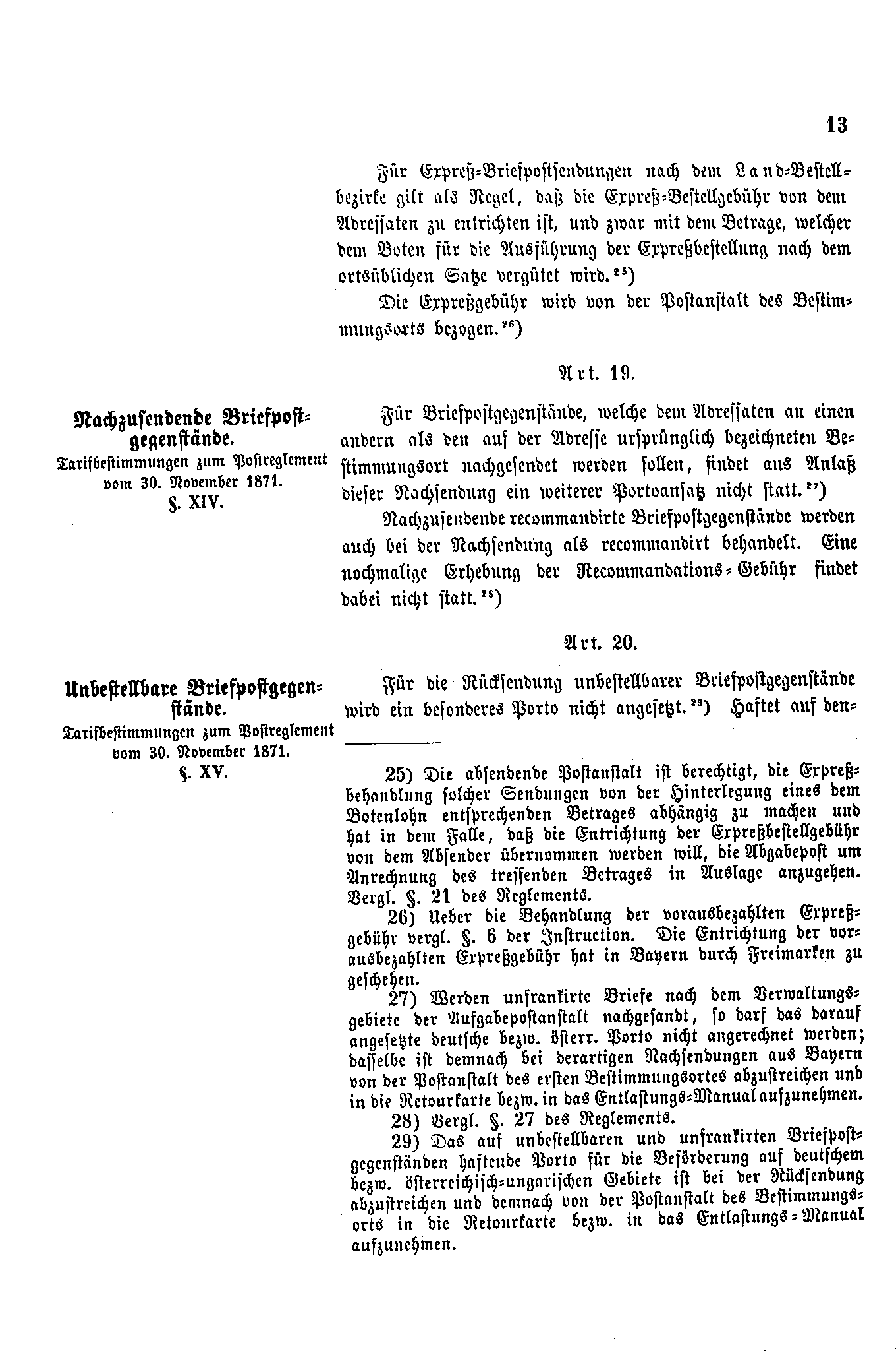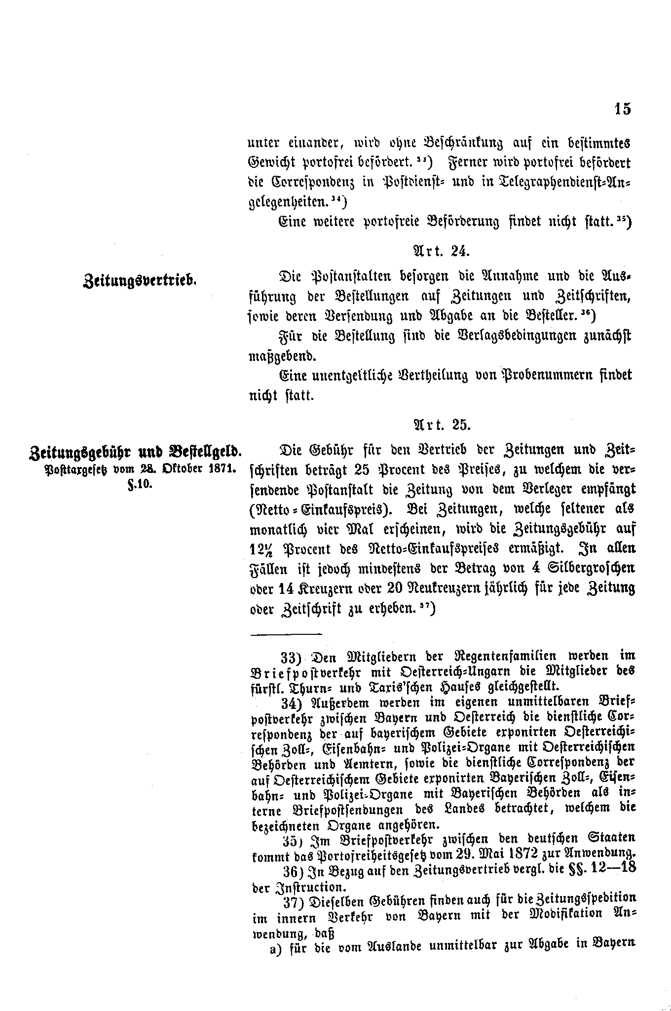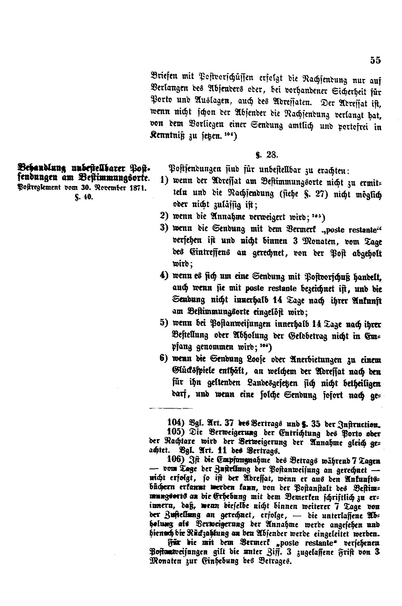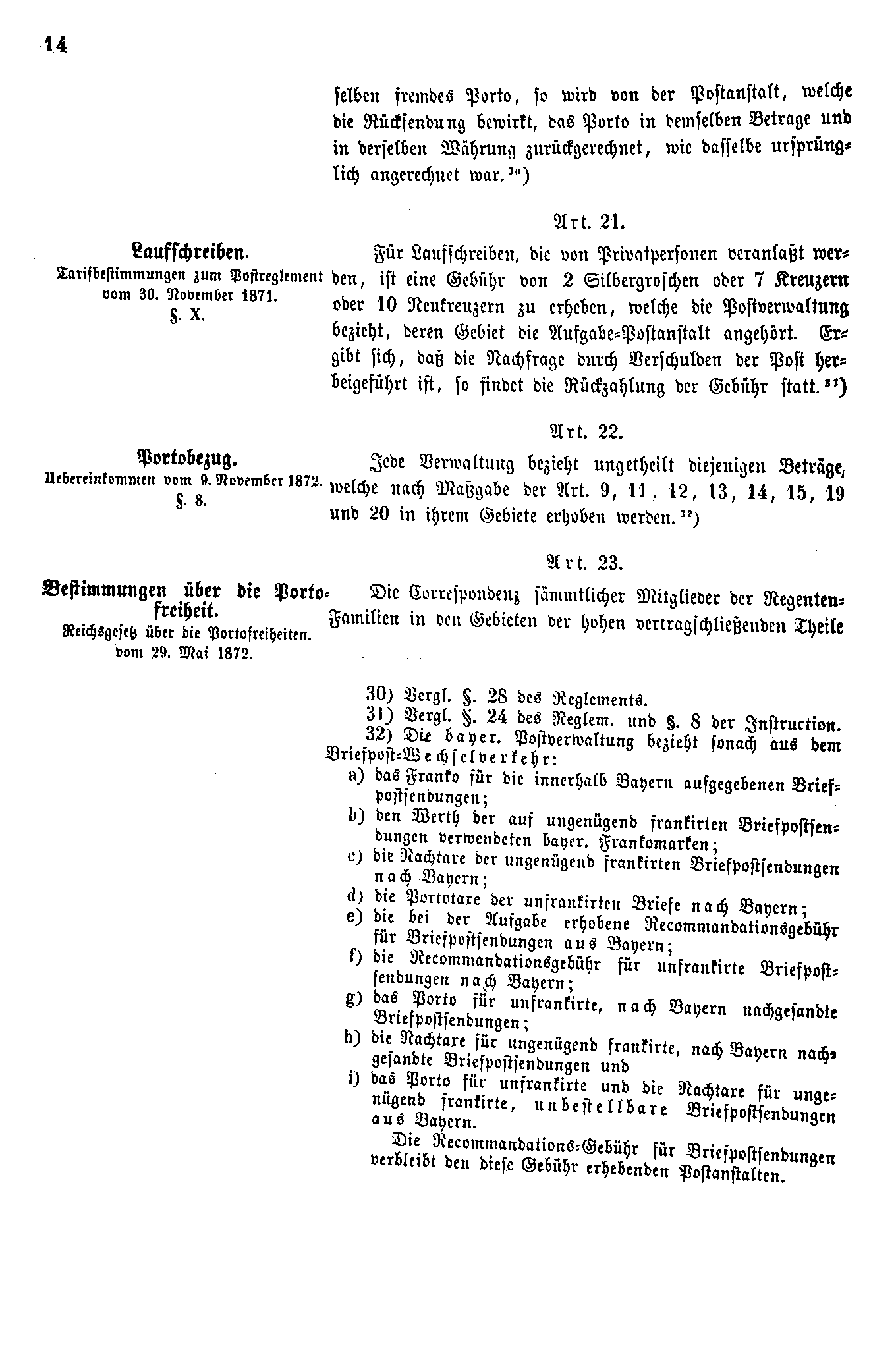 Postverordnungen - Postvertrag Deutsches Reich - Österreich - Ungarn - Luxemburg 1872