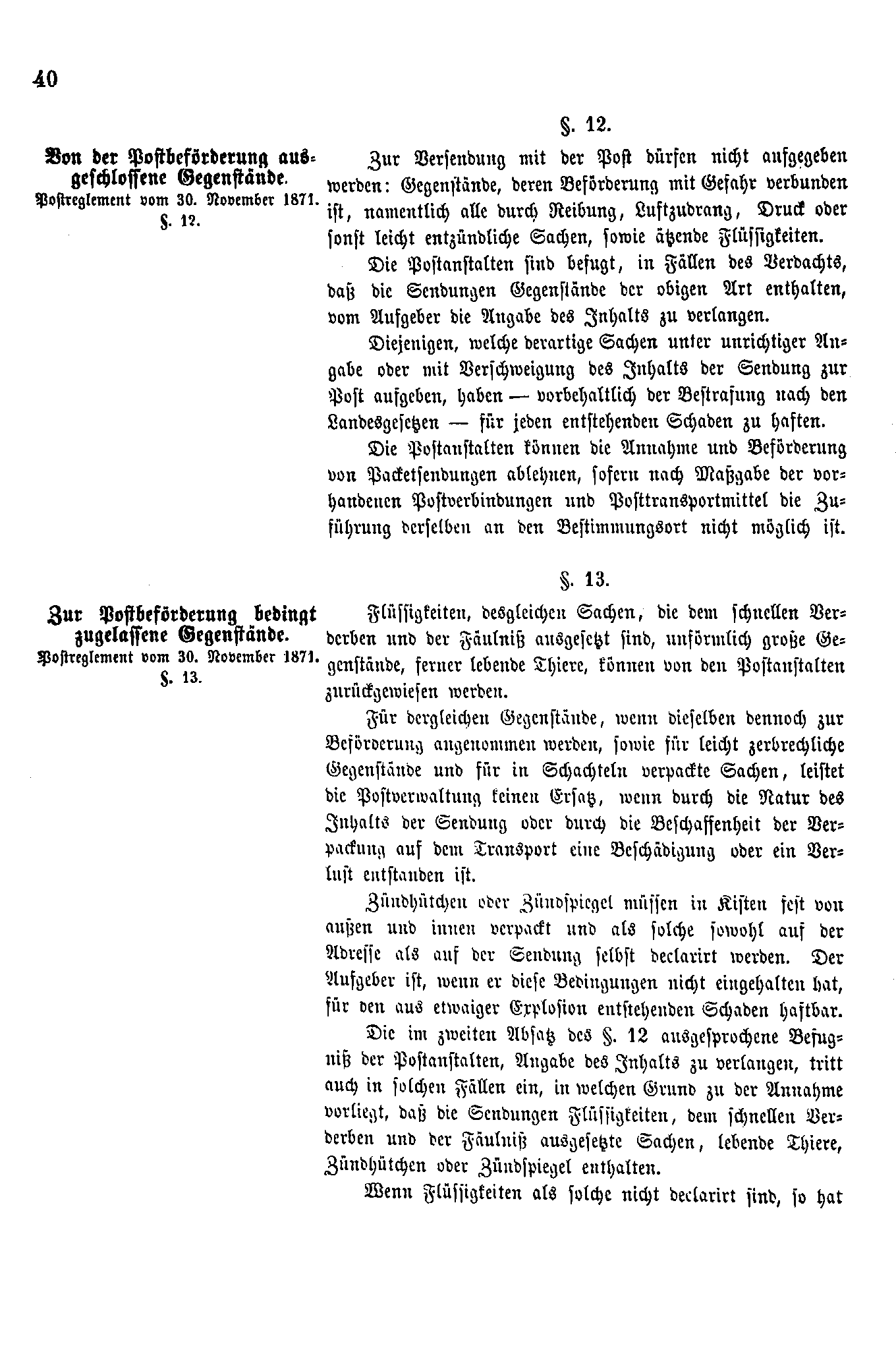 • Postverordnungen