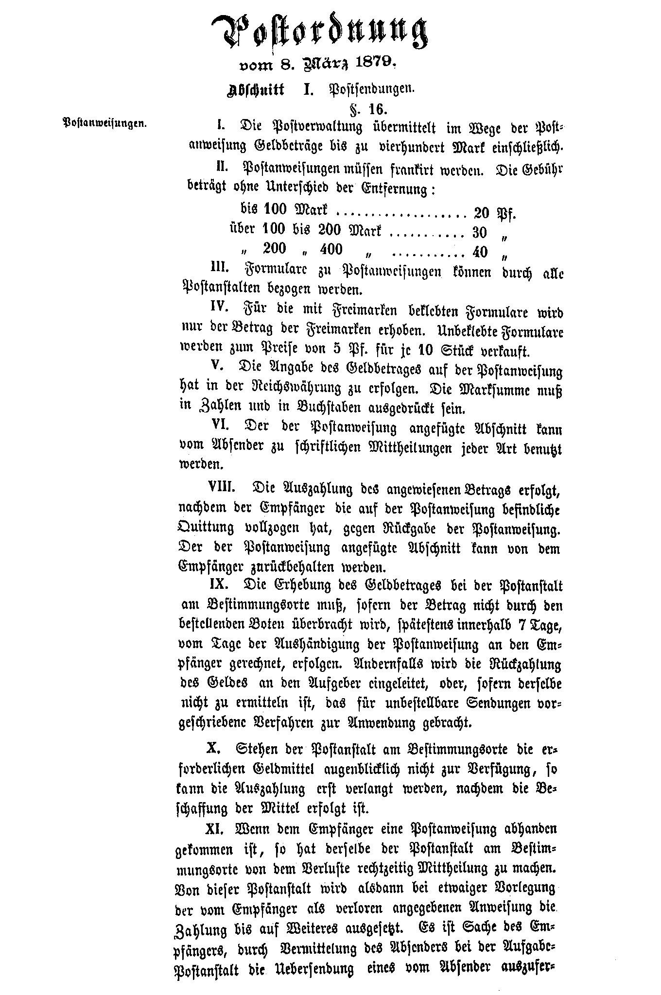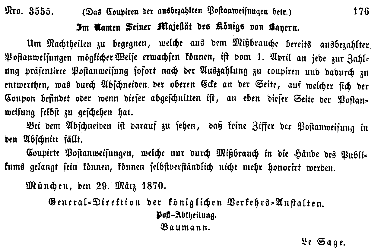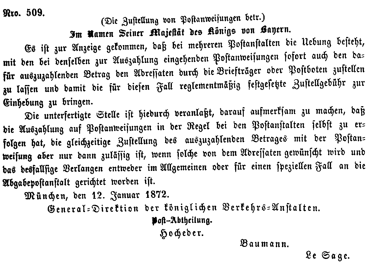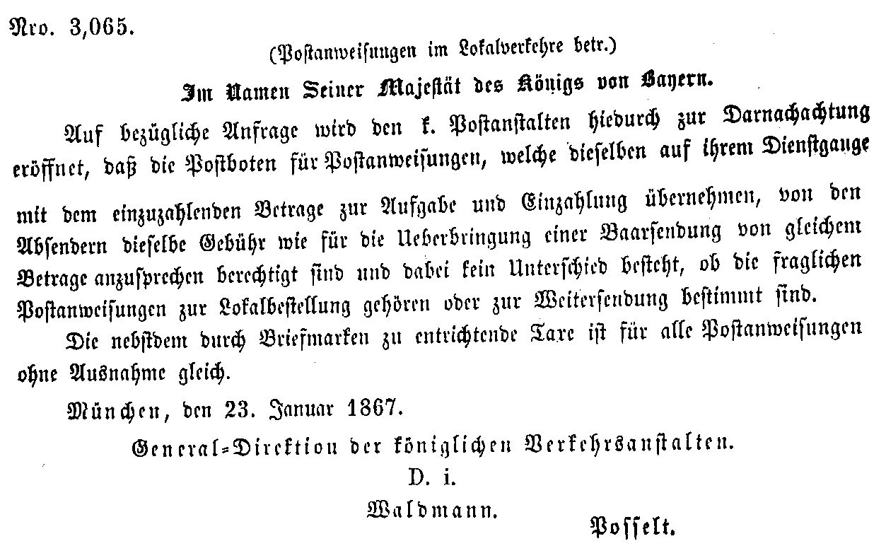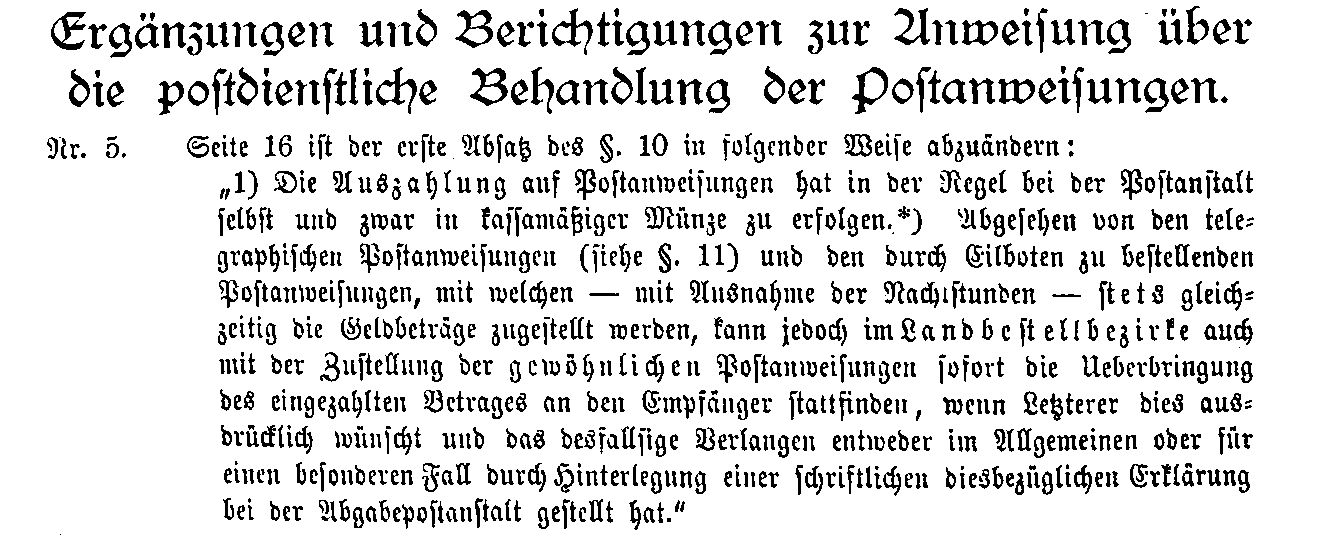 Postverordnungen - Postanweisungen
