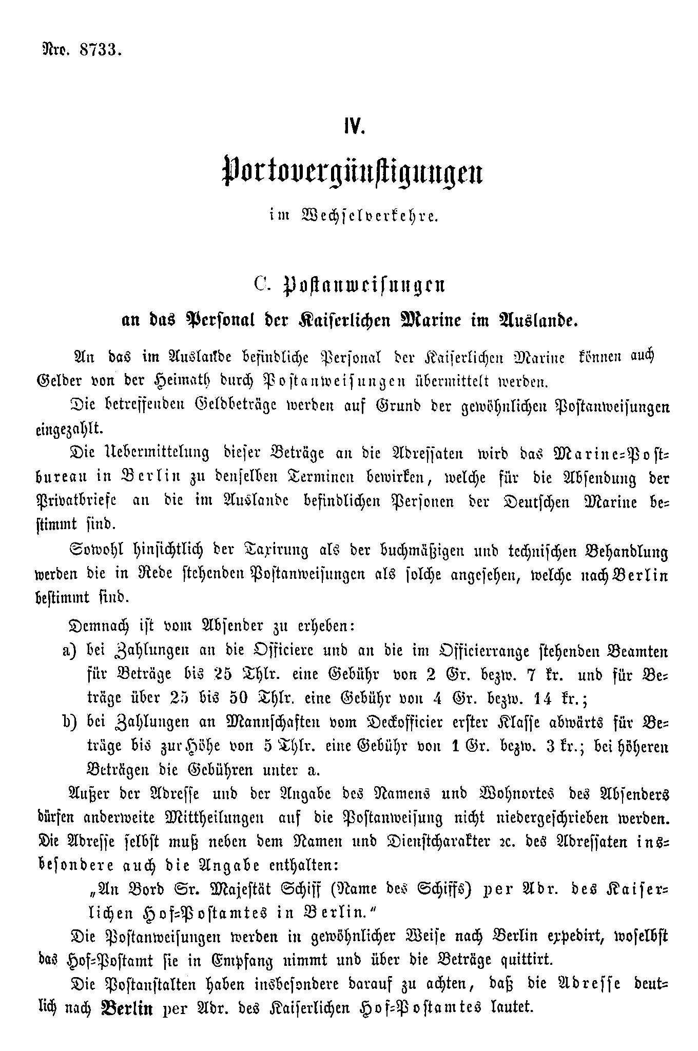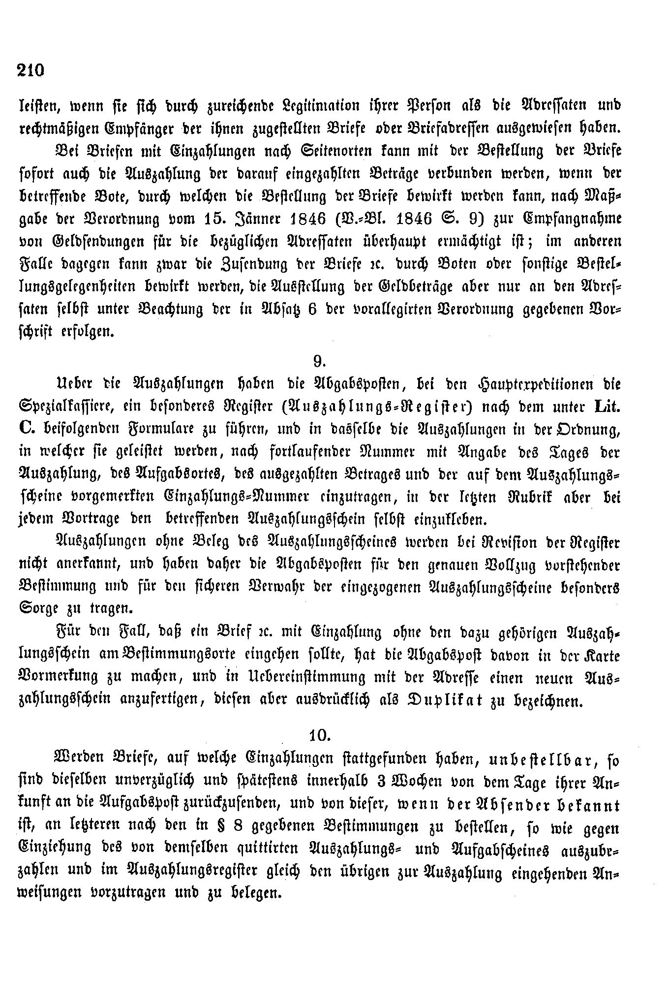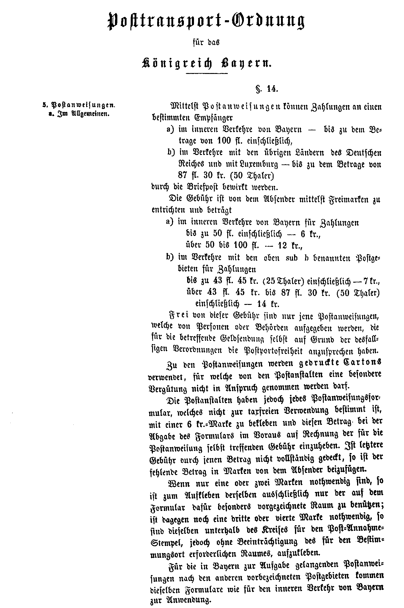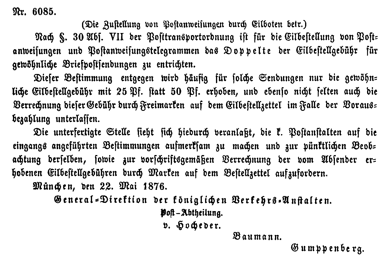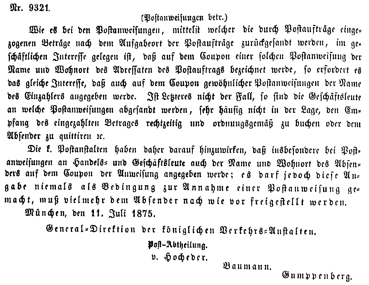 Postverordnungen - Postanweisungen