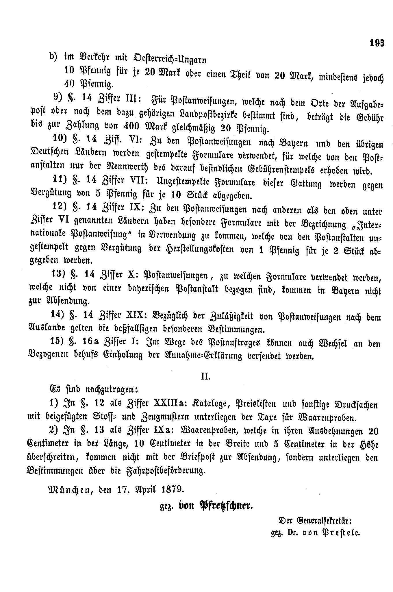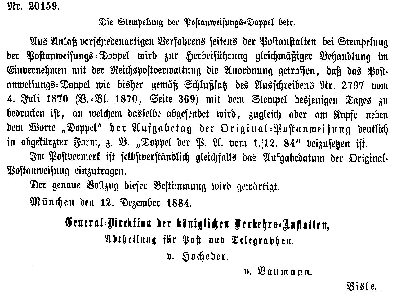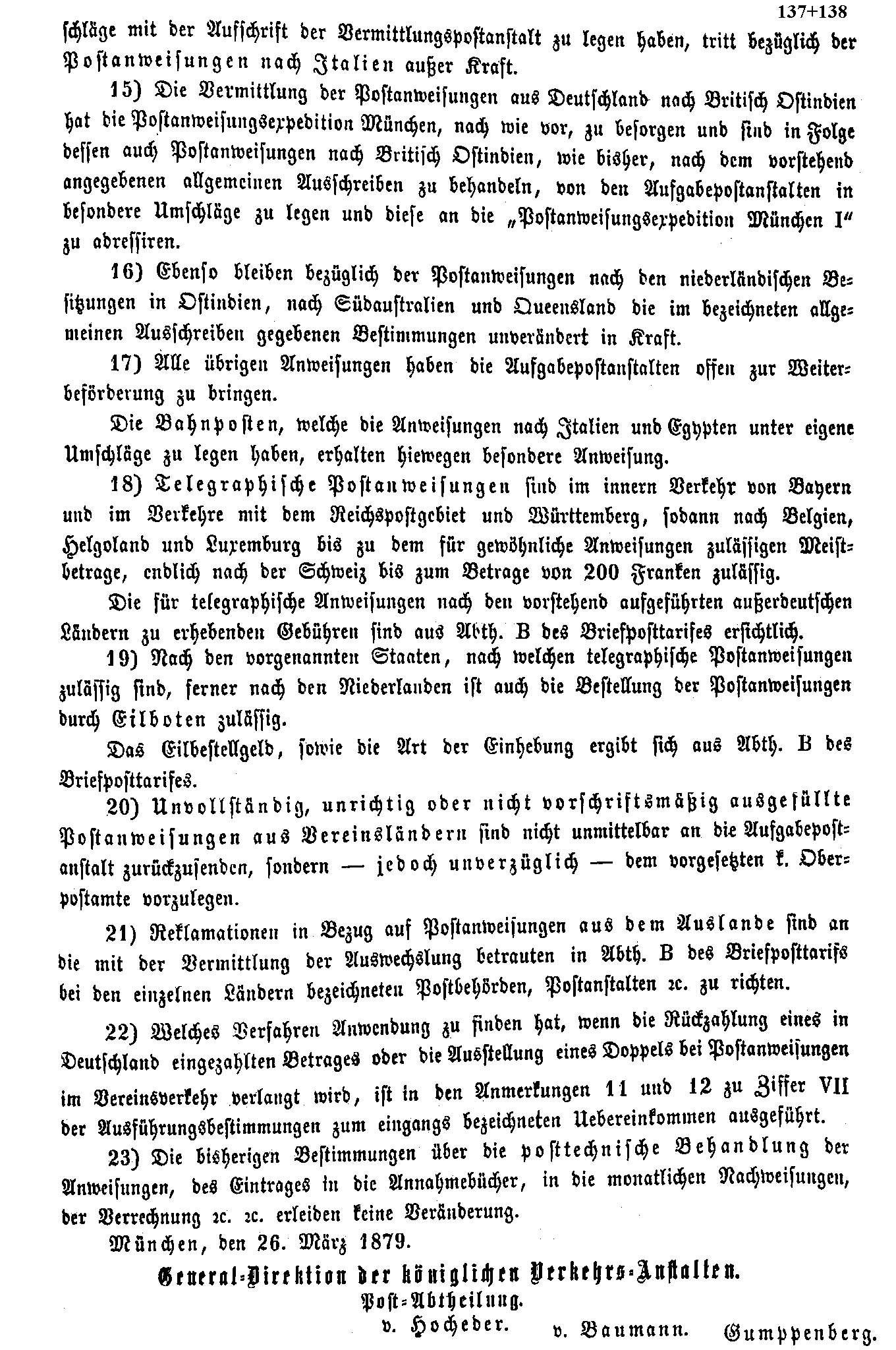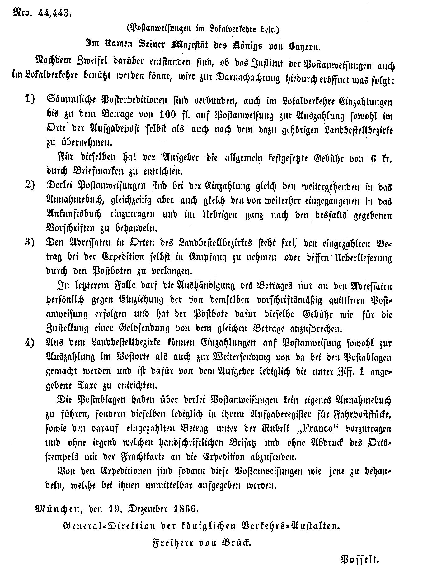 Postverordnungen - Postanweisungen