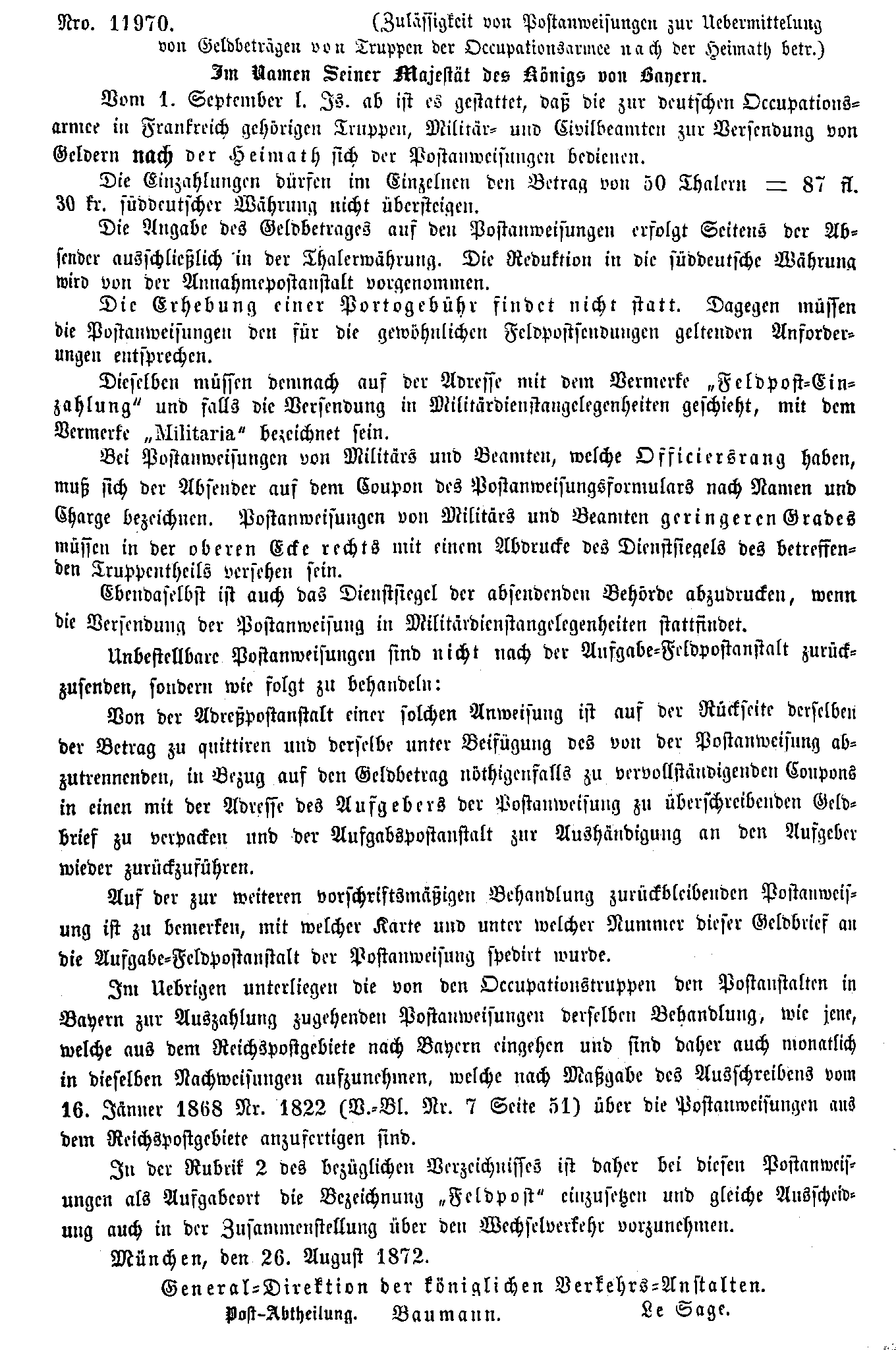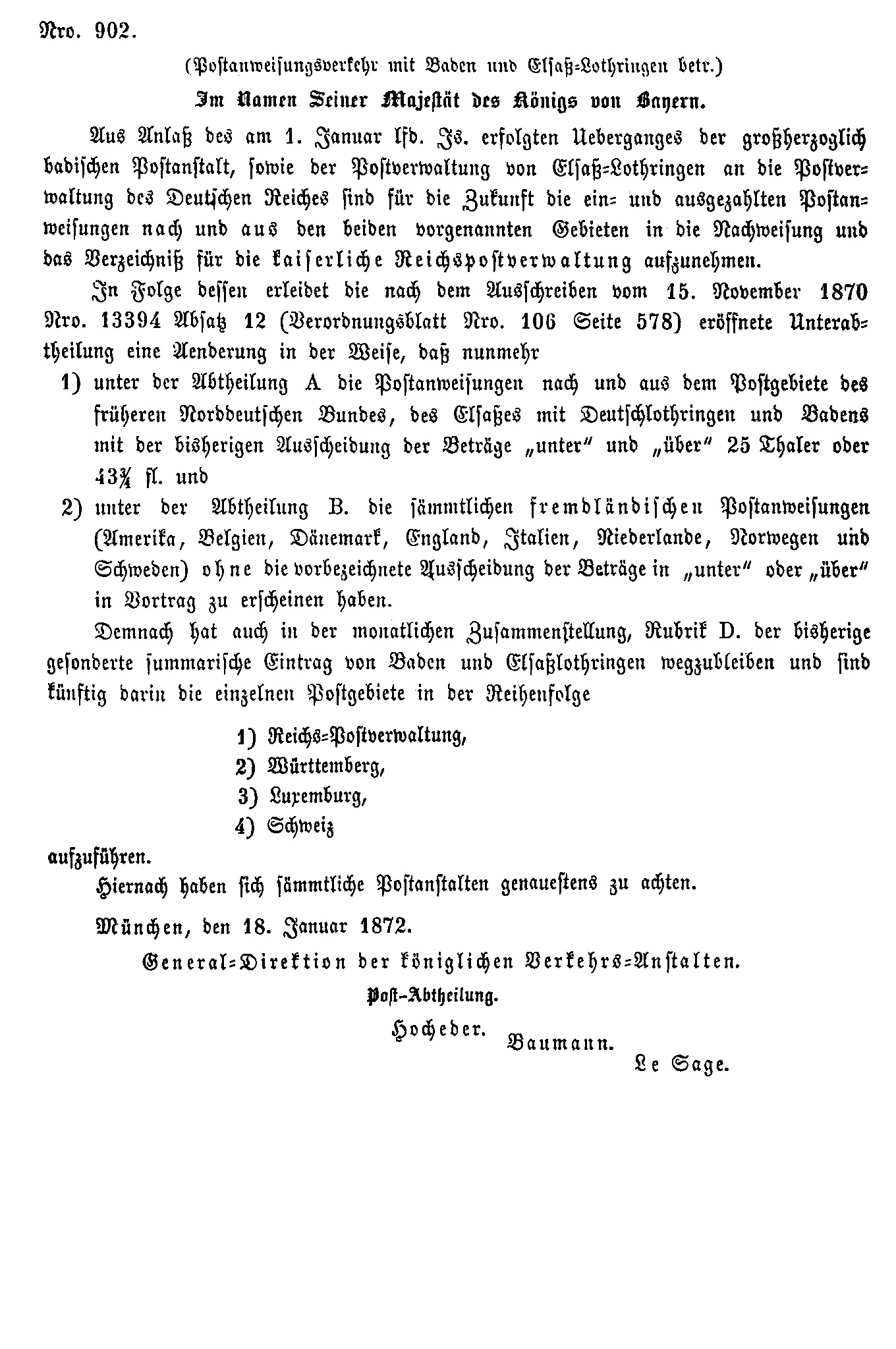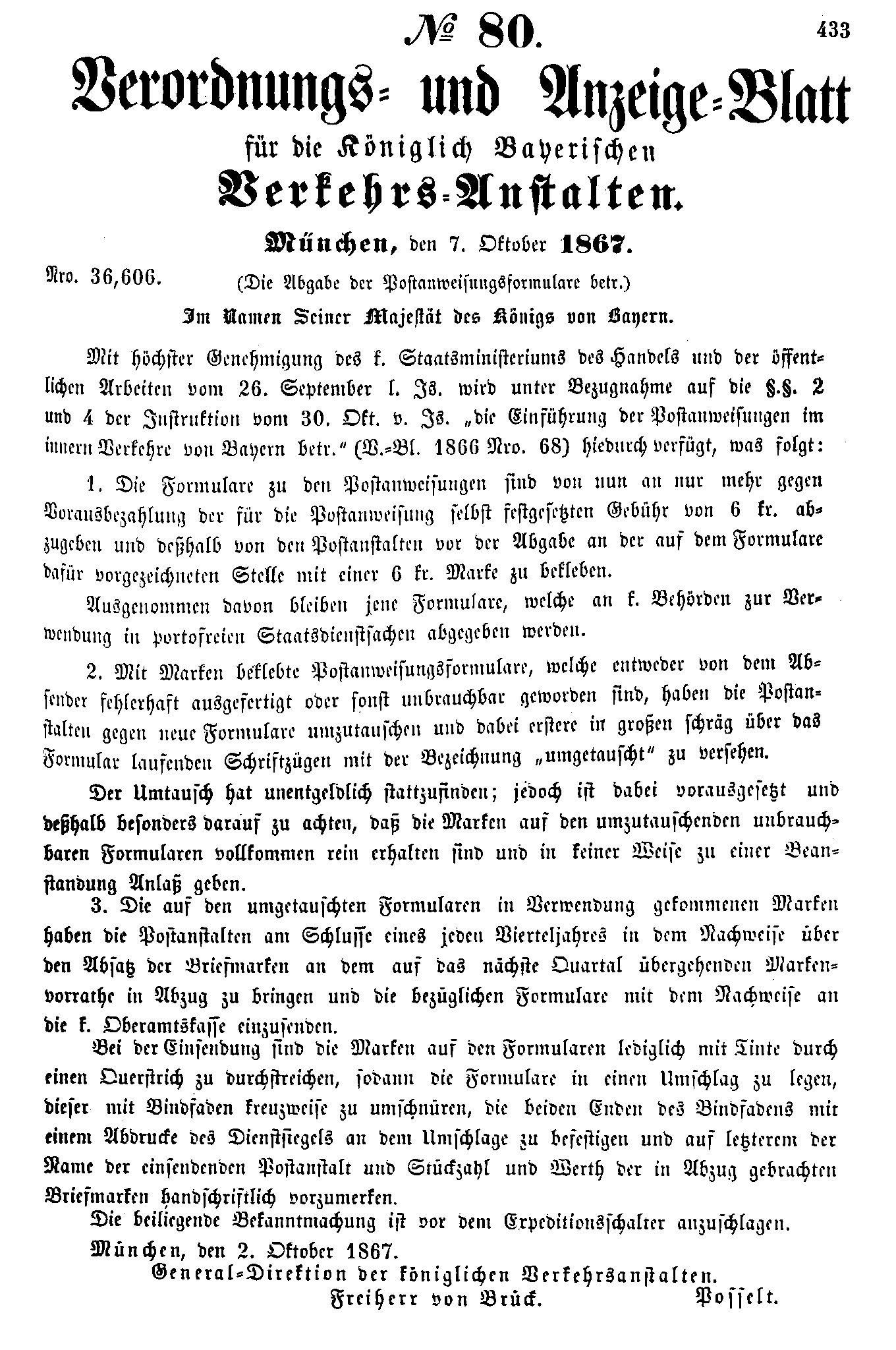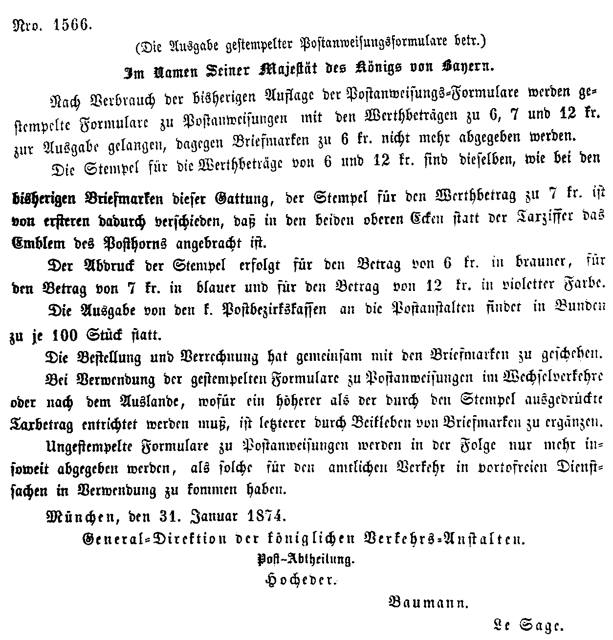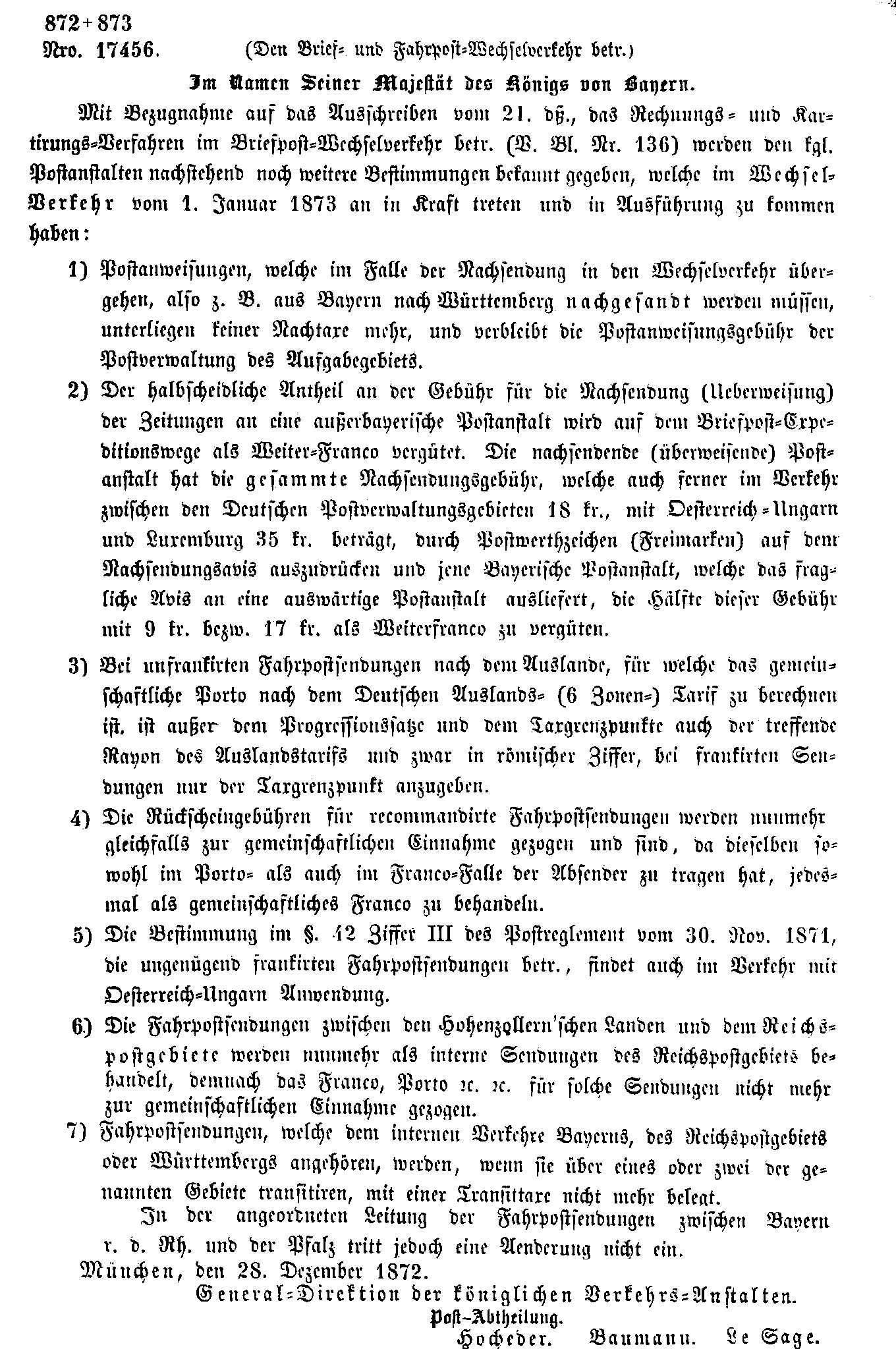 Postverordnungen - Postanweisungen