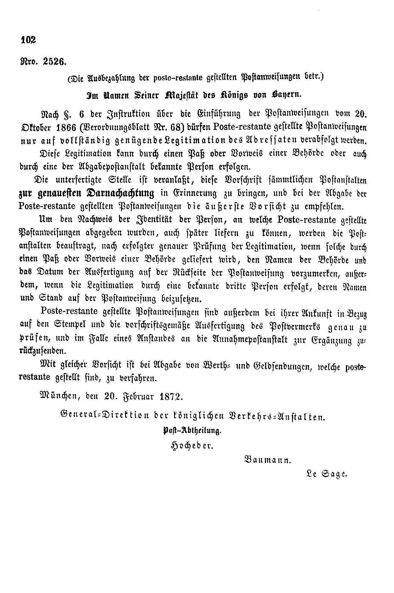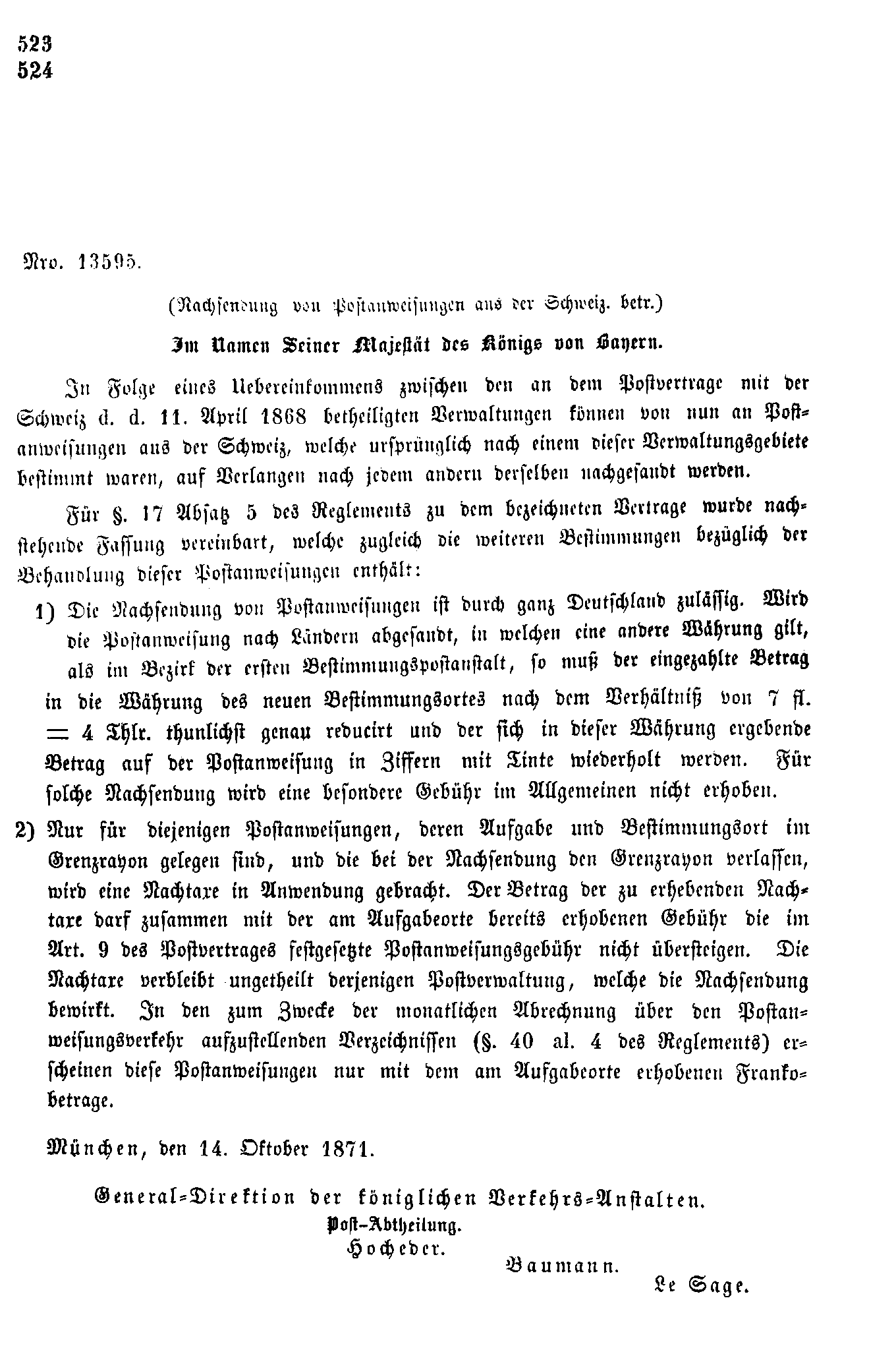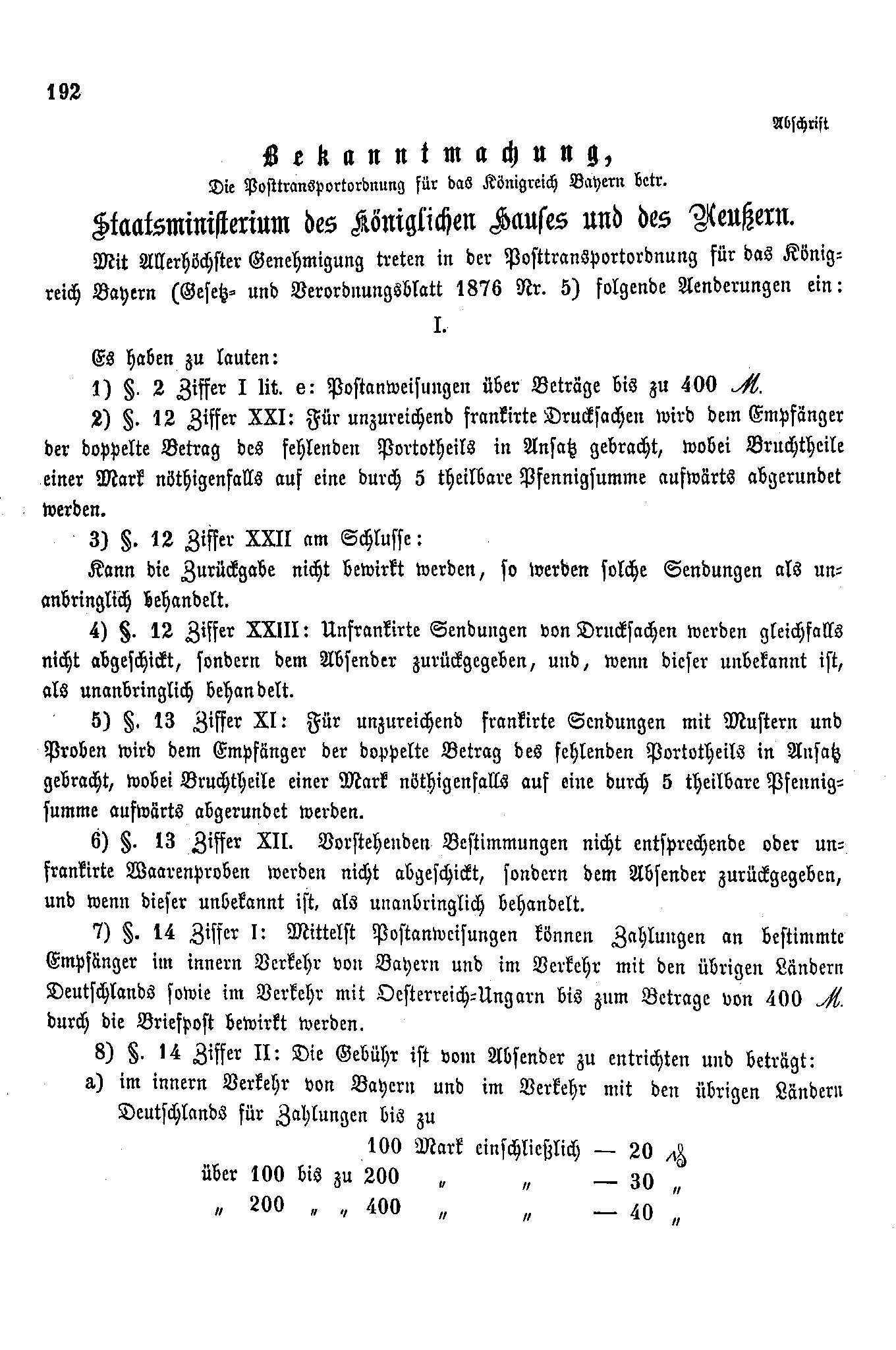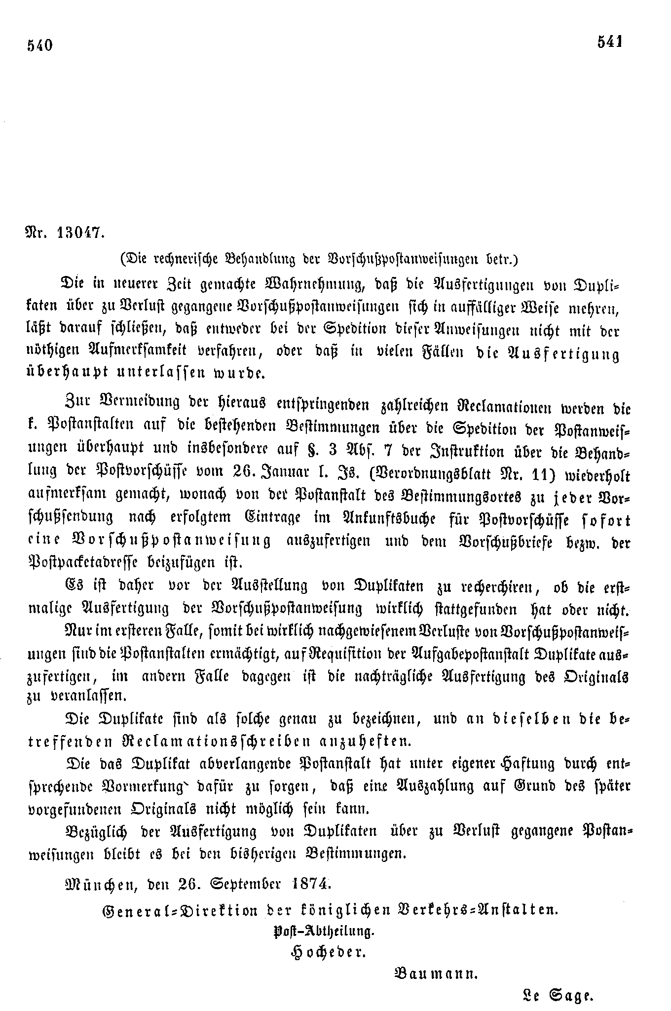 Postverordnungen - Postanweisungen