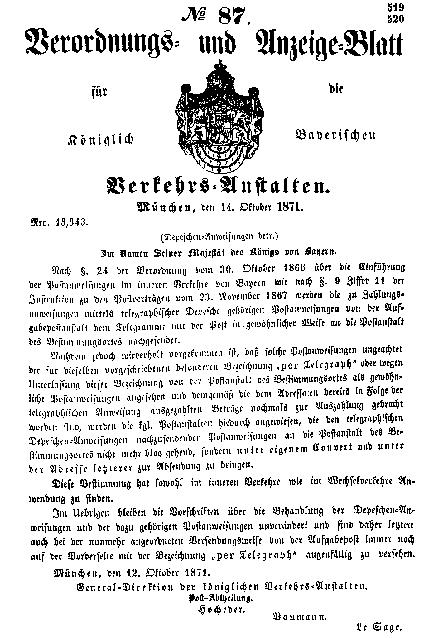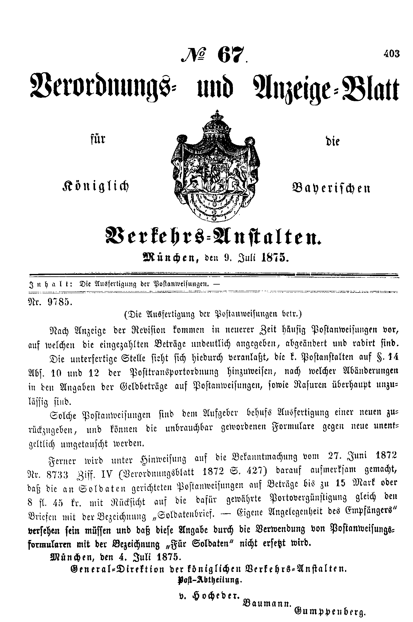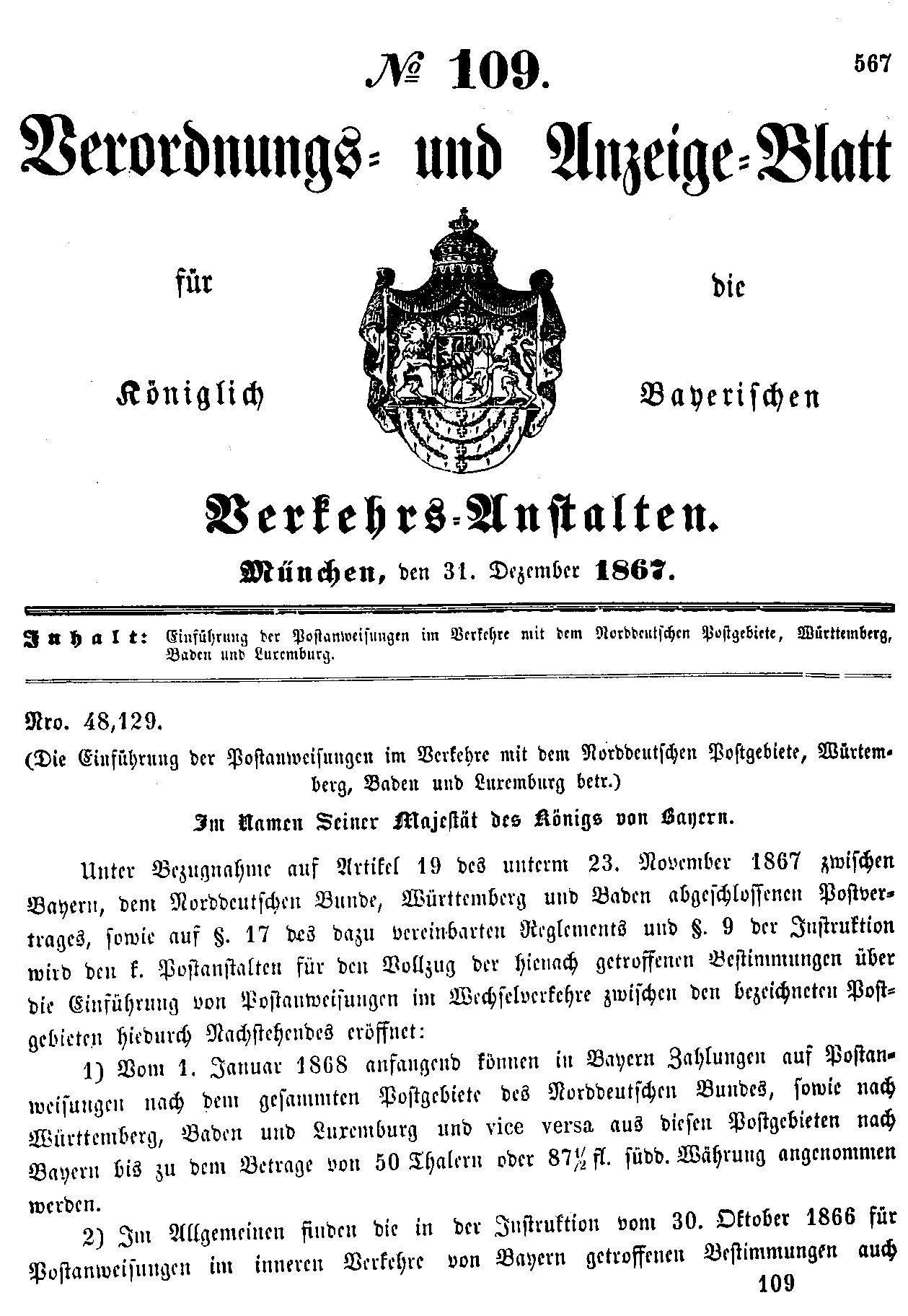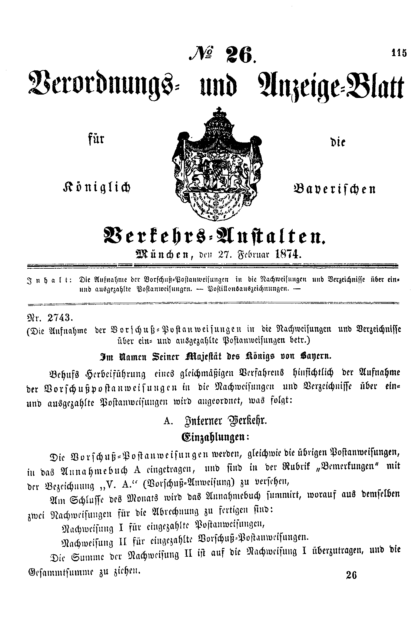 Verordnungs- und Anzeige-Blätter