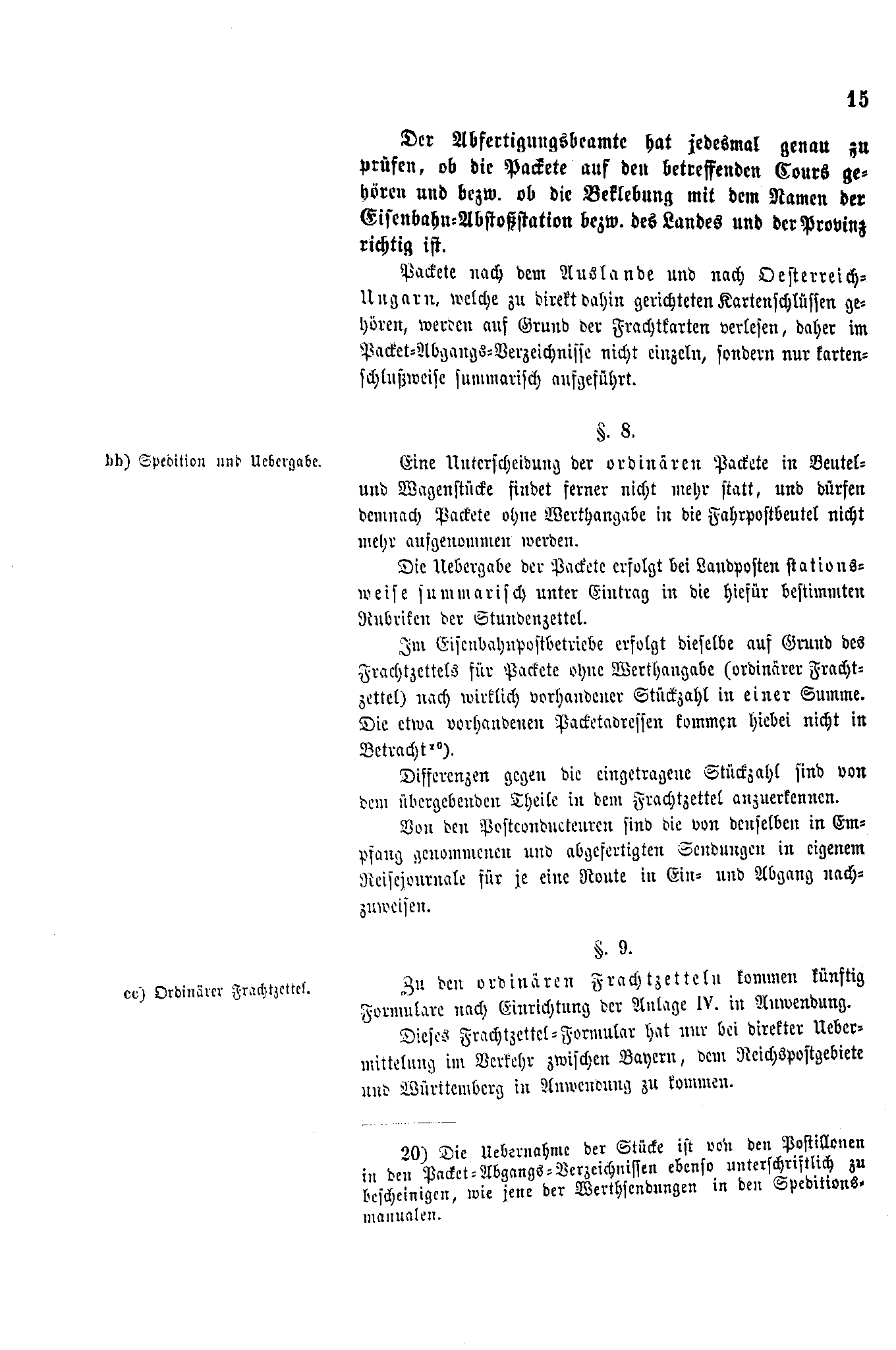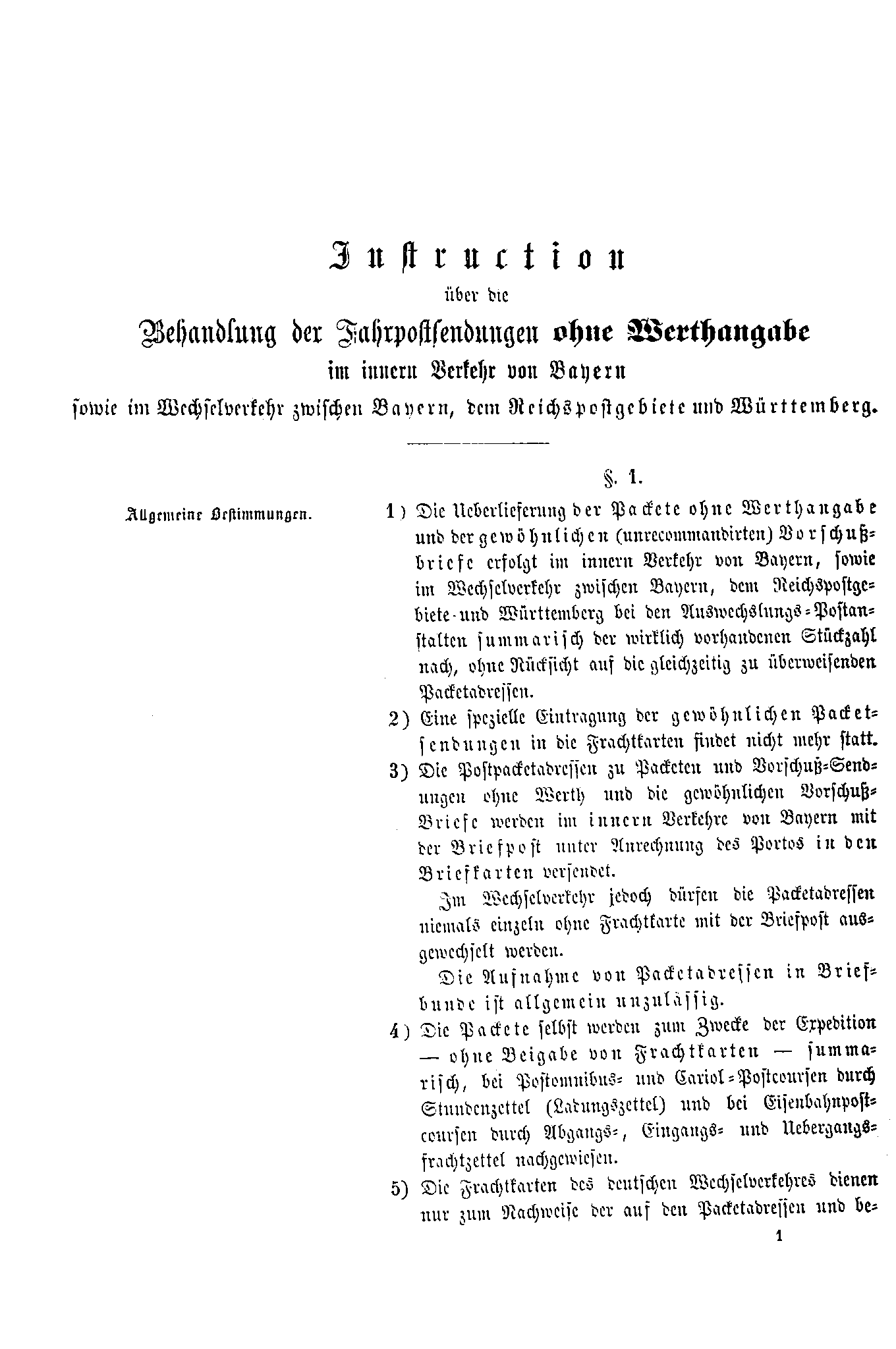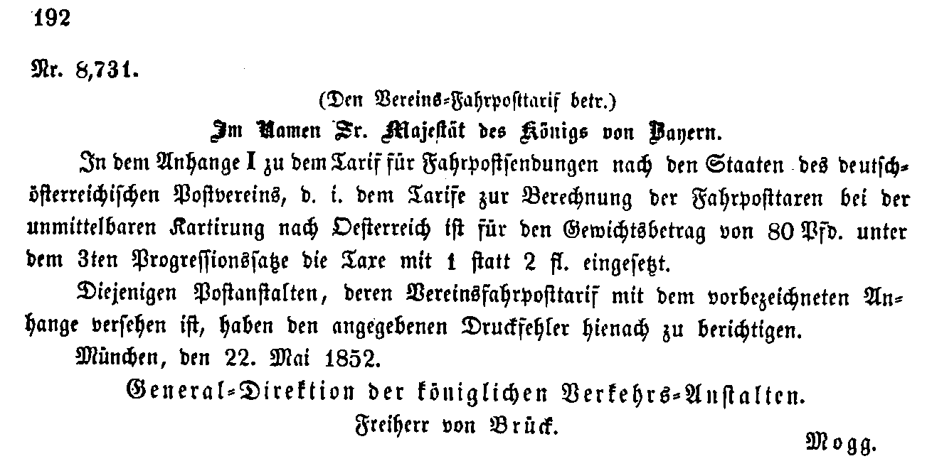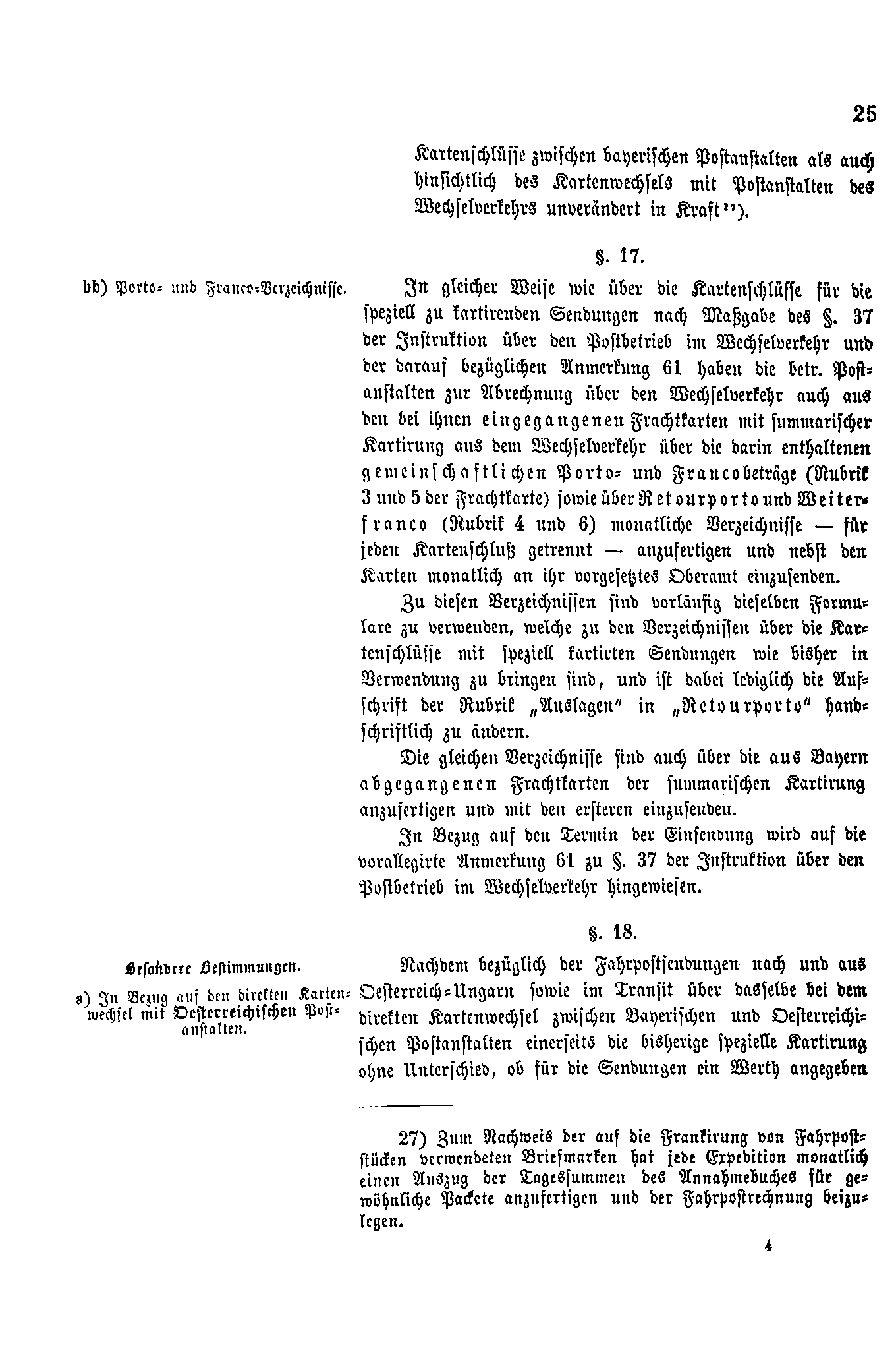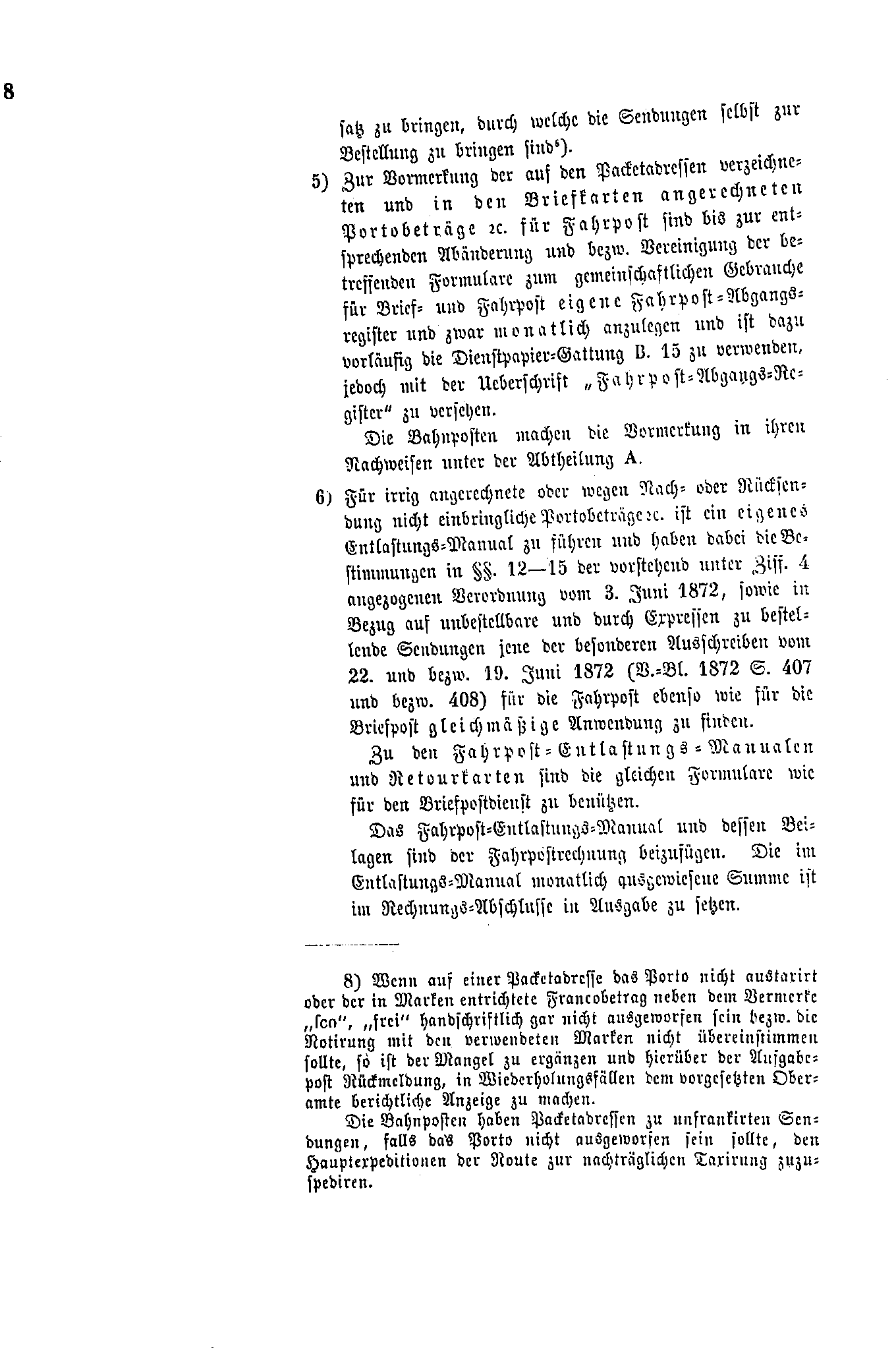 Postverordnungen - Fahrpostsendungen