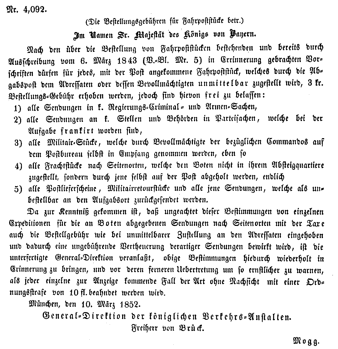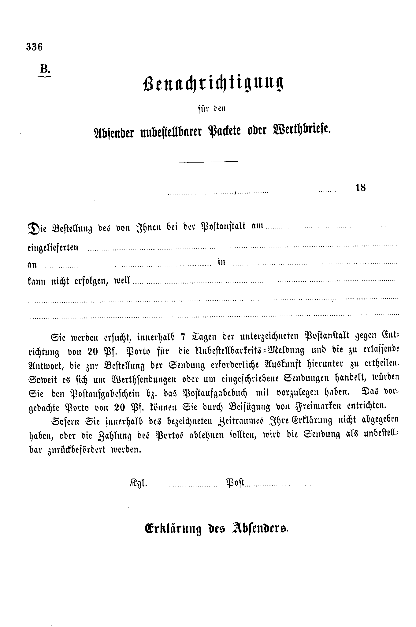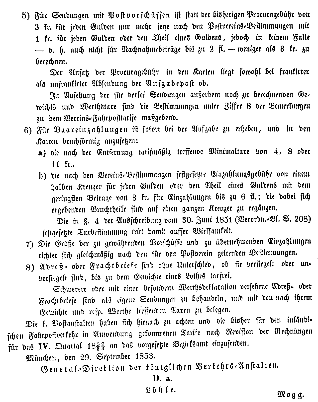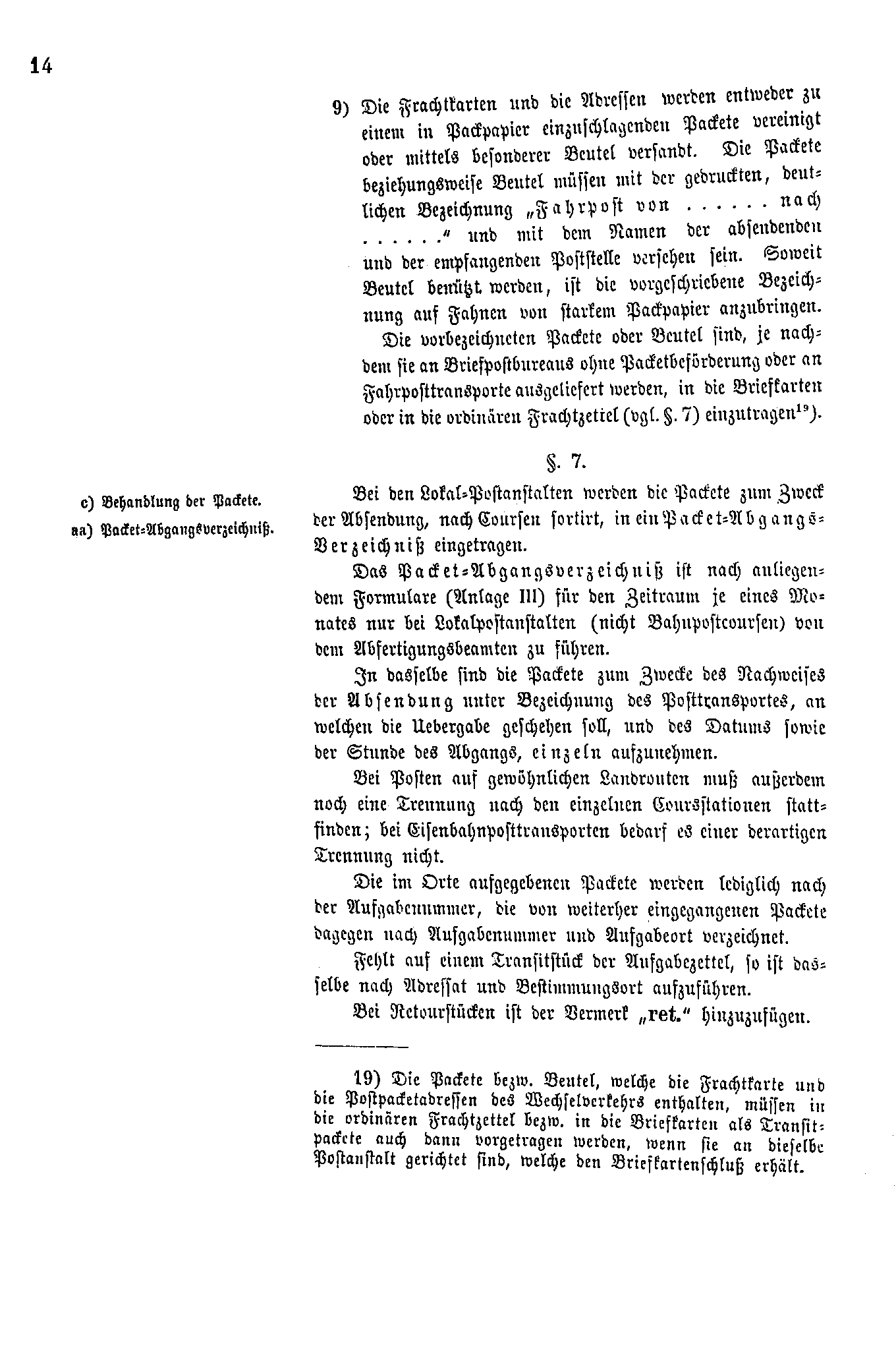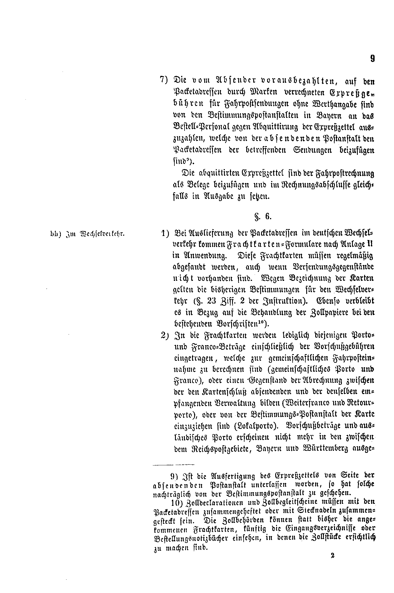 Postverordnungen - Fahrpostsendungen