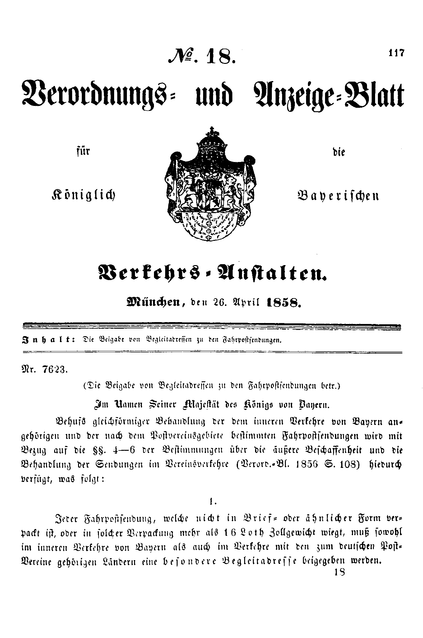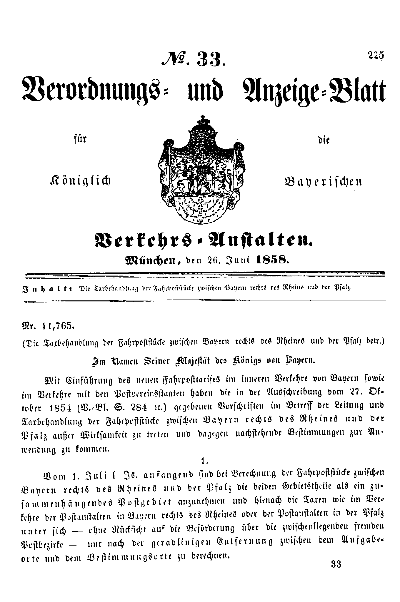 Verordnungs- und Anzeige-Blätter