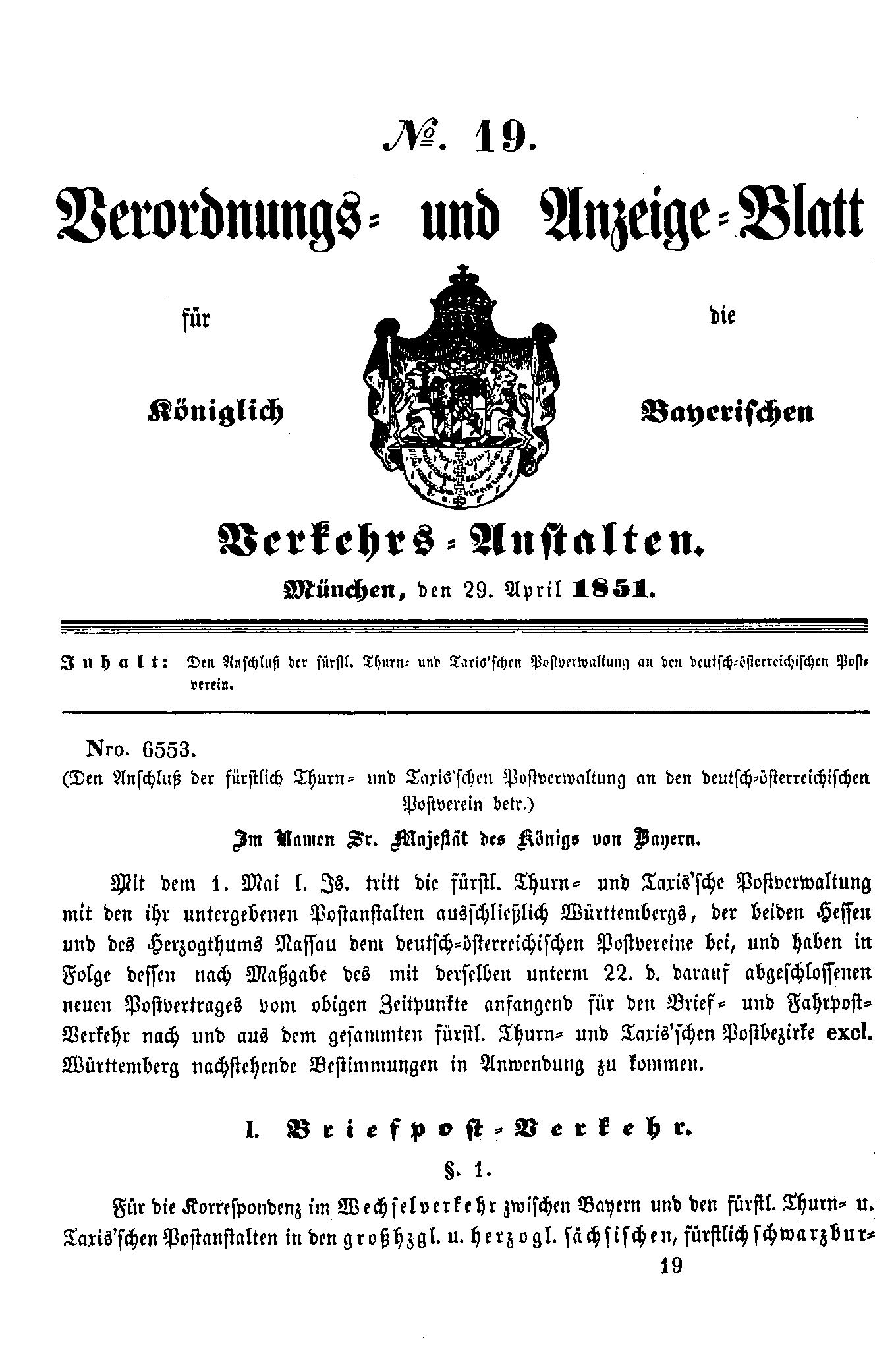 Verordnungs- und Anzeige-Blätter