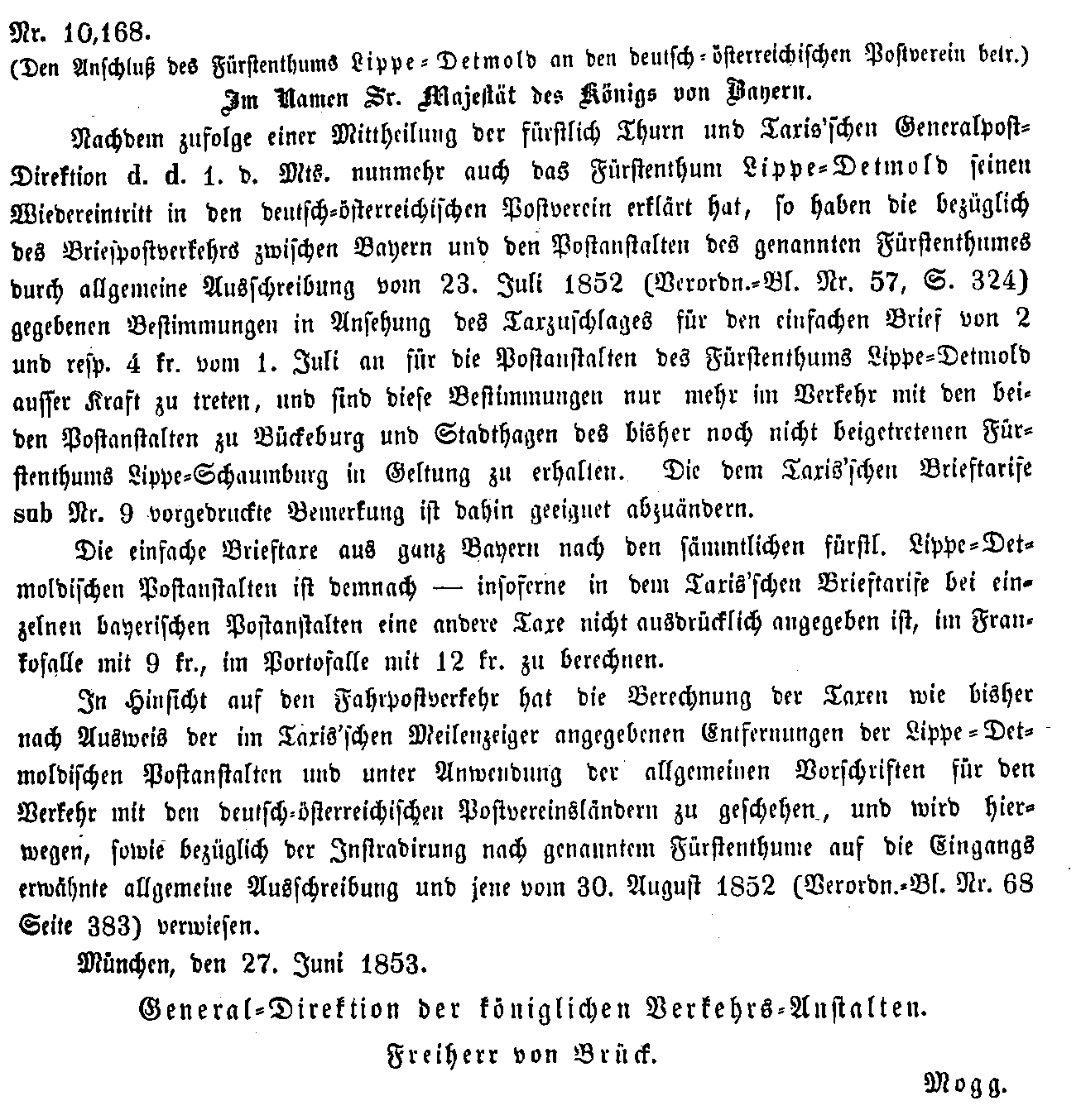 Postverordnungen - Beitritte zum Postverein