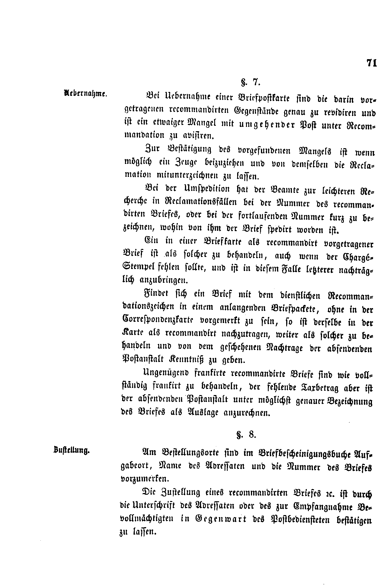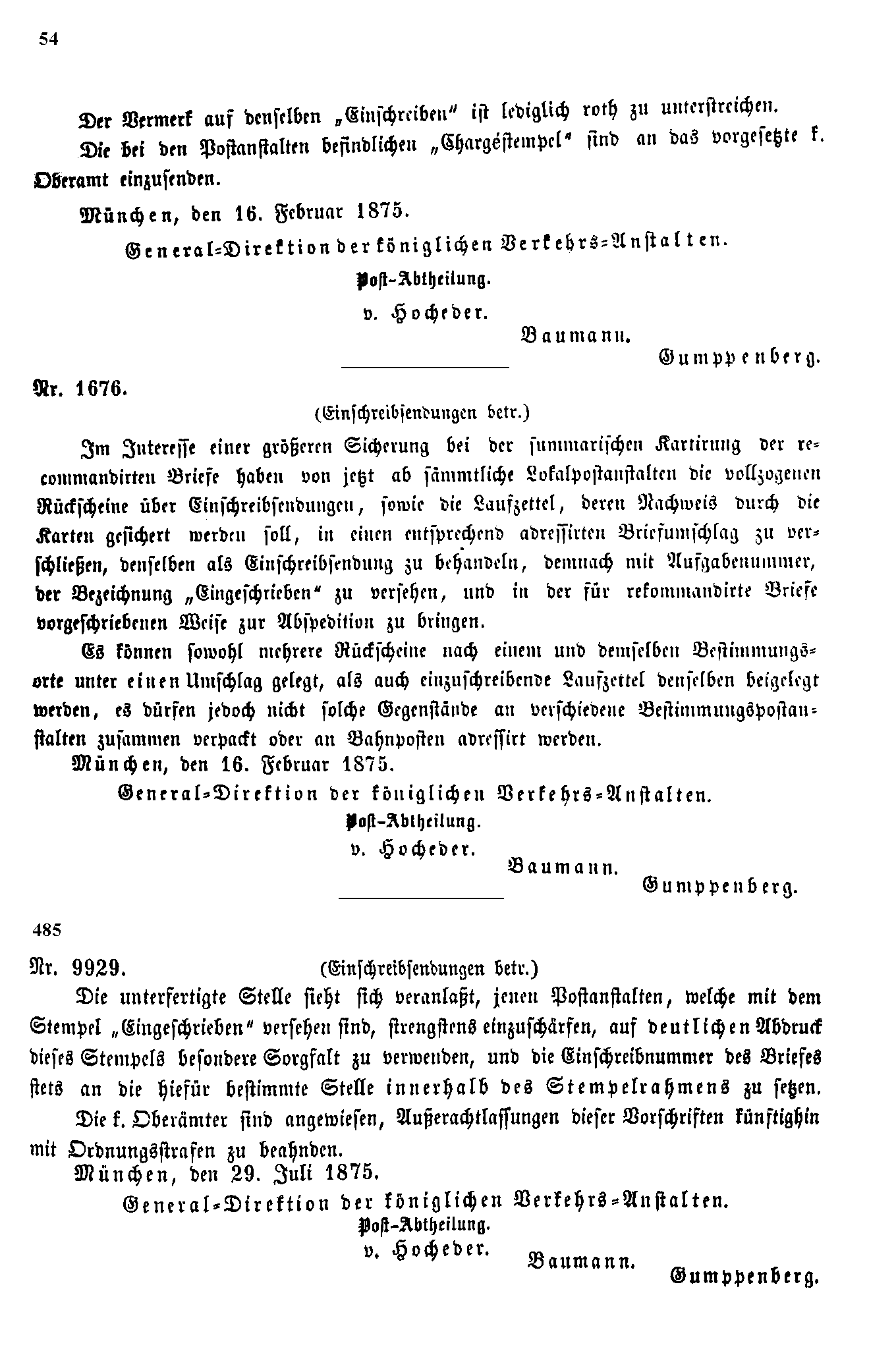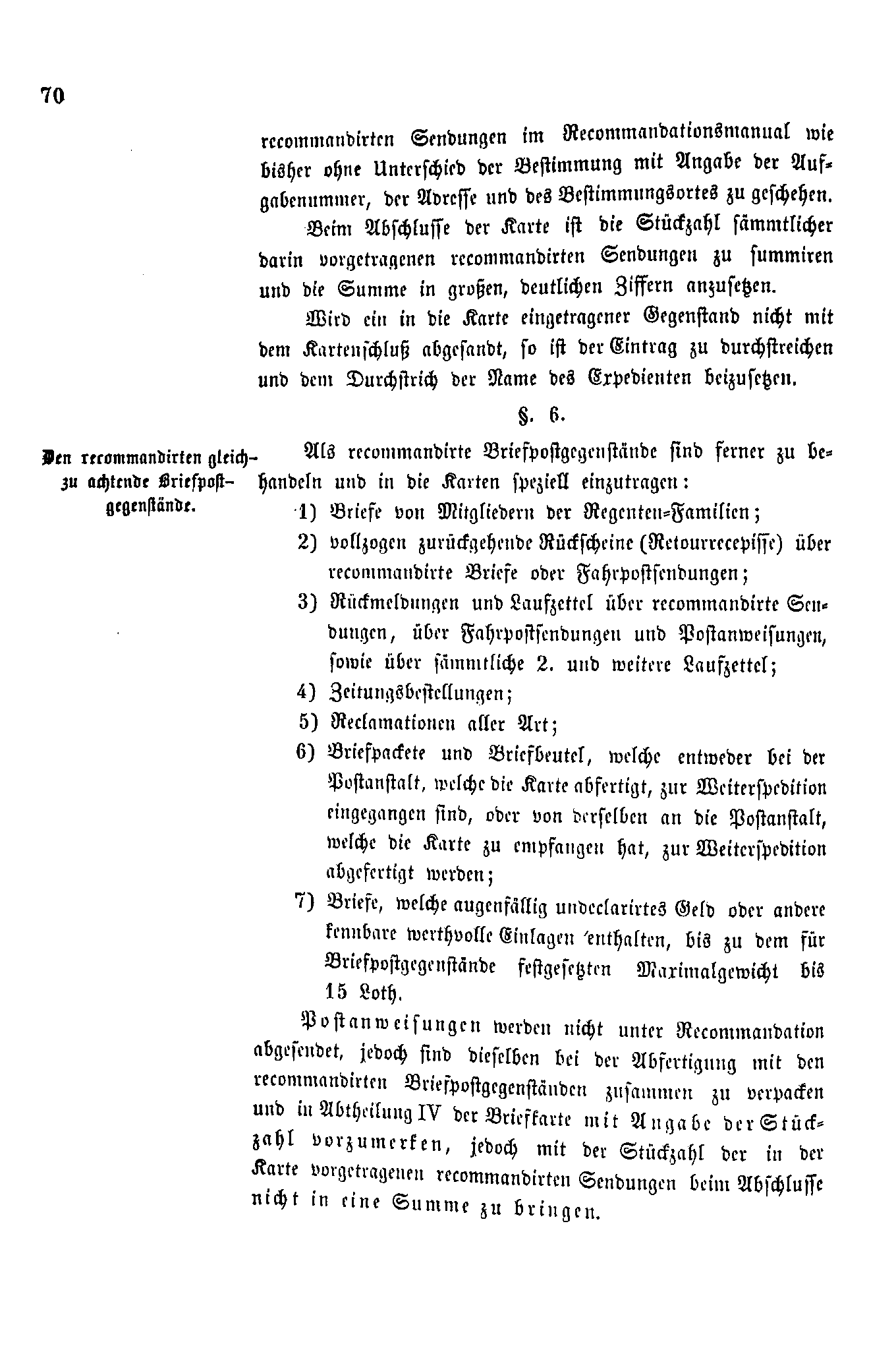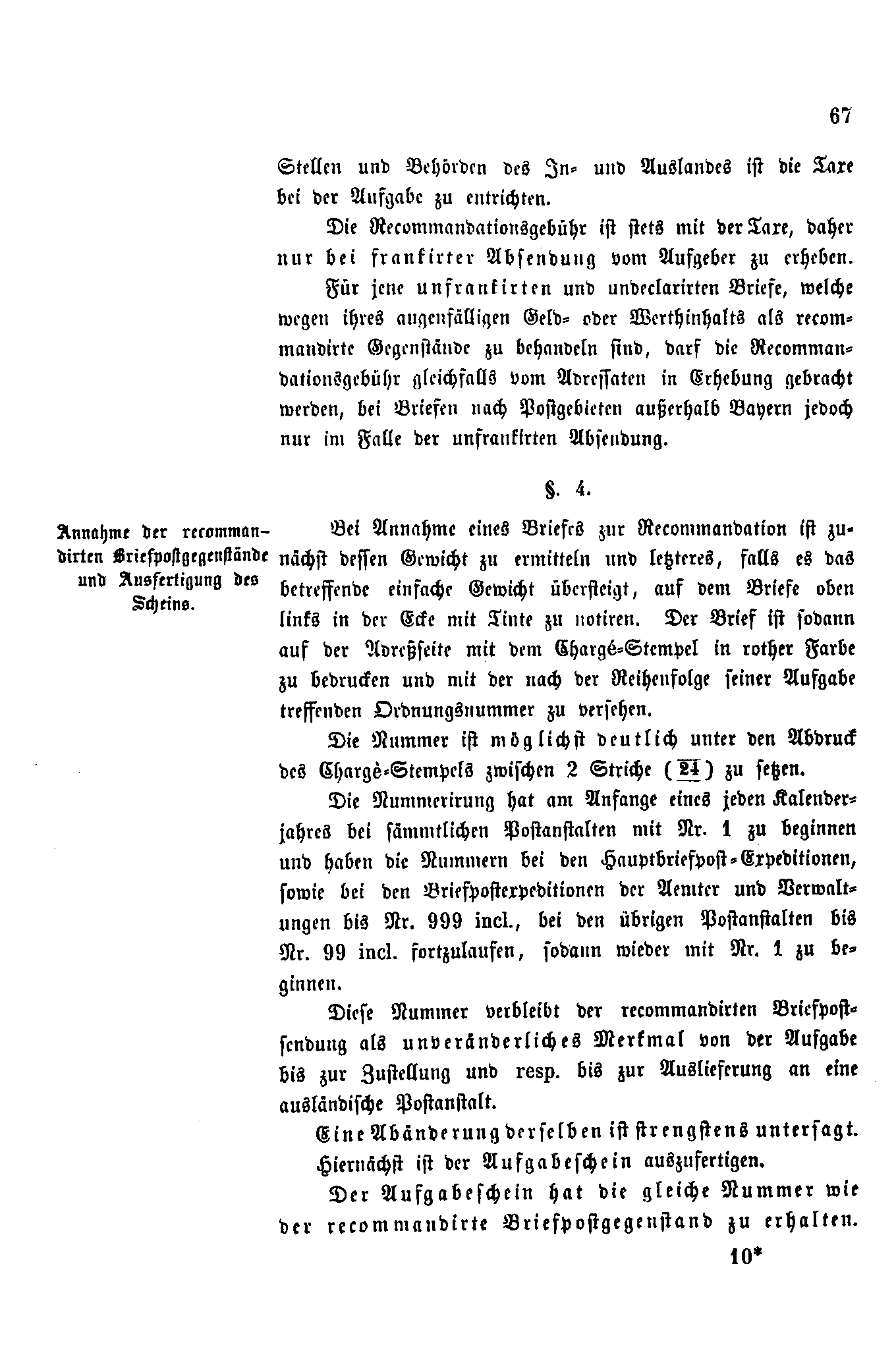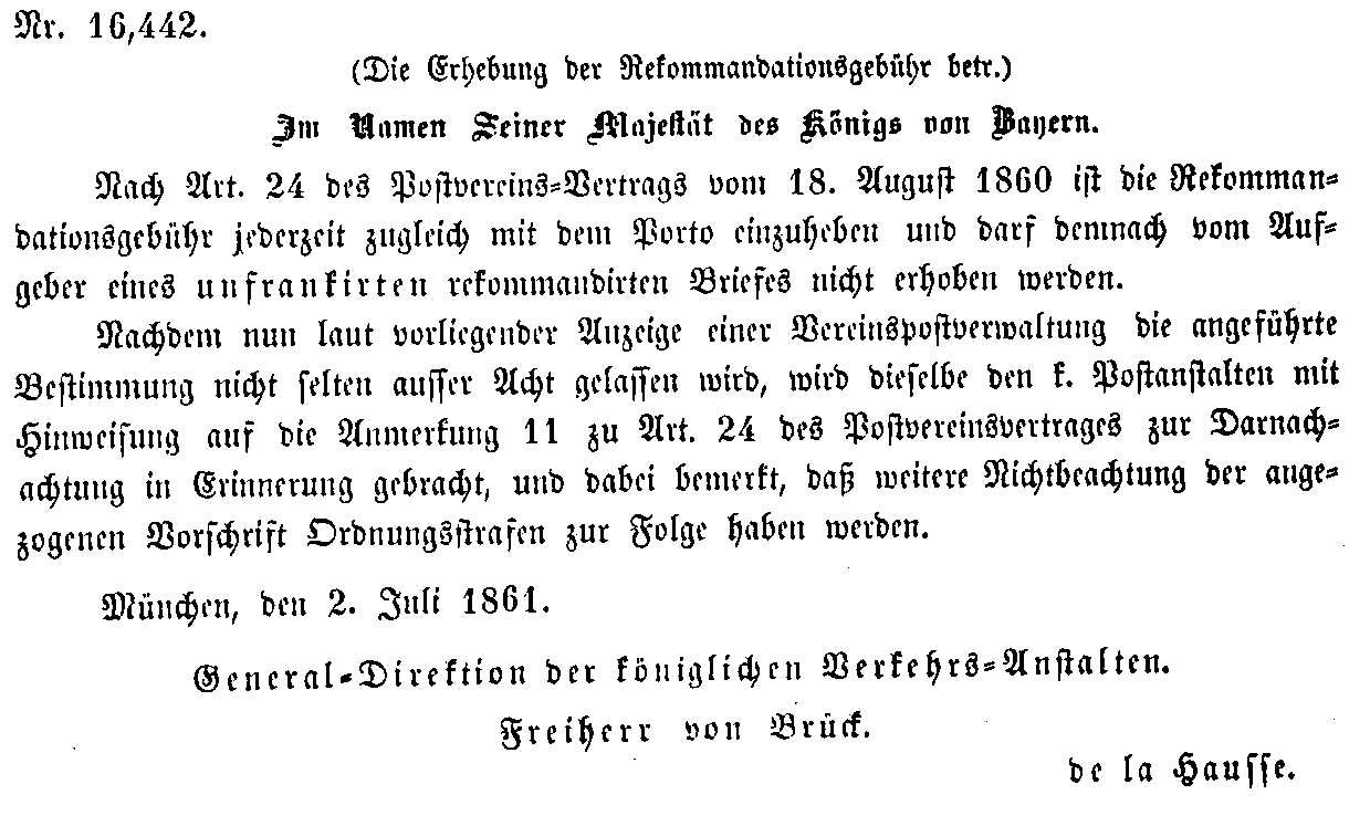 Postverordnungen - Einschreiben