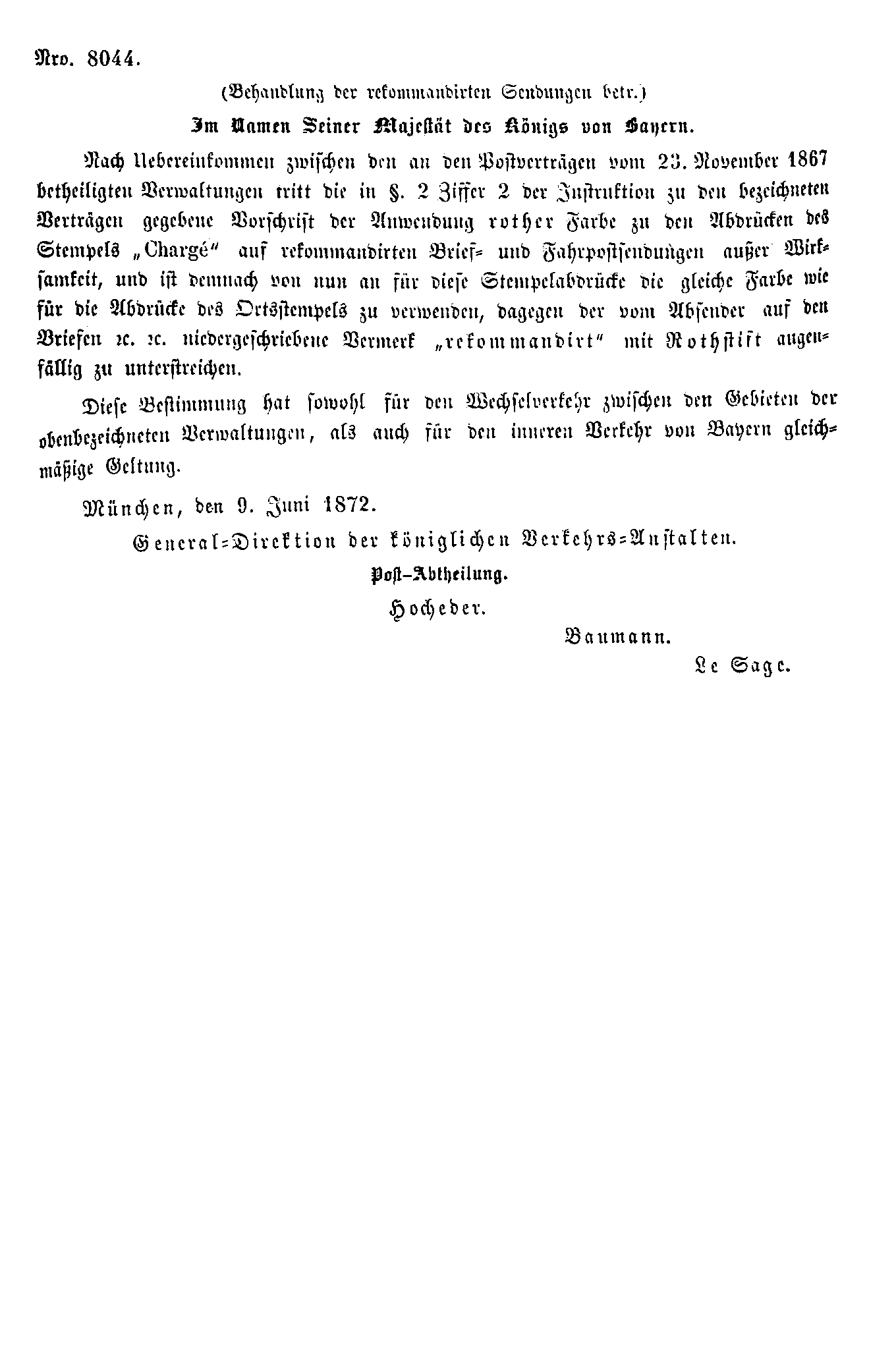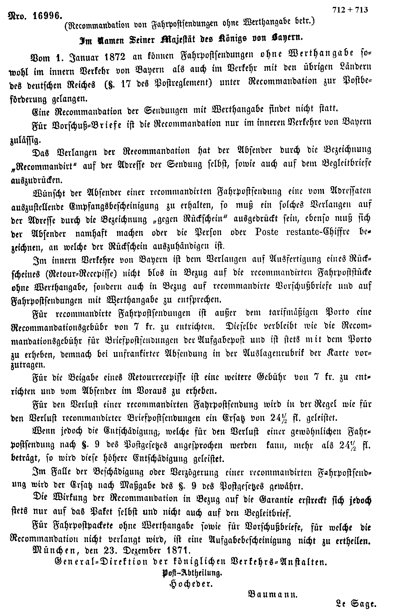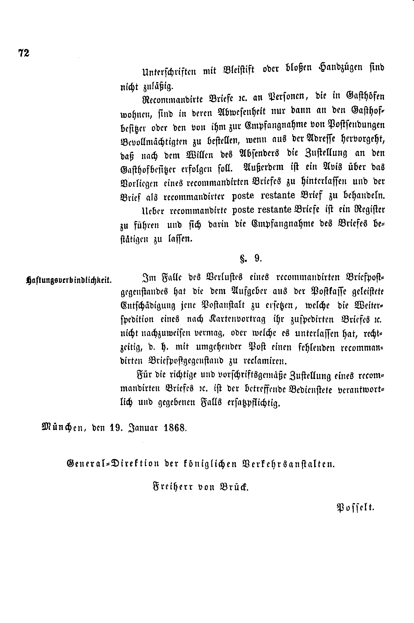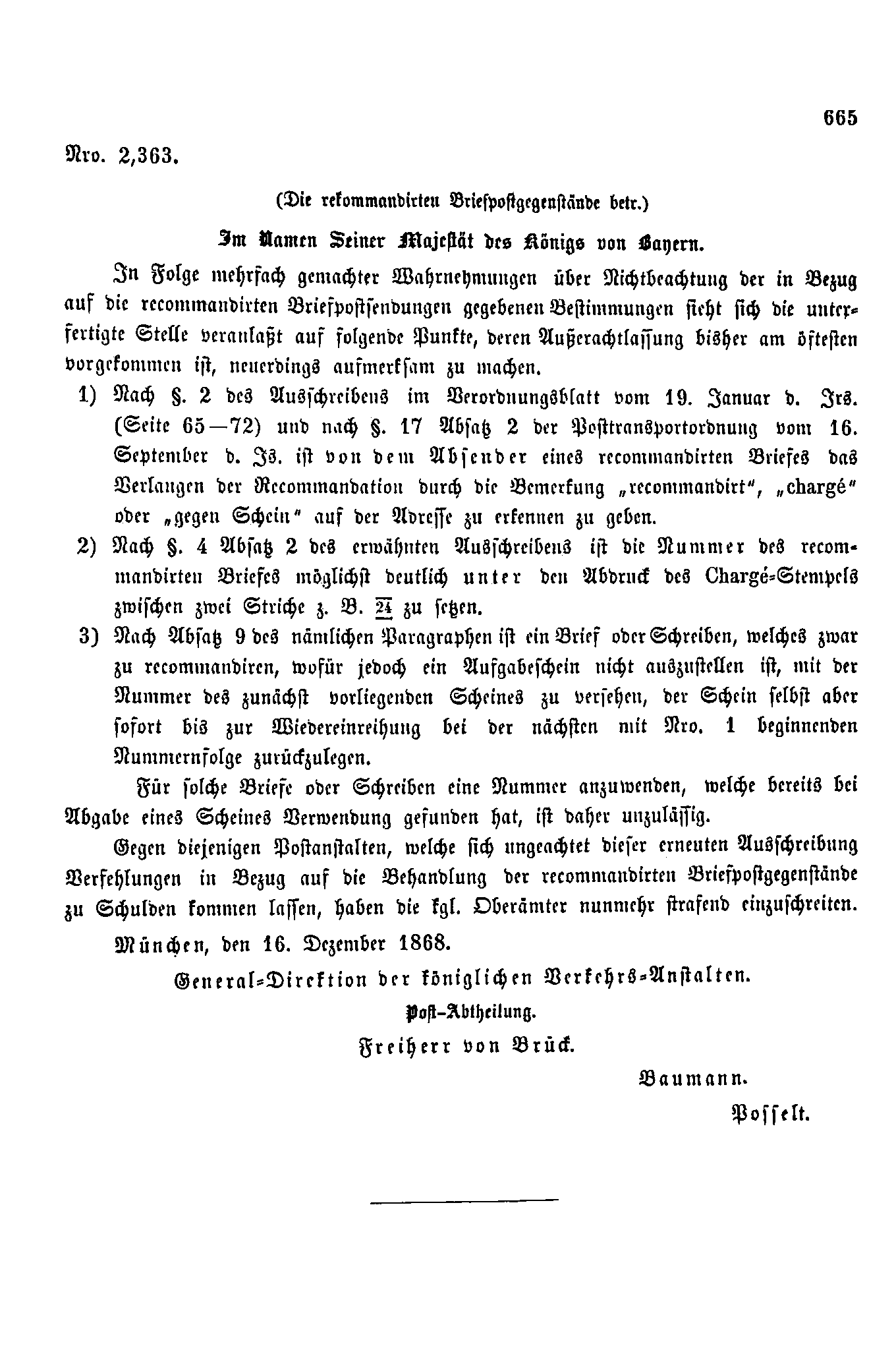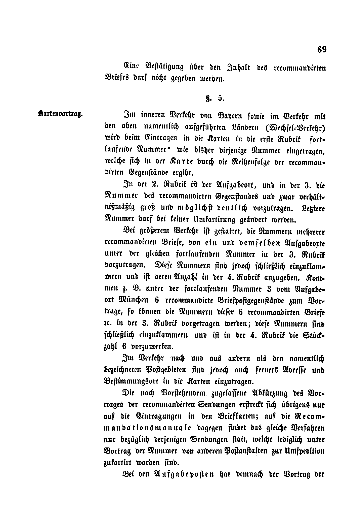 Postverordnungen - Einschreiben
