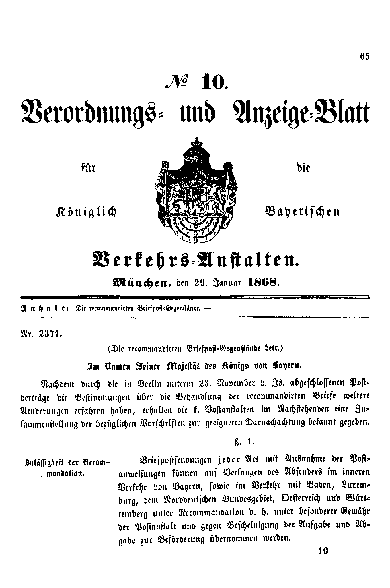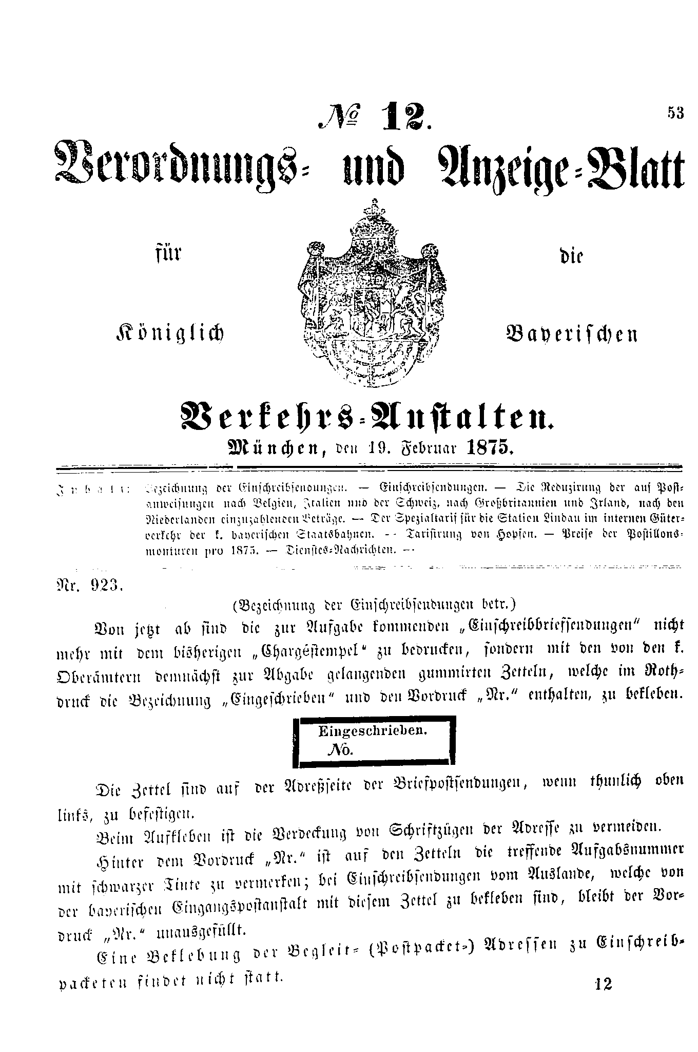 Verordnungs- und Anzeige-Blätter