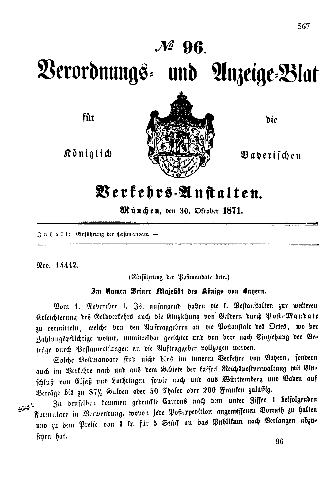 Verordnungs- und Anzeige-Blätter