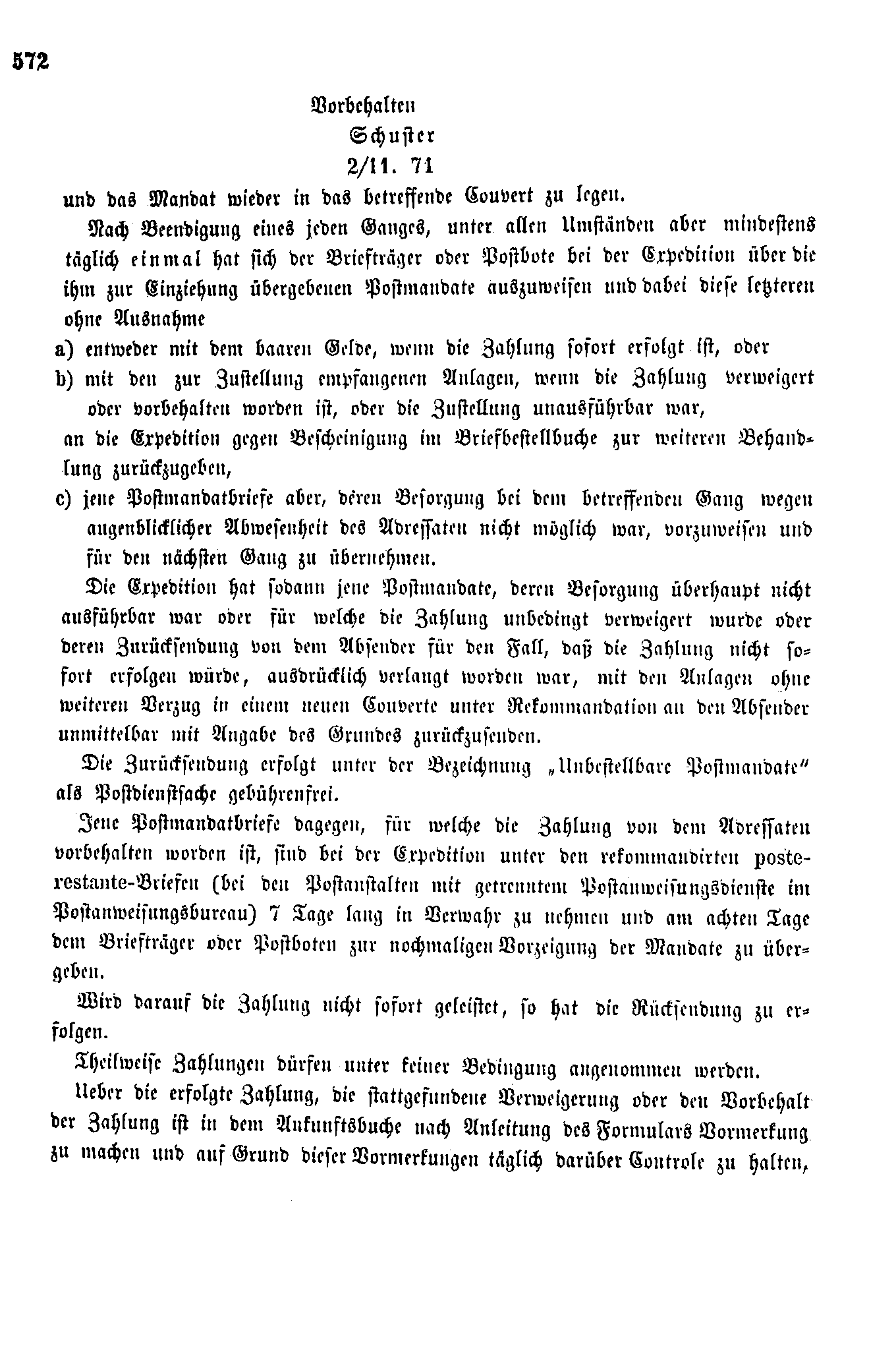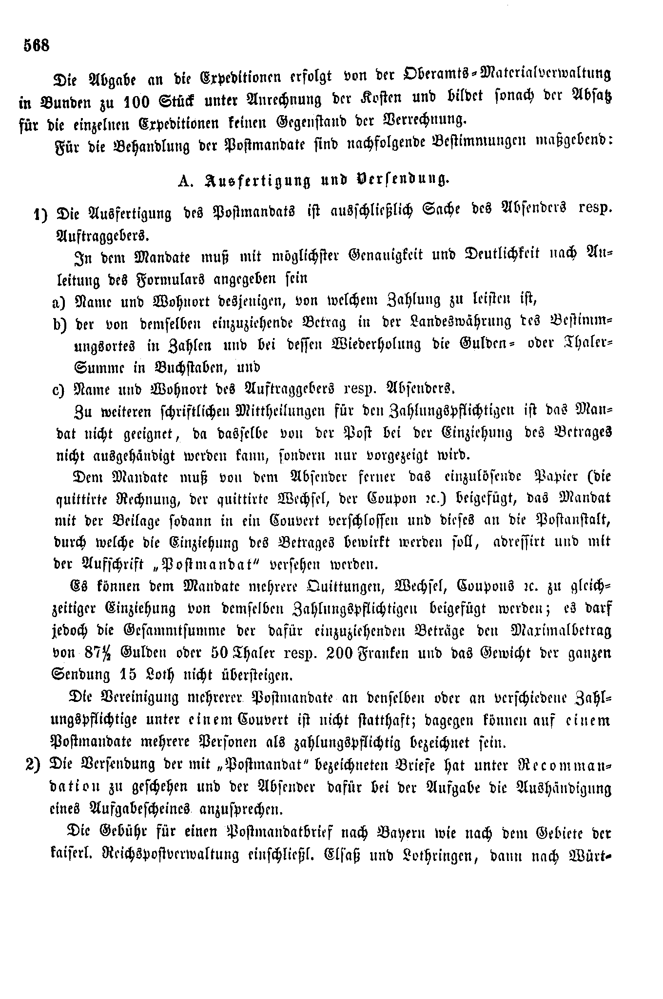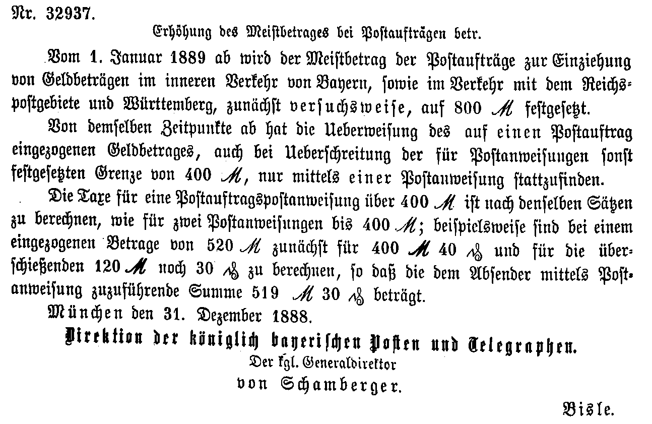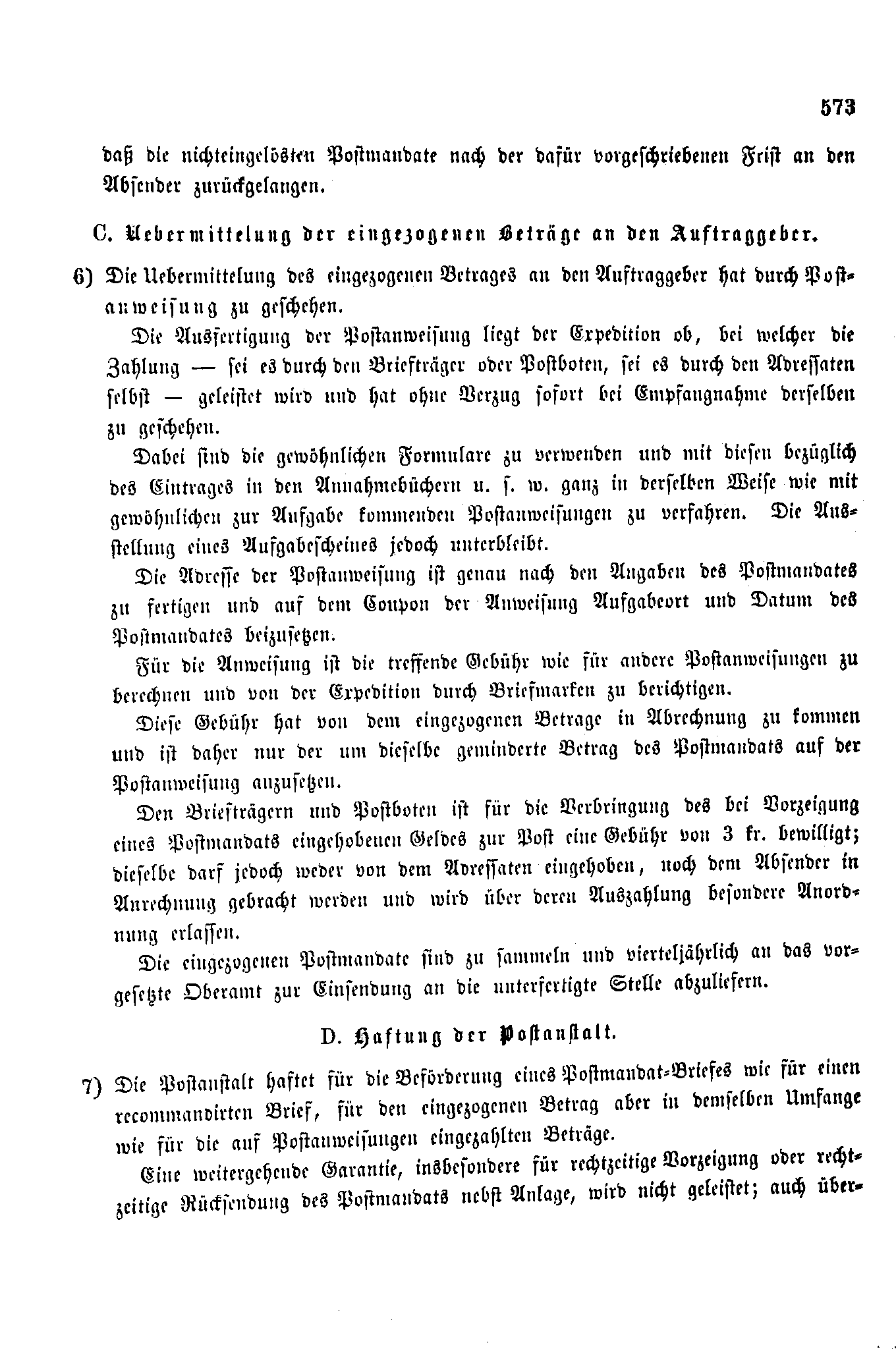 Postverordnungen - Postmandat und Postauftrag