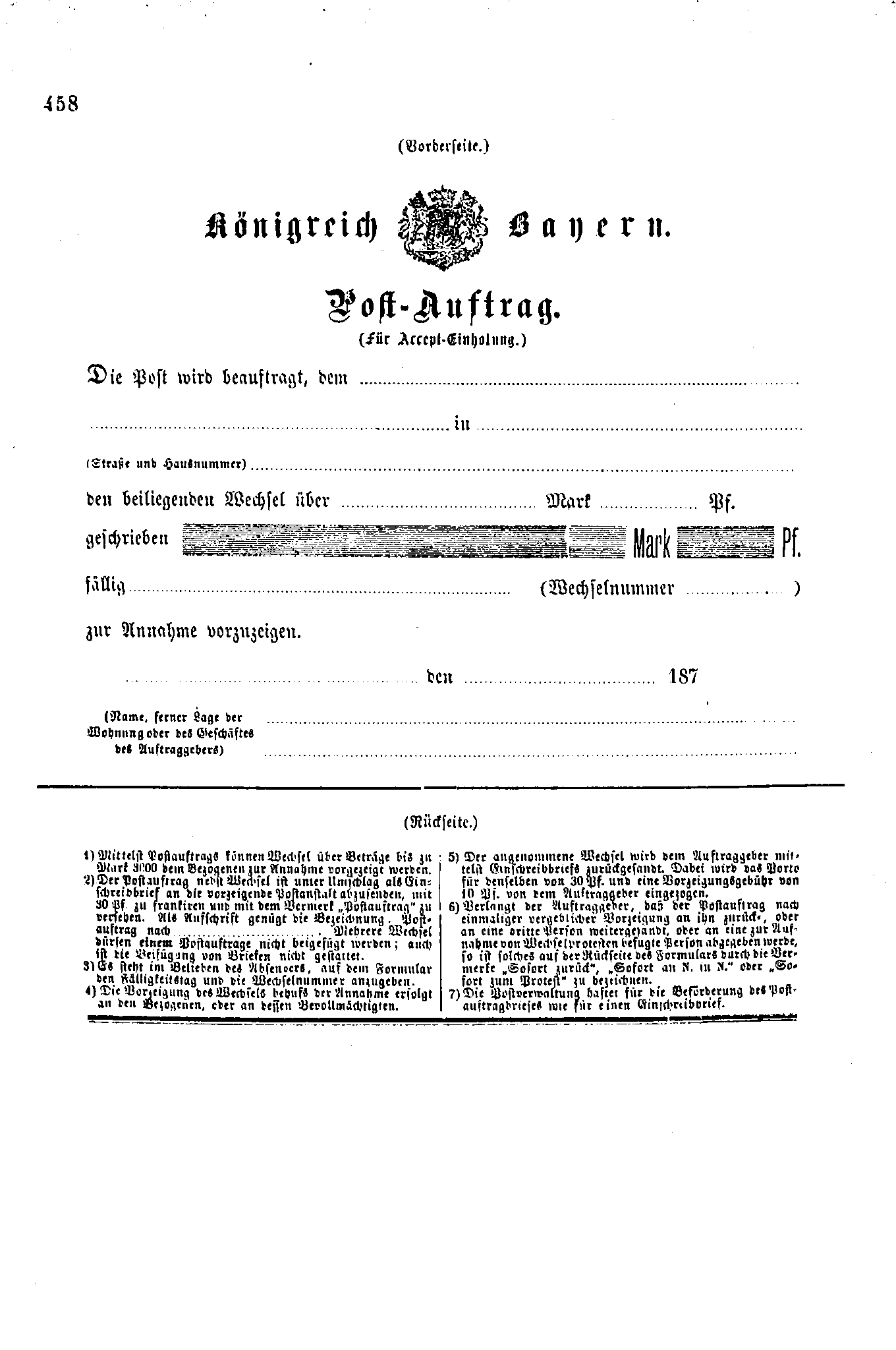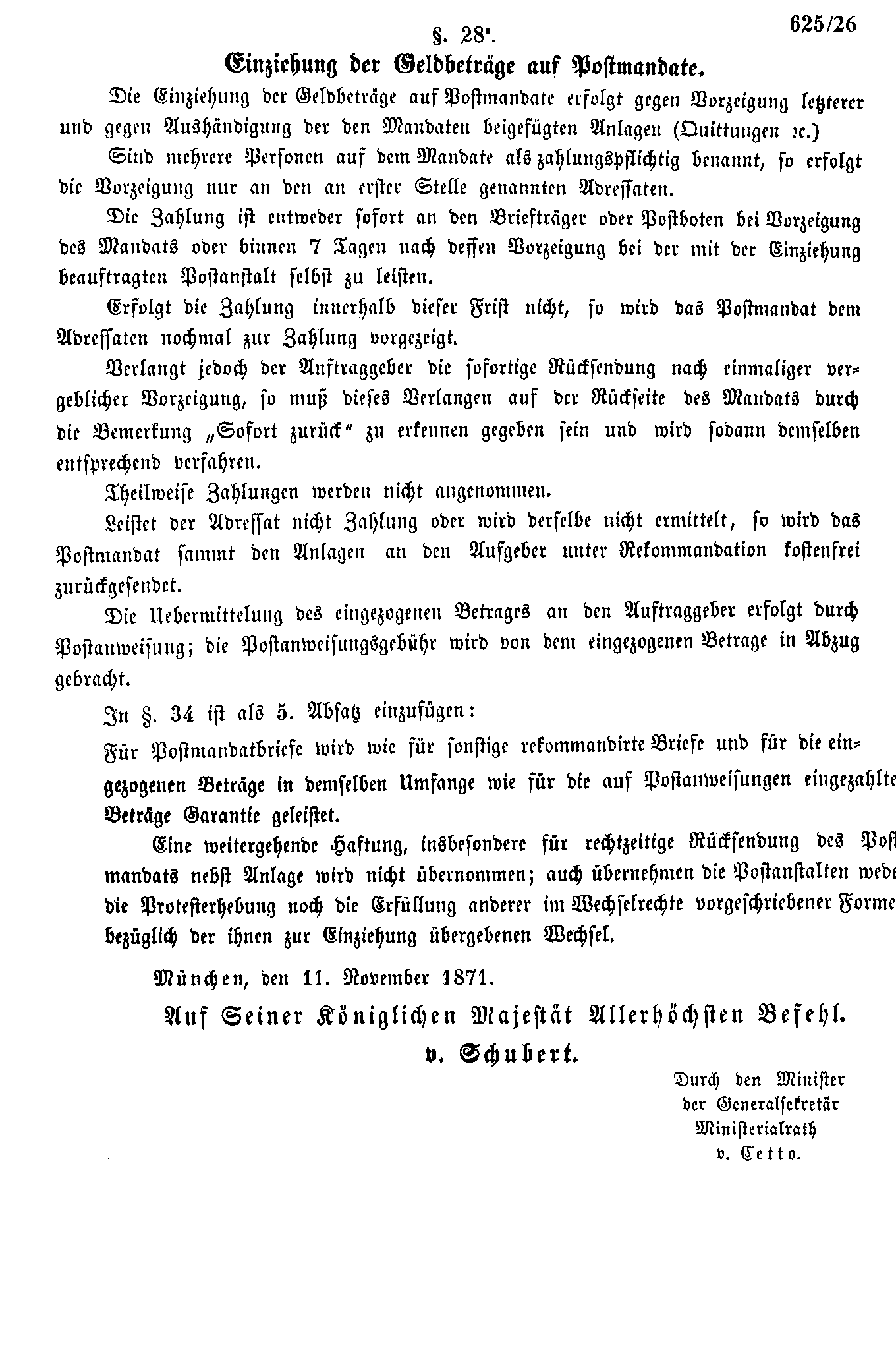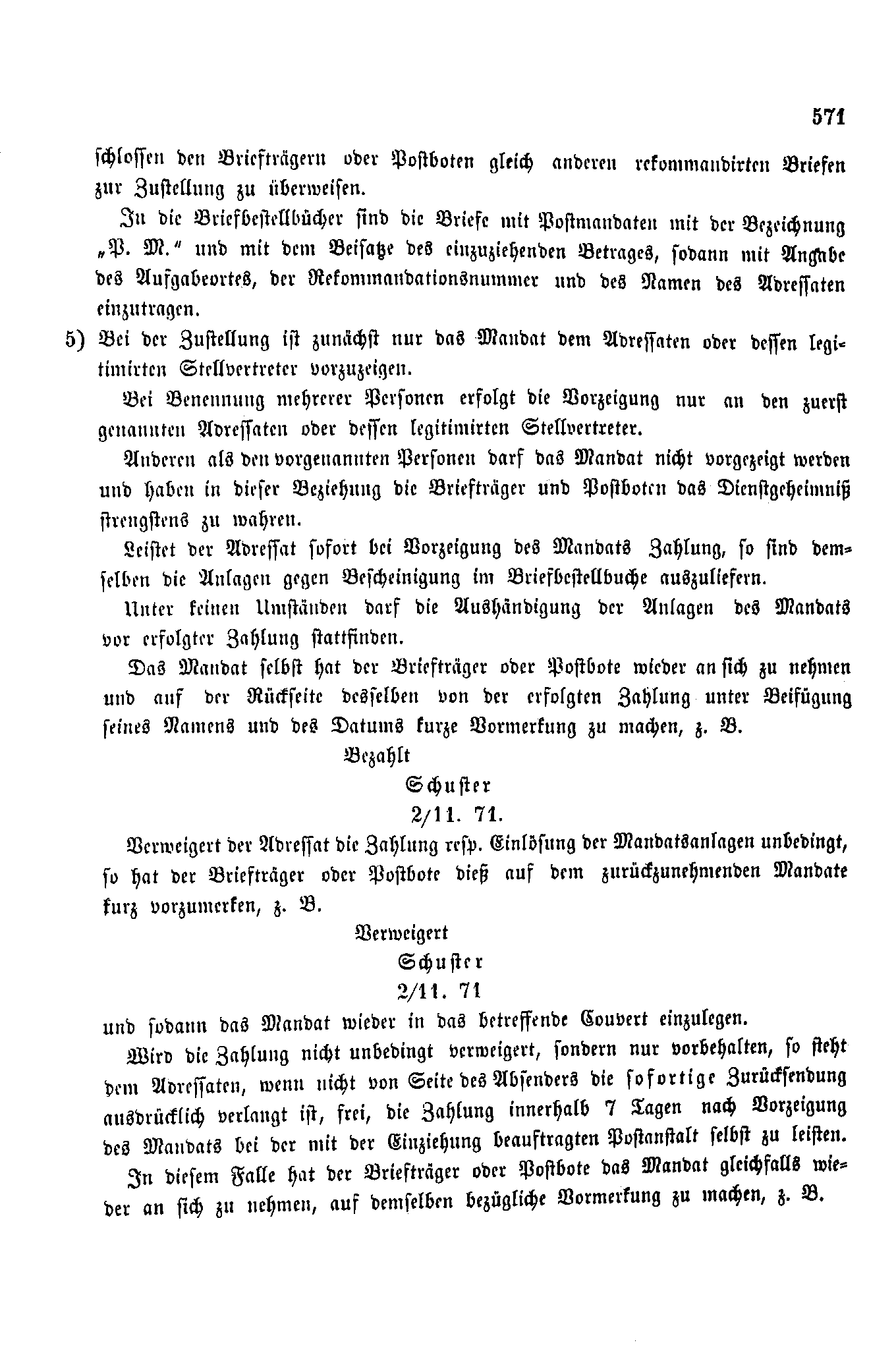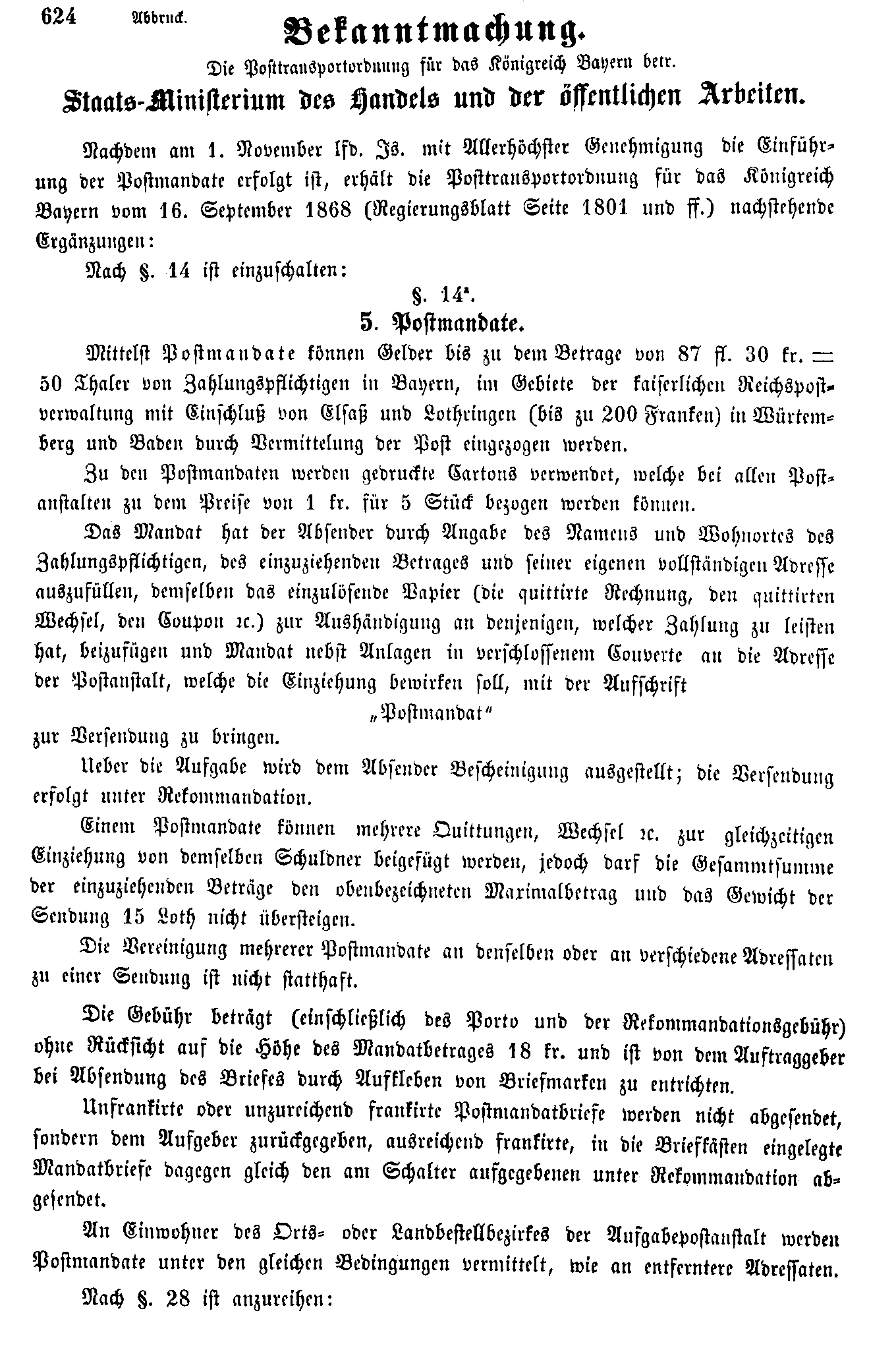 Postverordnungen - Postmandat und Postauftrag