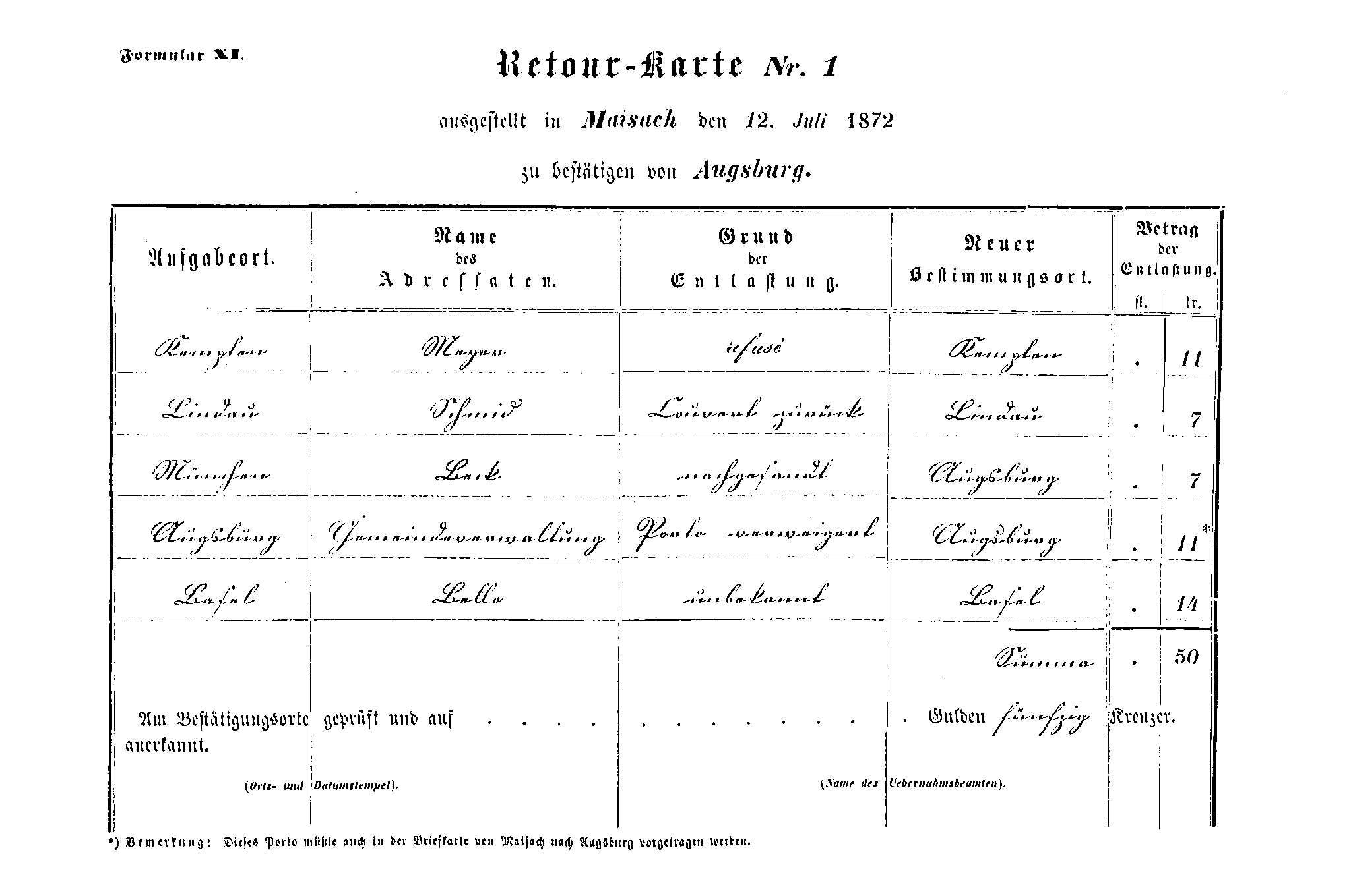Postverordnungen - Rechnungs- und Kartierungsverfahren