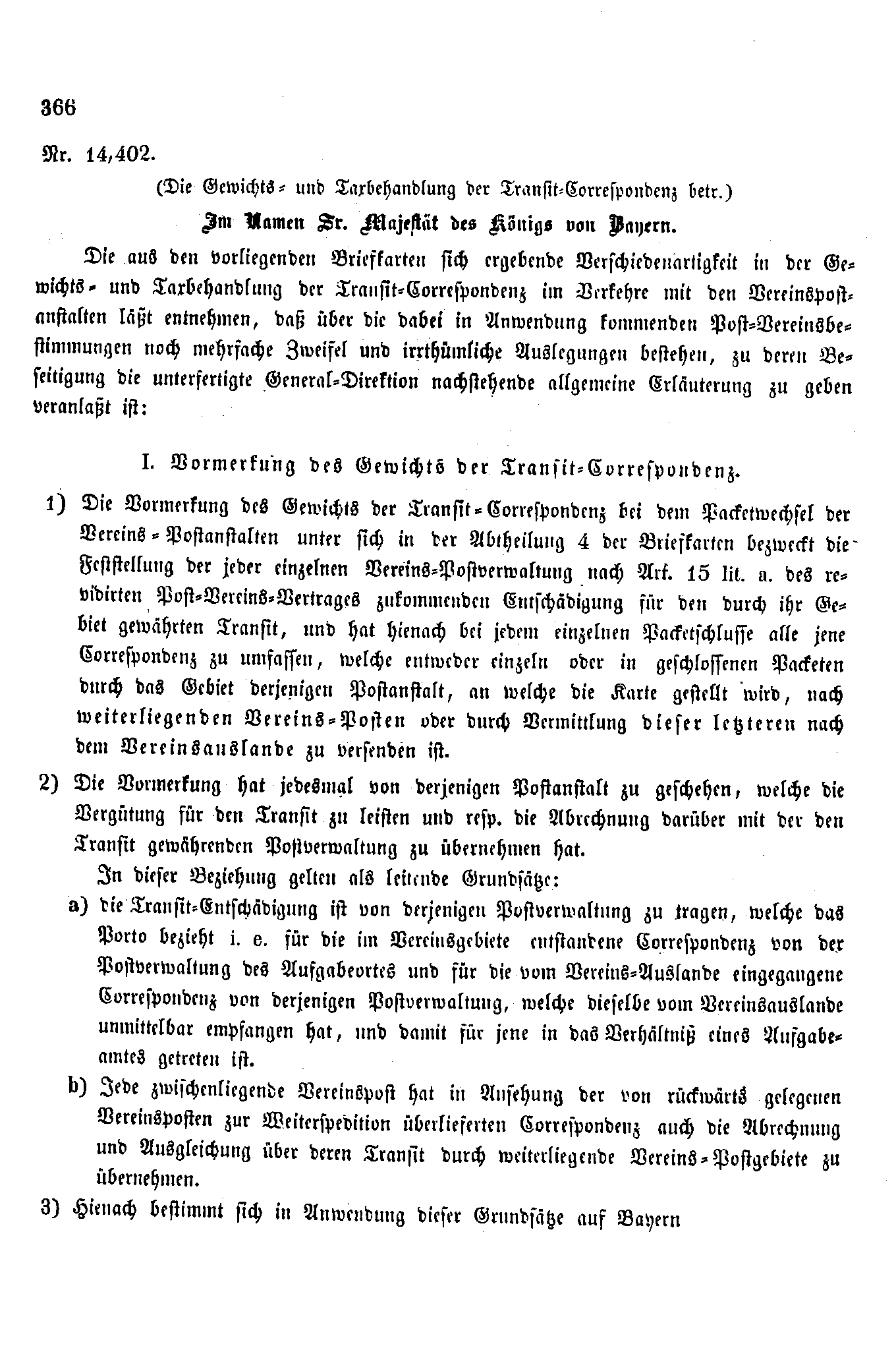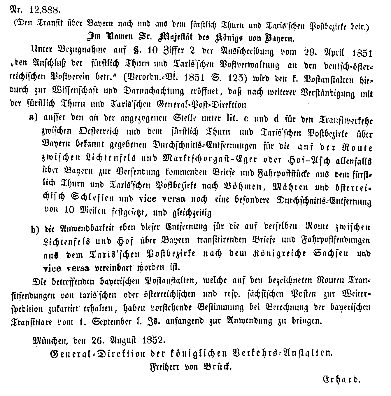 Postverordnungen - Transite Bayern