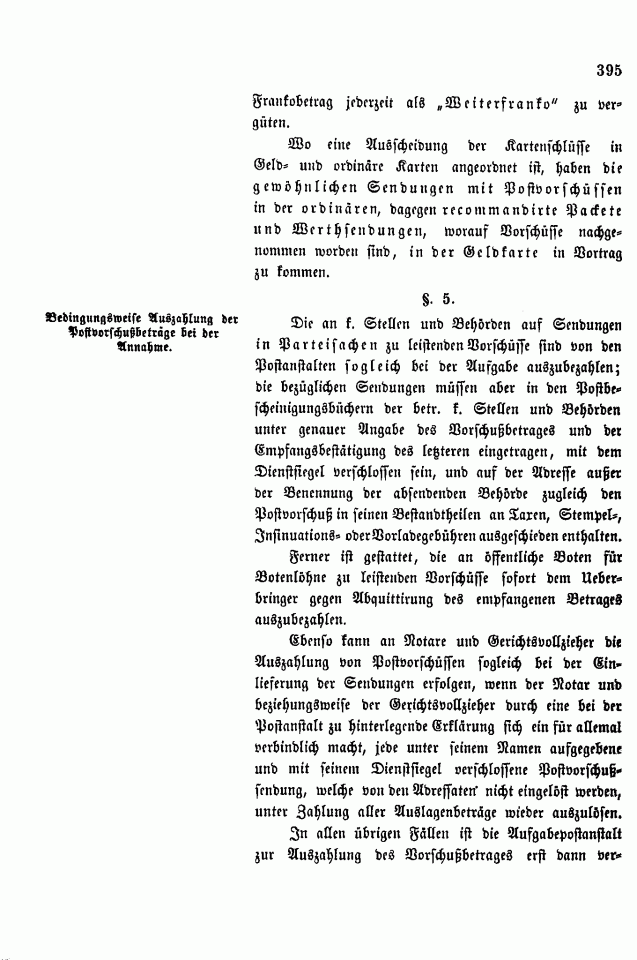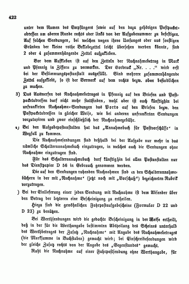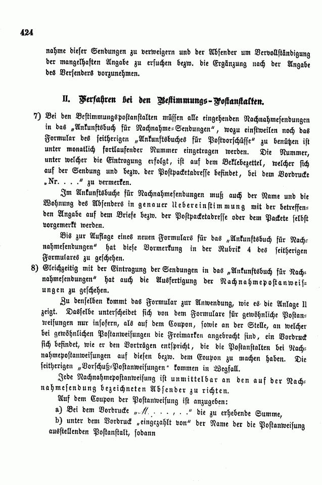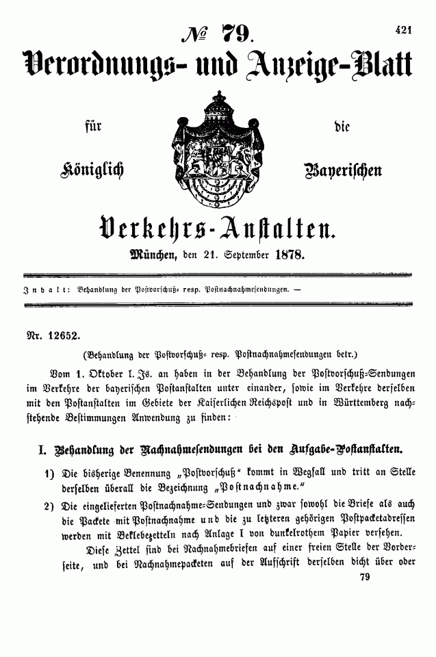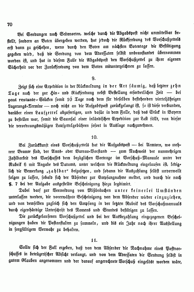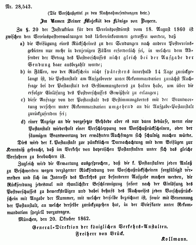 Postverordnungen - Vorschuss und Nachnahme
