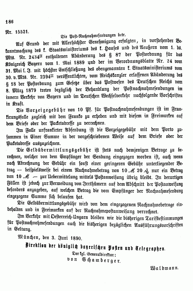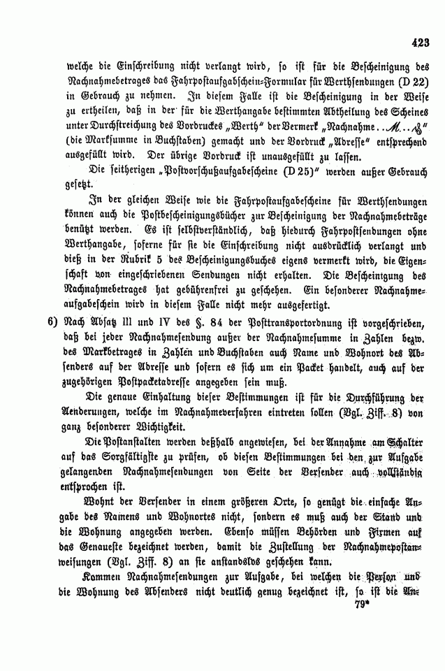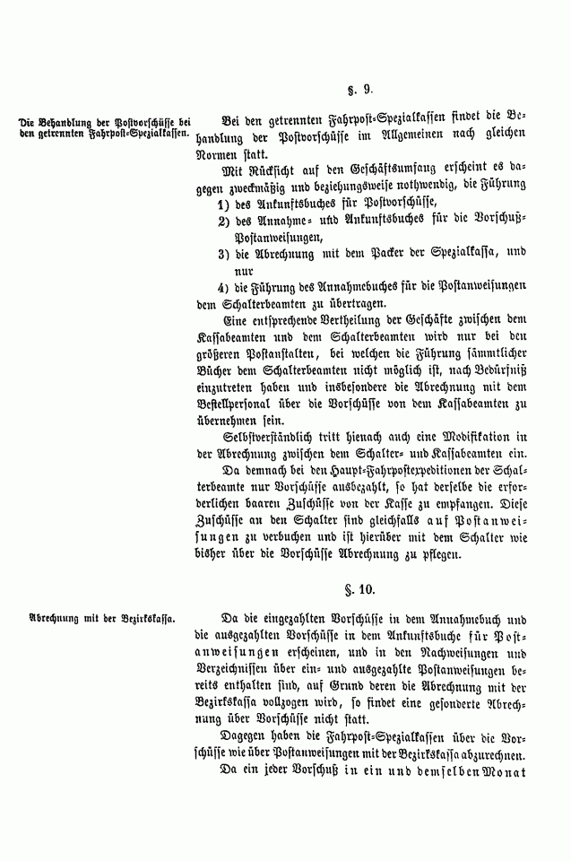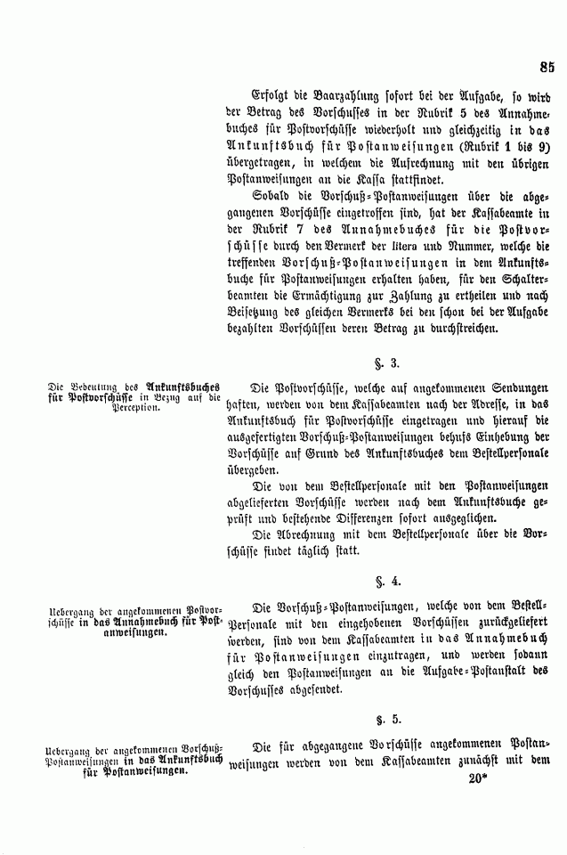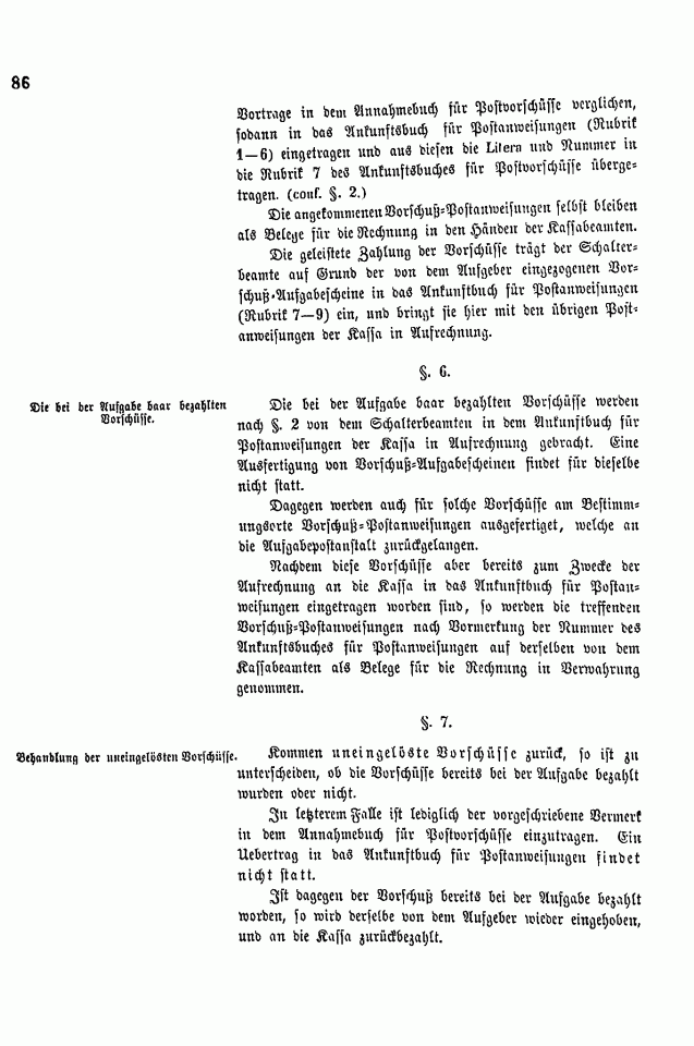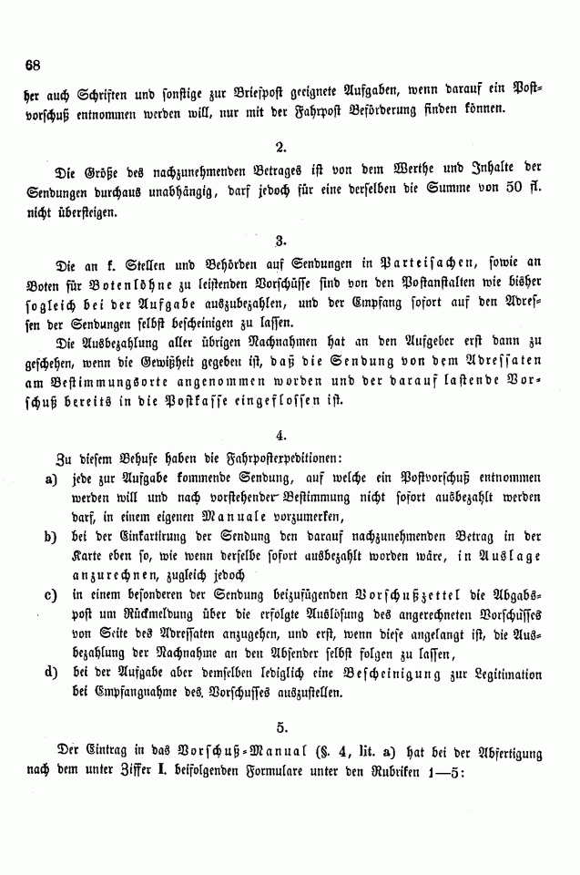 Postverordnungen - Vorschuss und Nachnahme