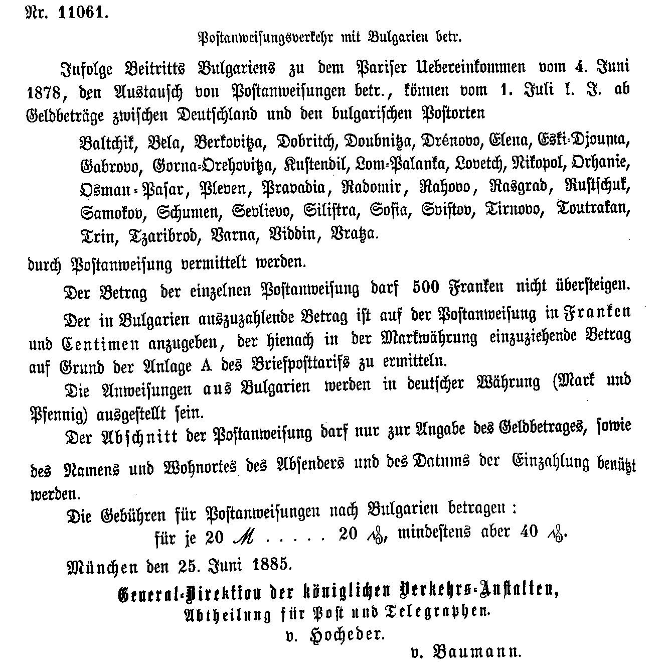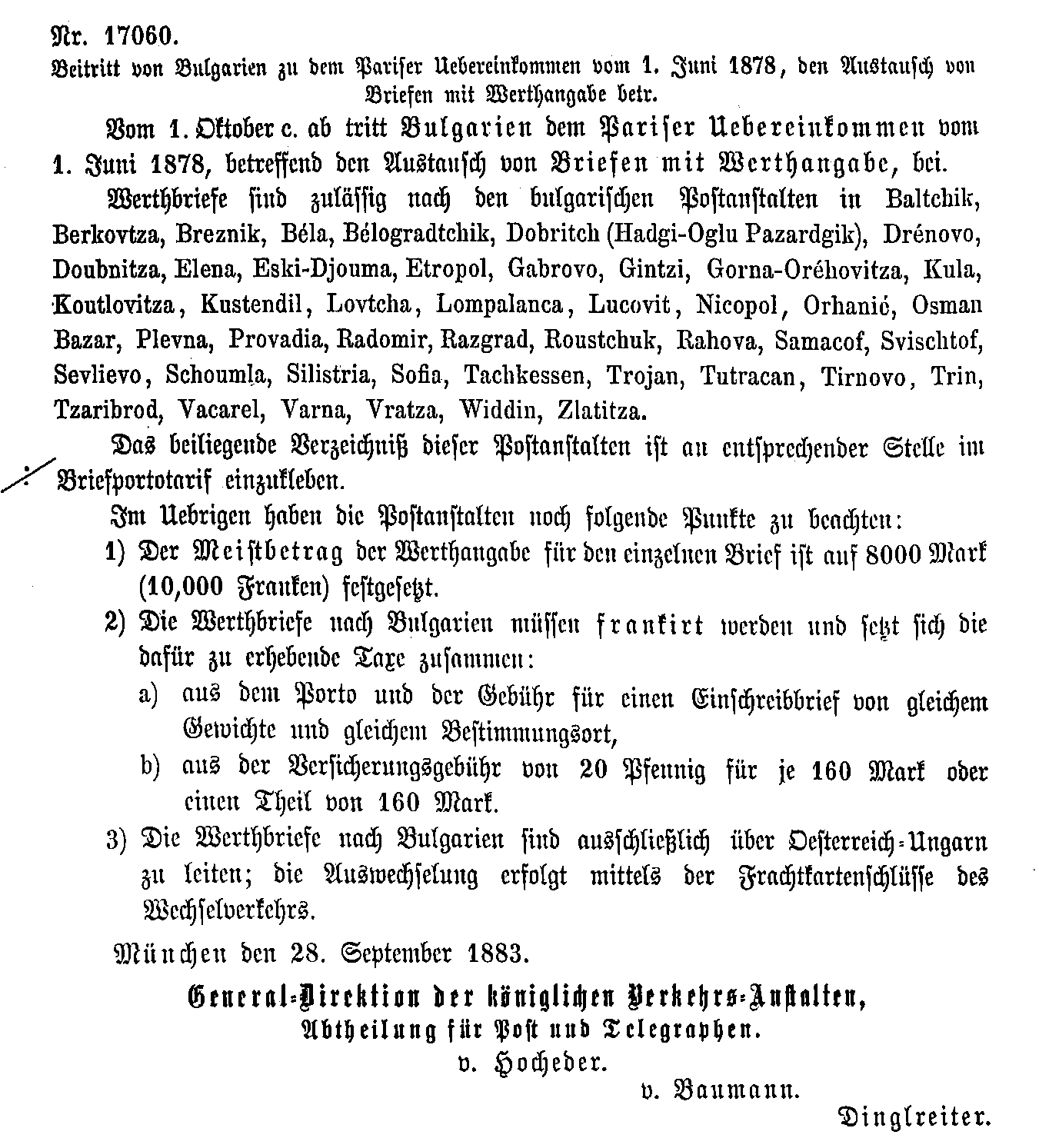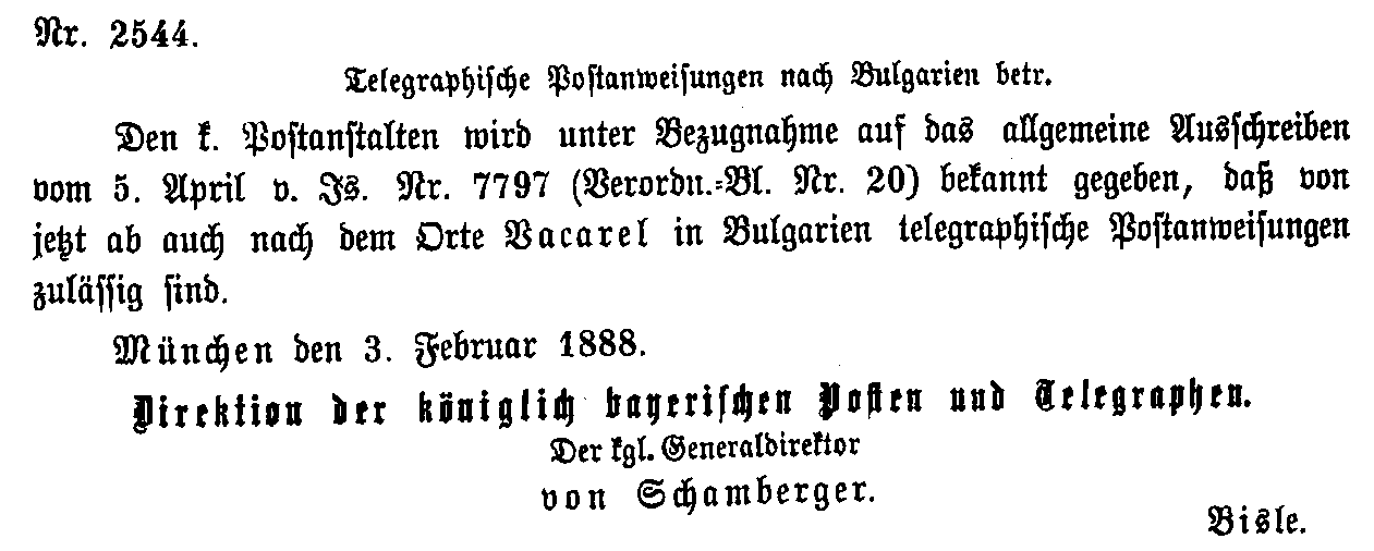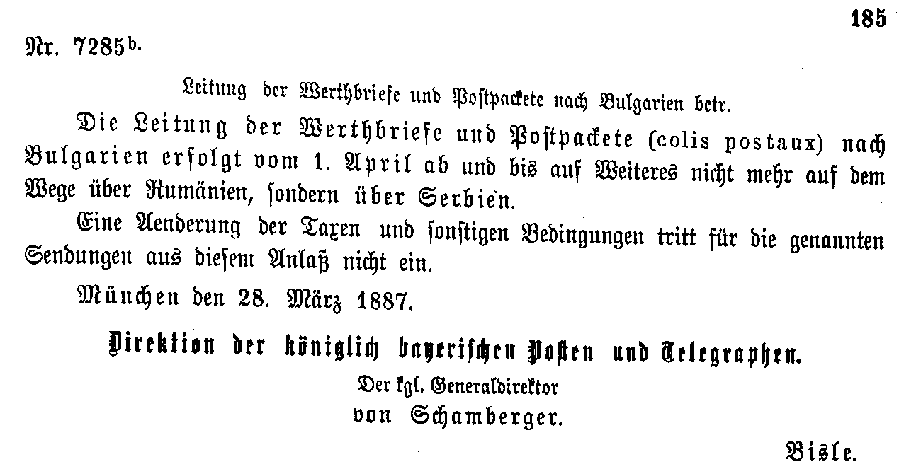 Postverordnungen - Bulgarien, Albanien