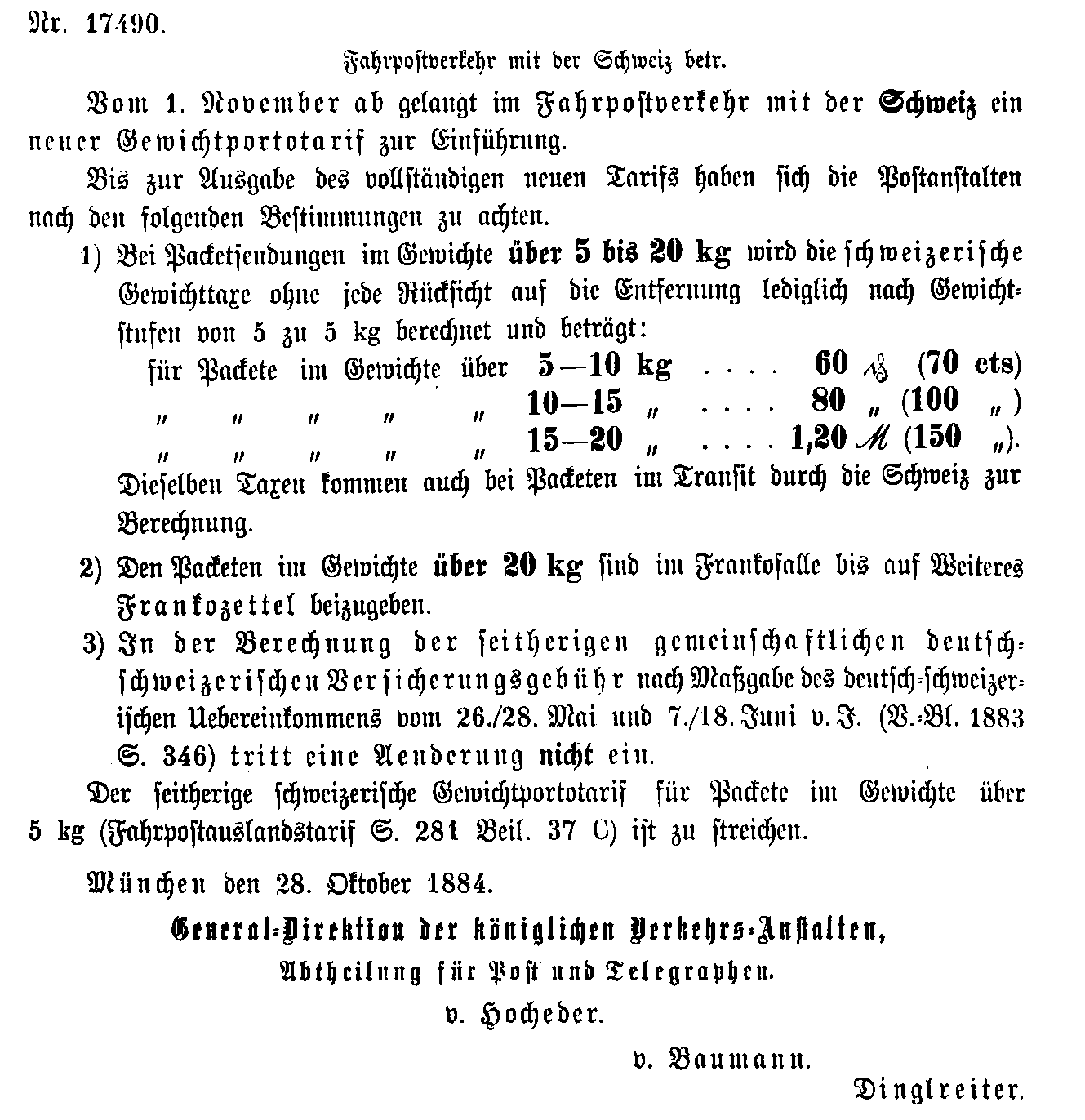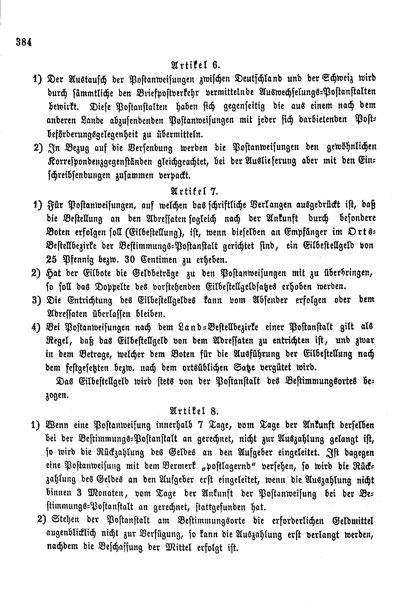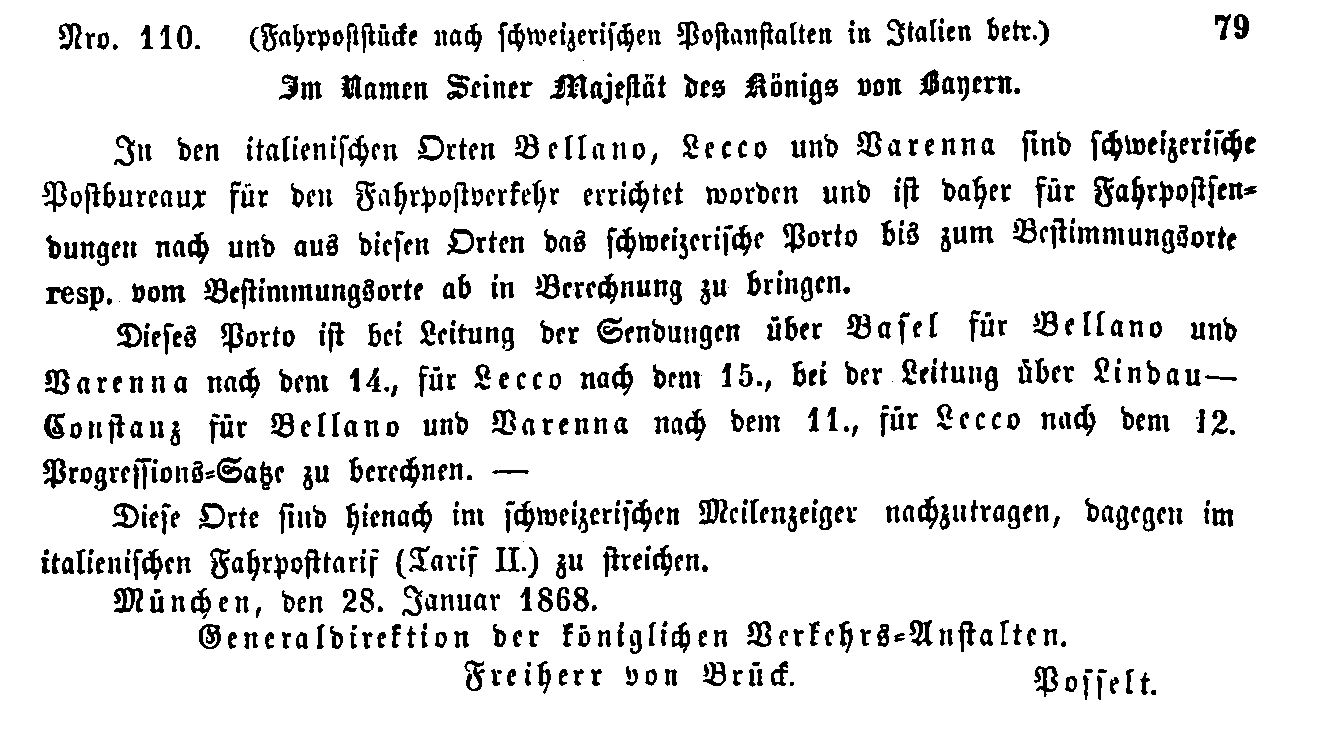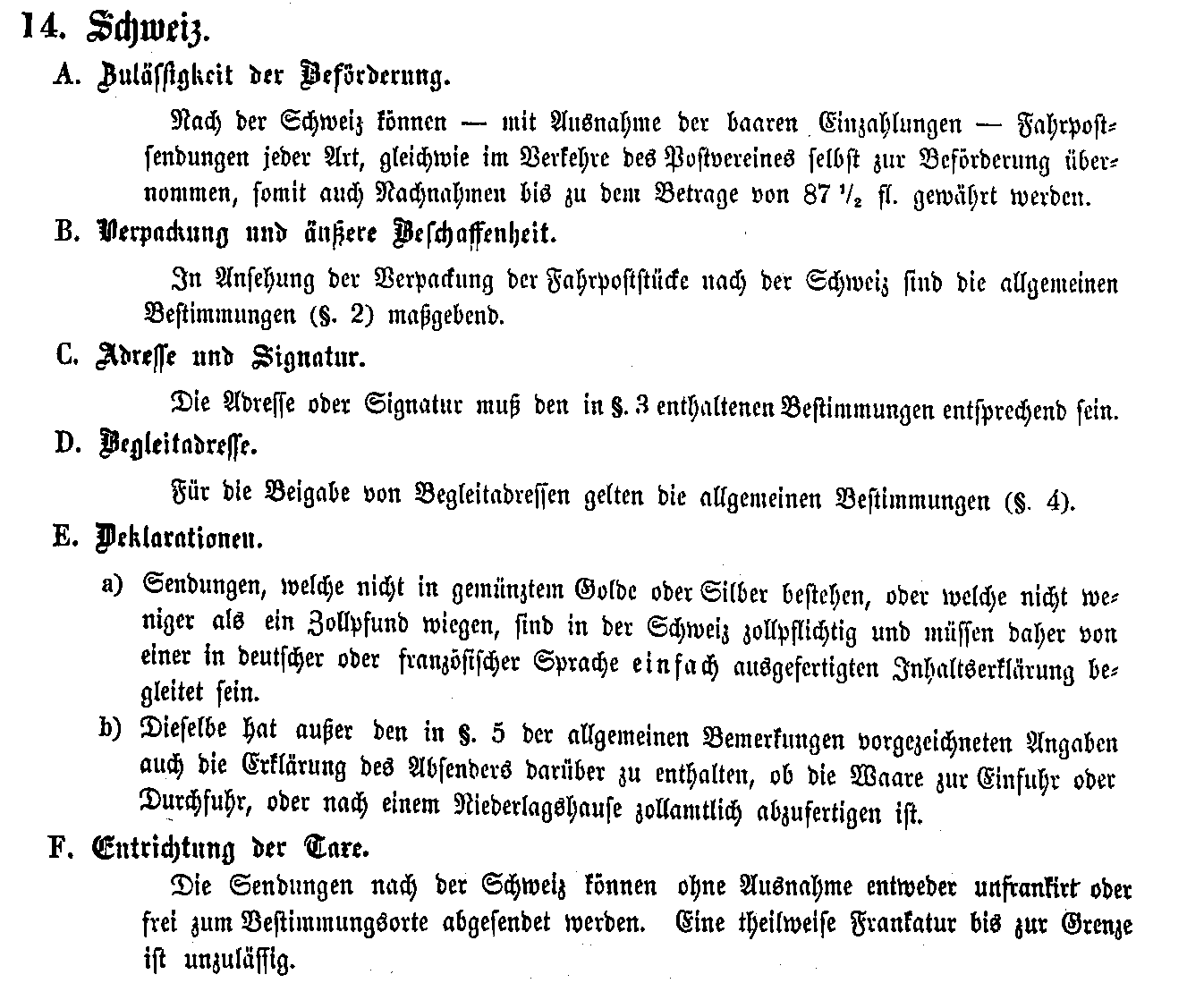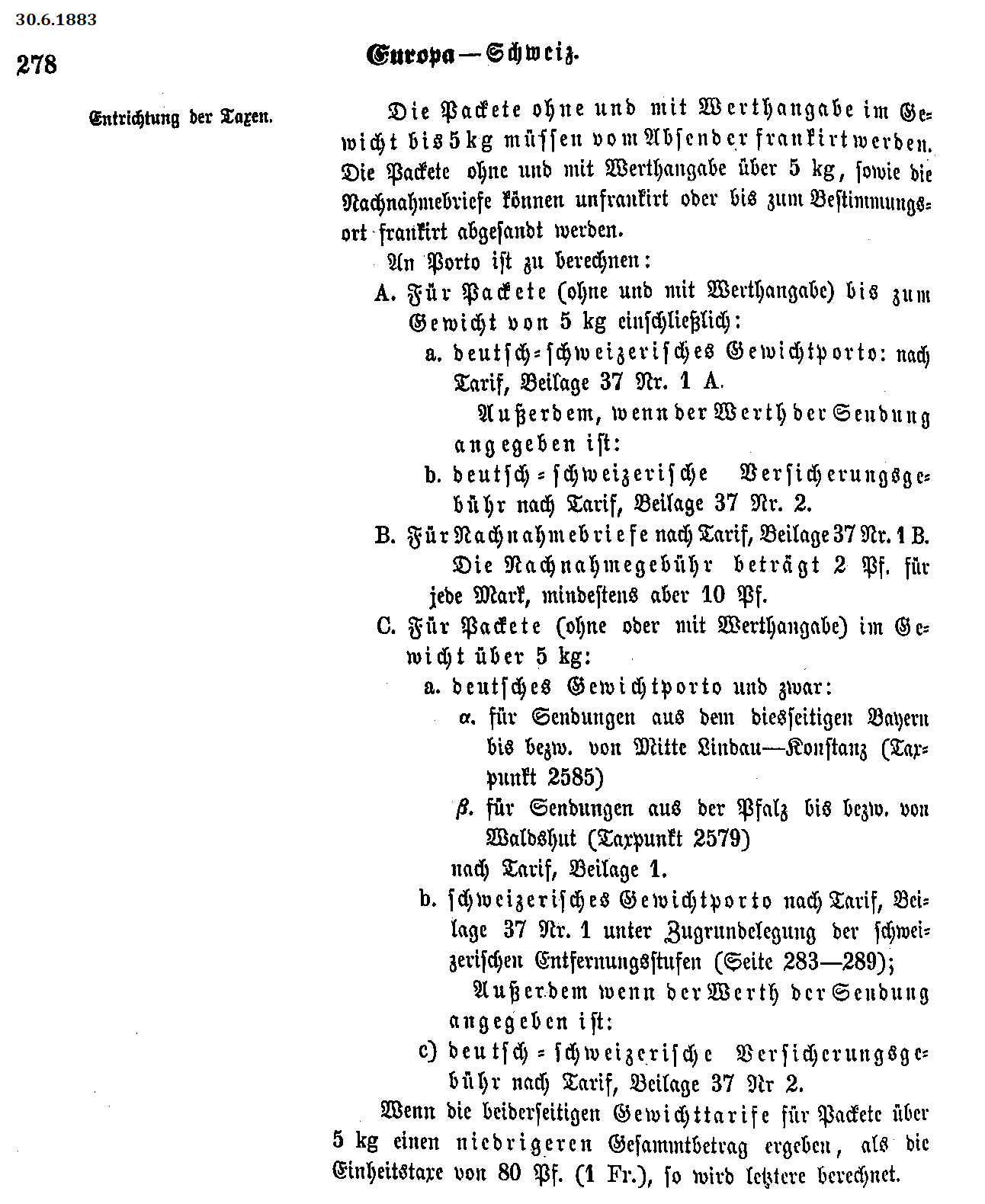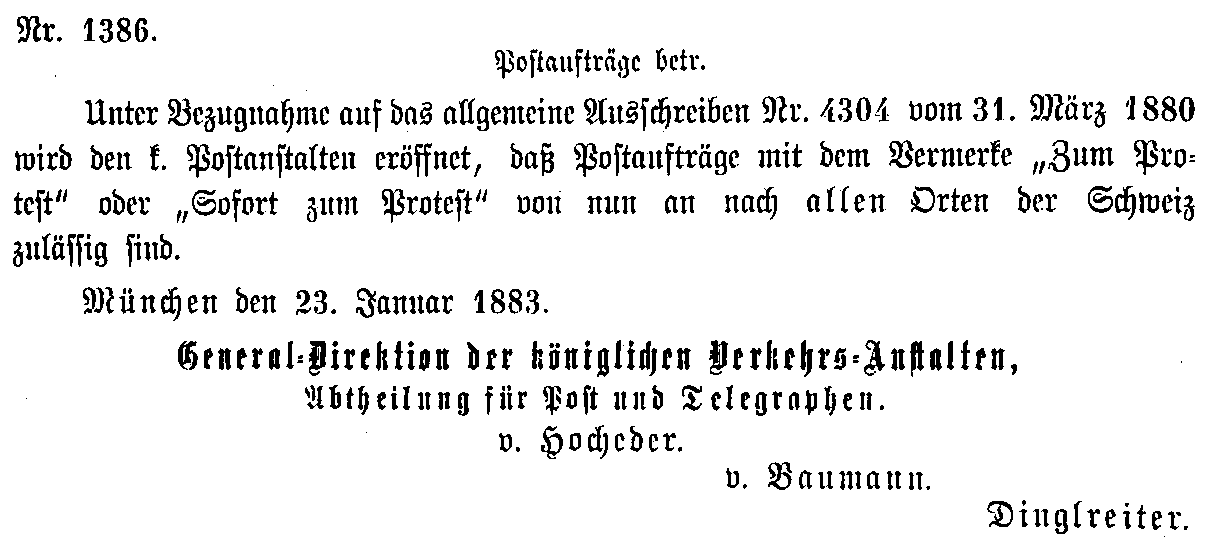 Postverordnungen - Schweiz