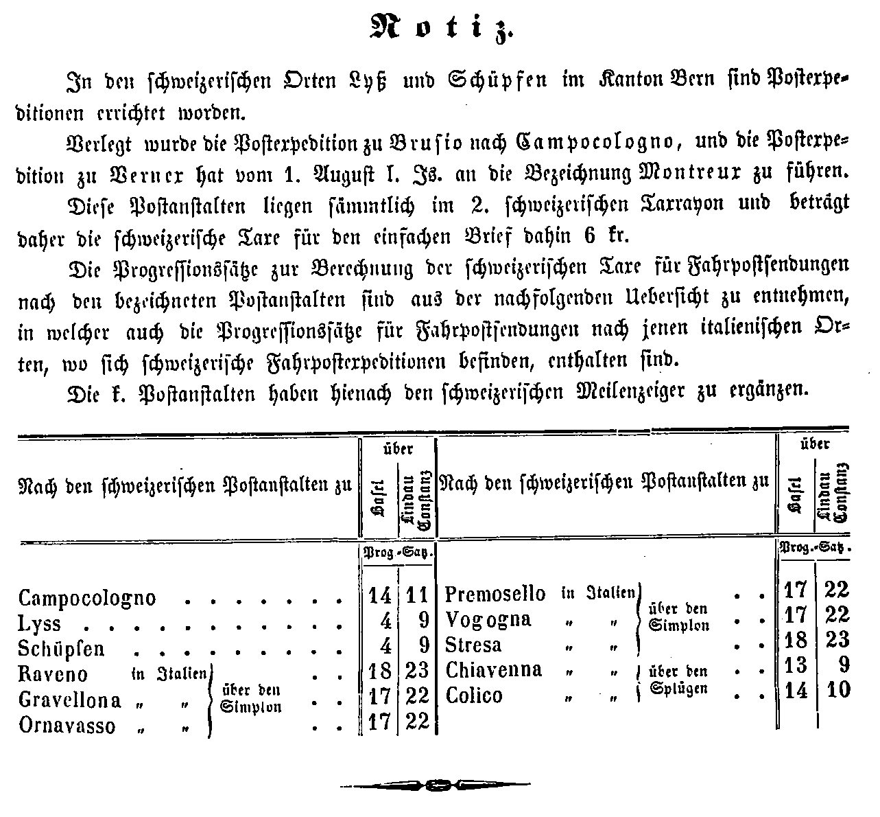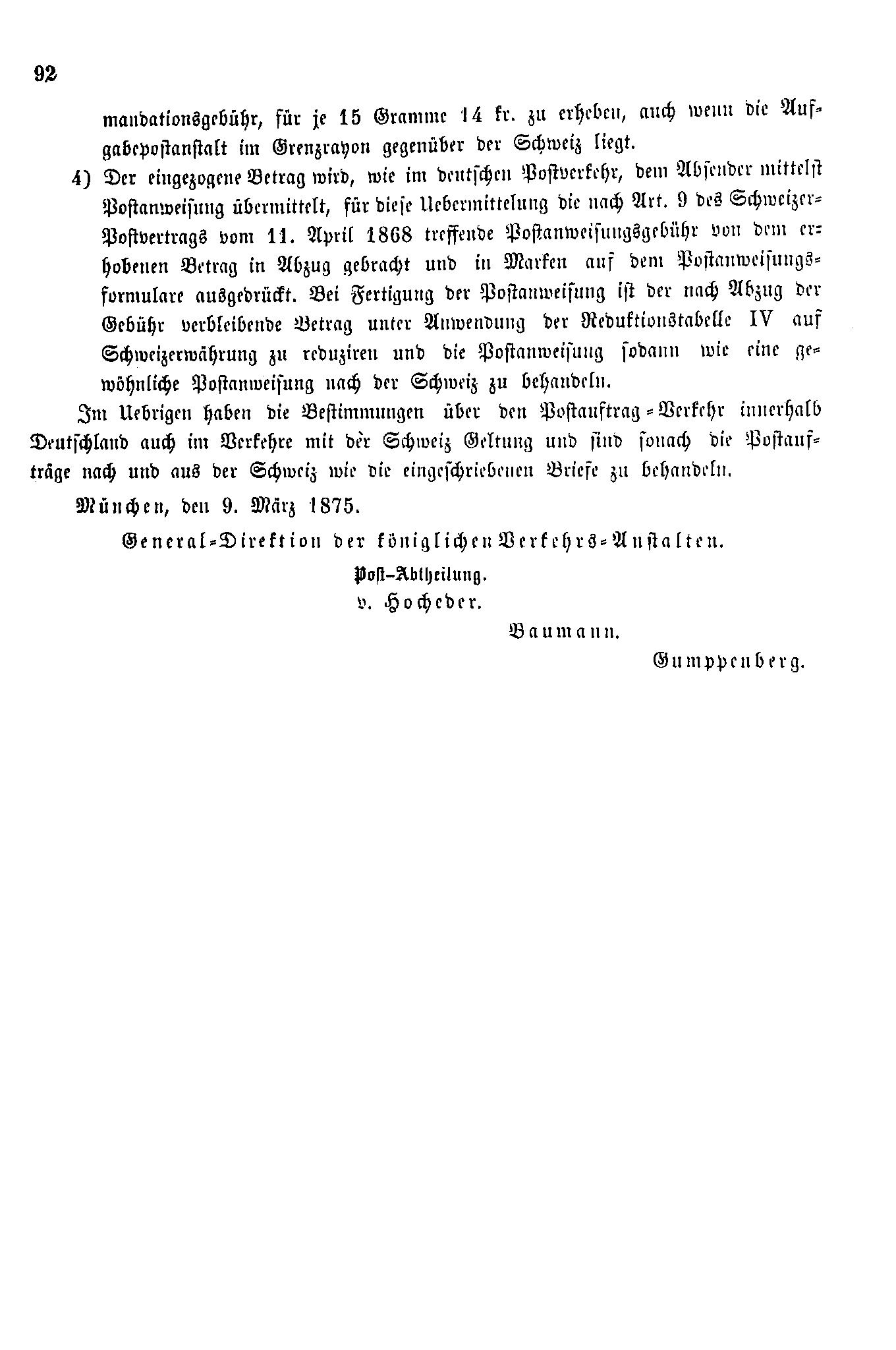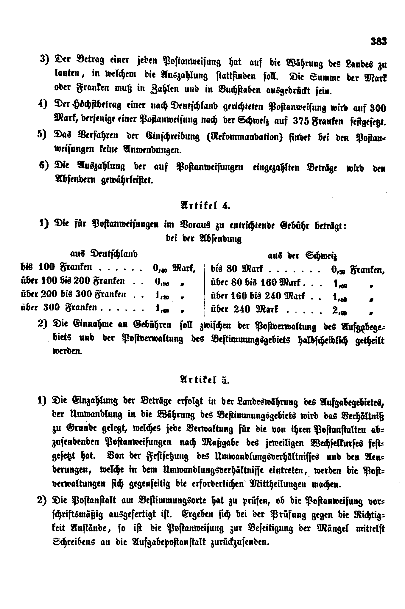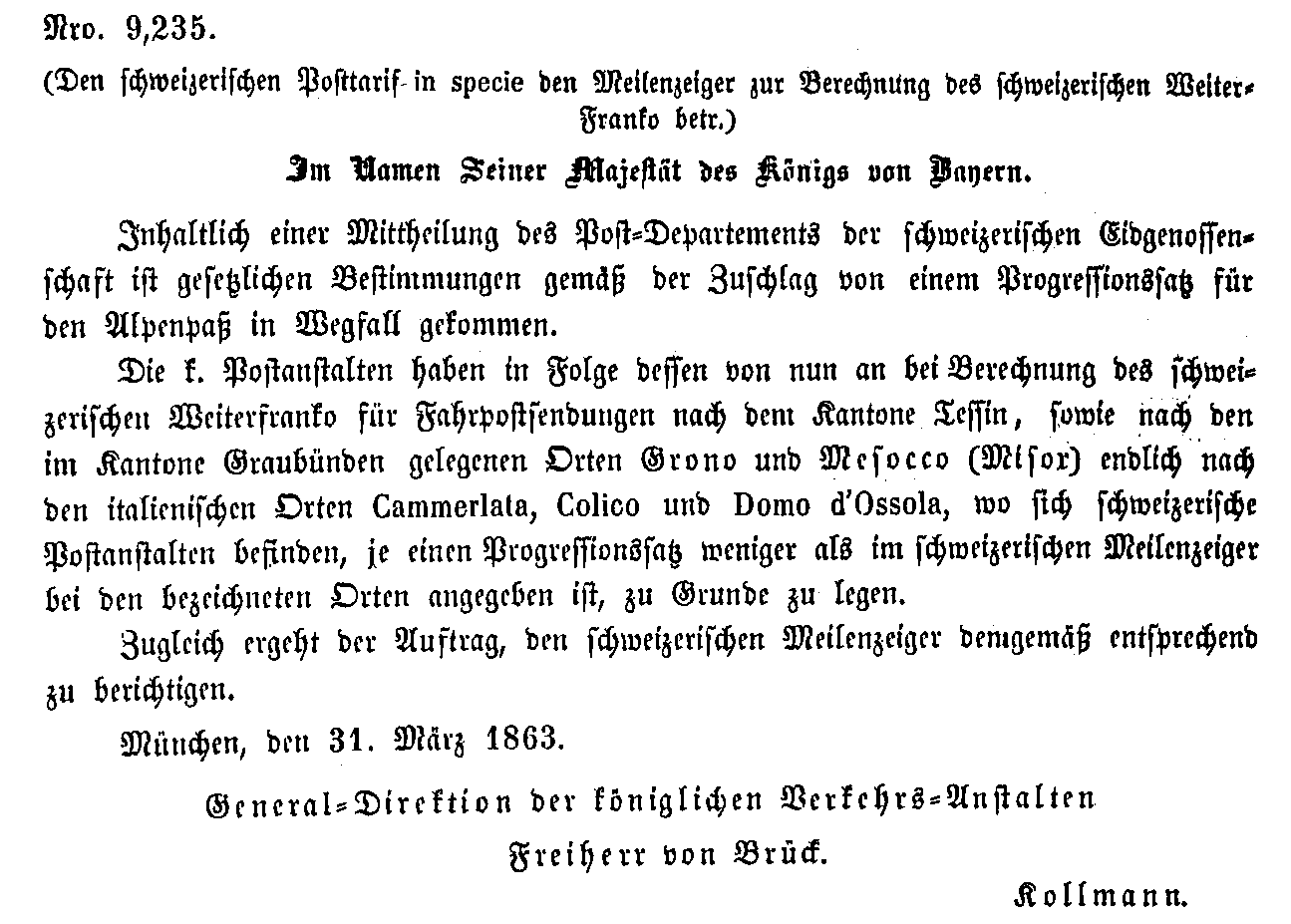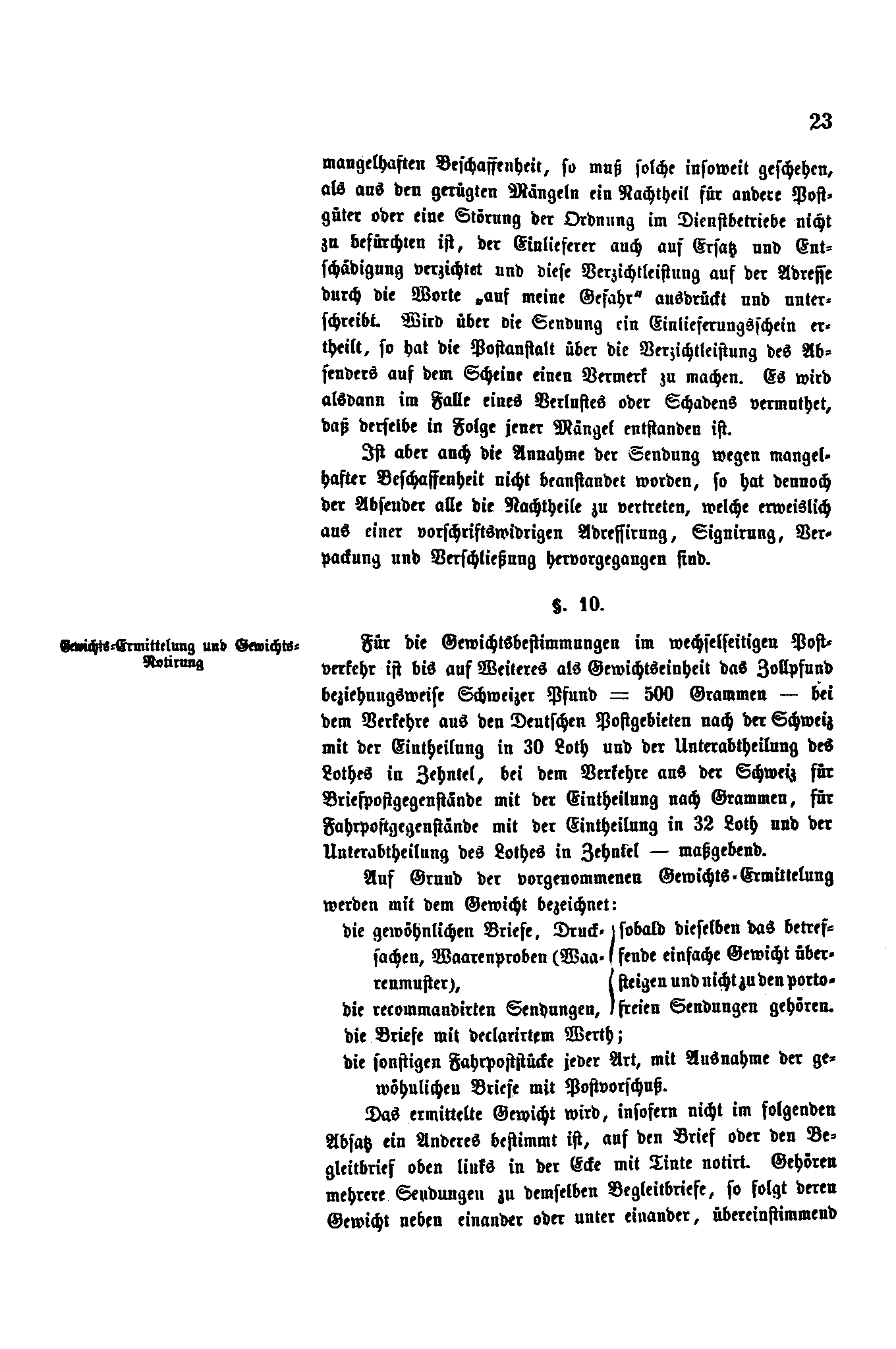 Postverordnungen - Schweiz