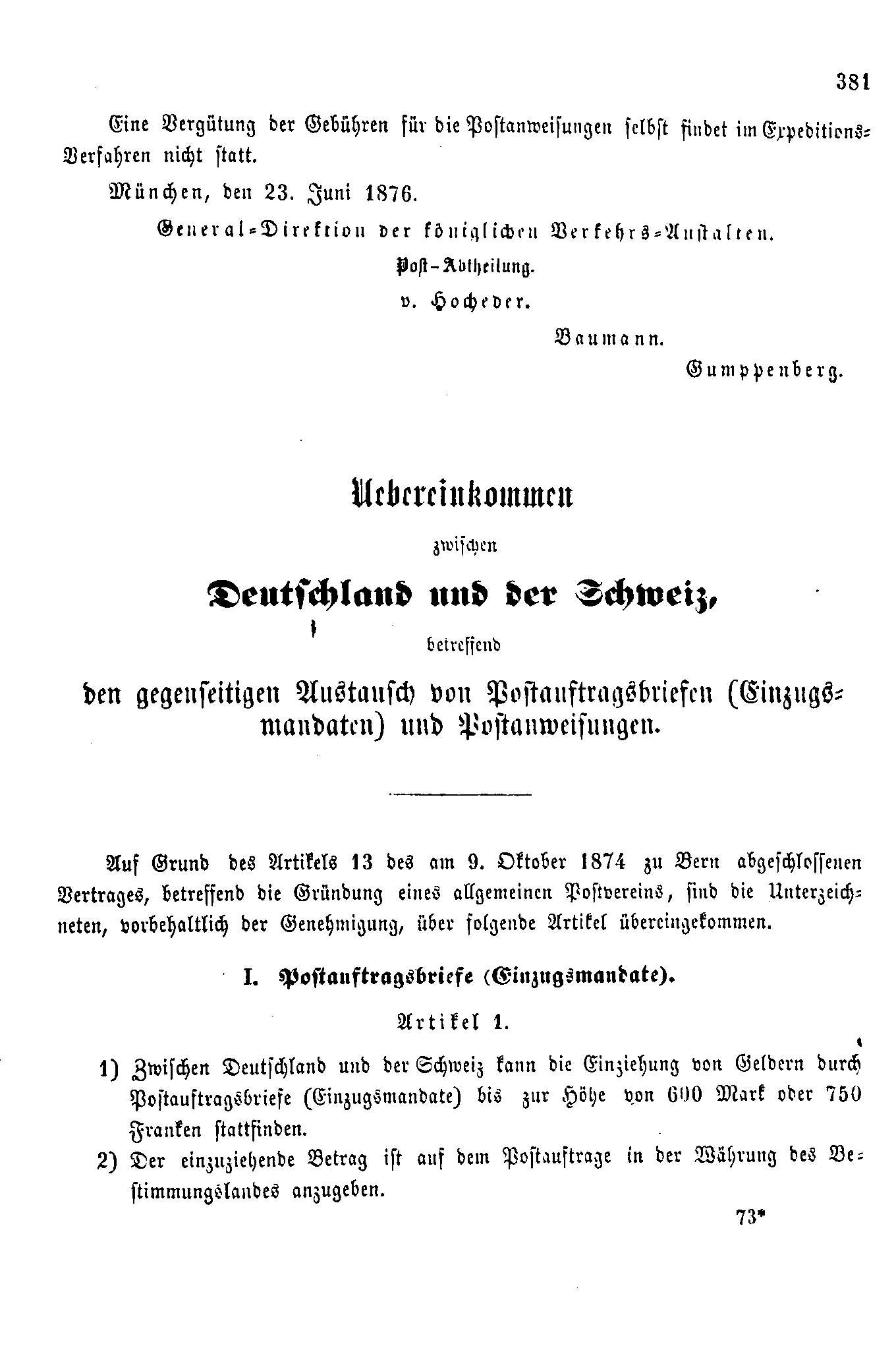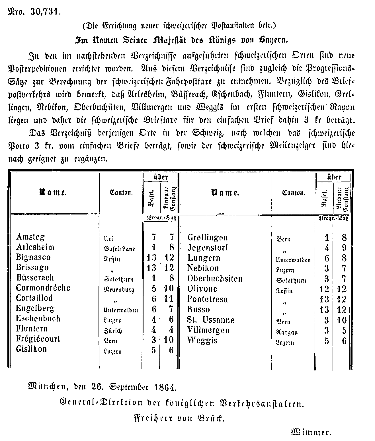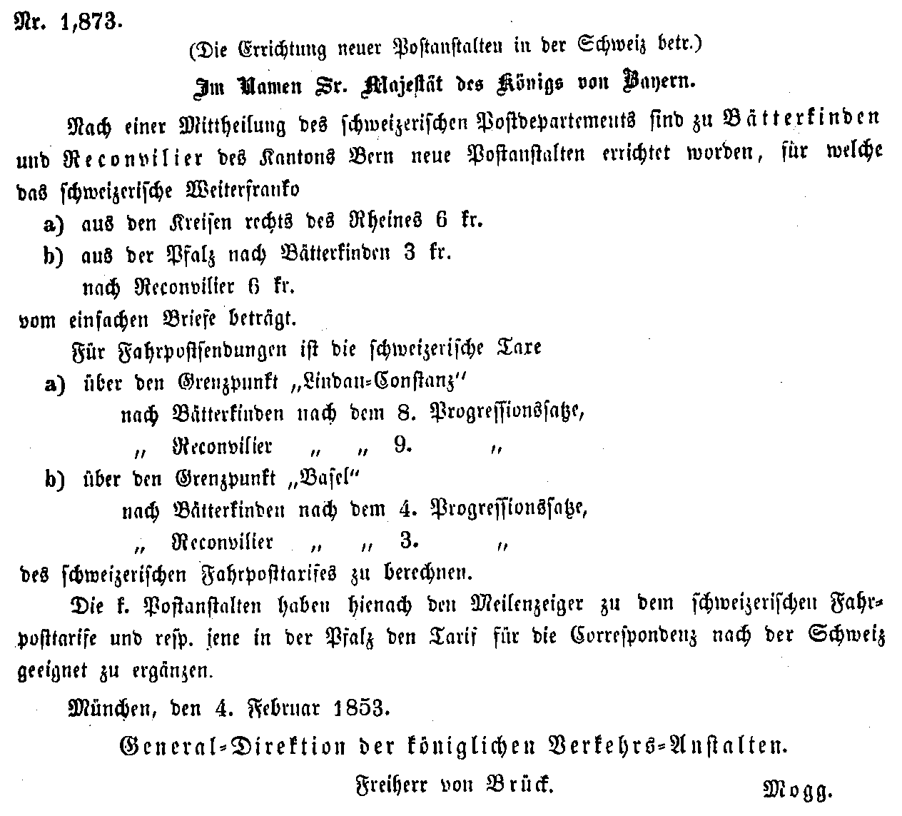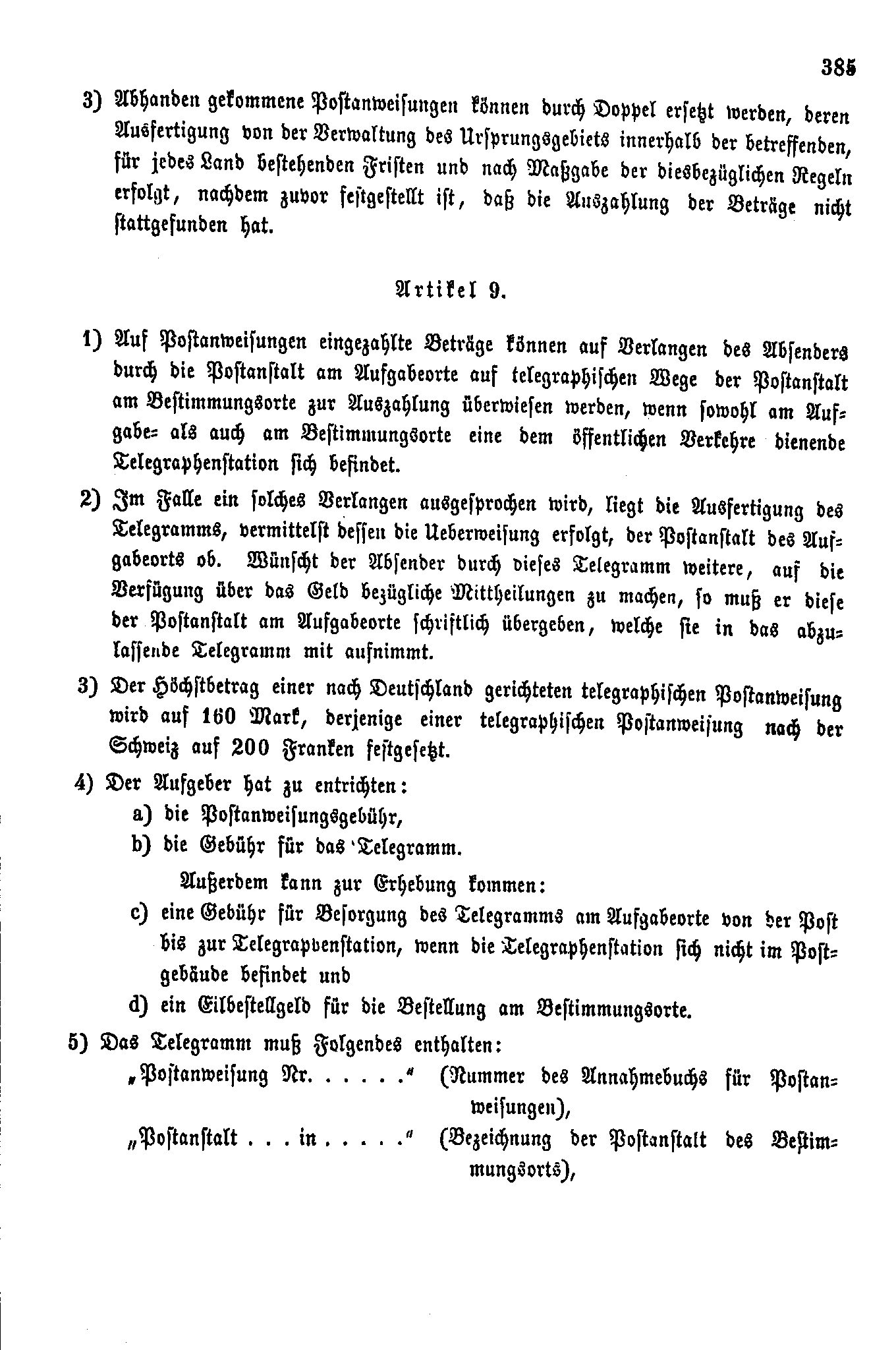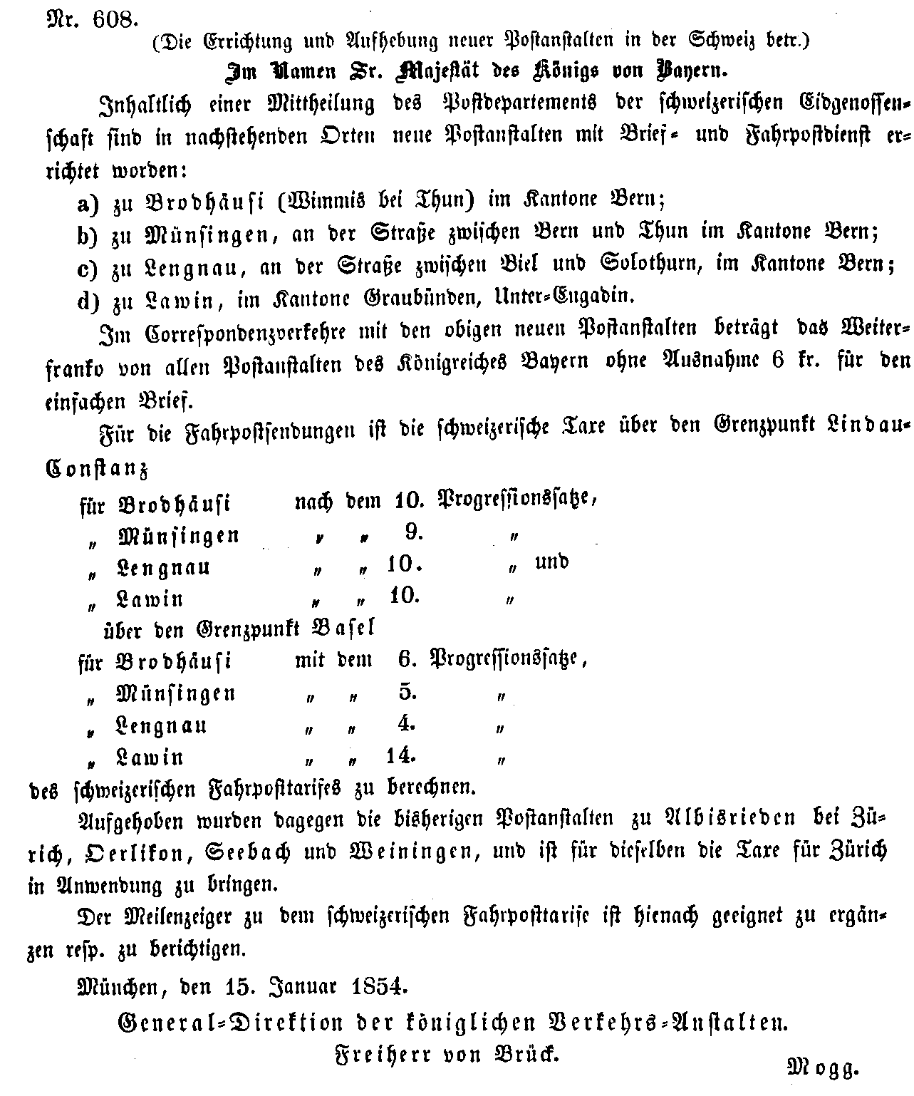 Postverordnungen - Schweiz