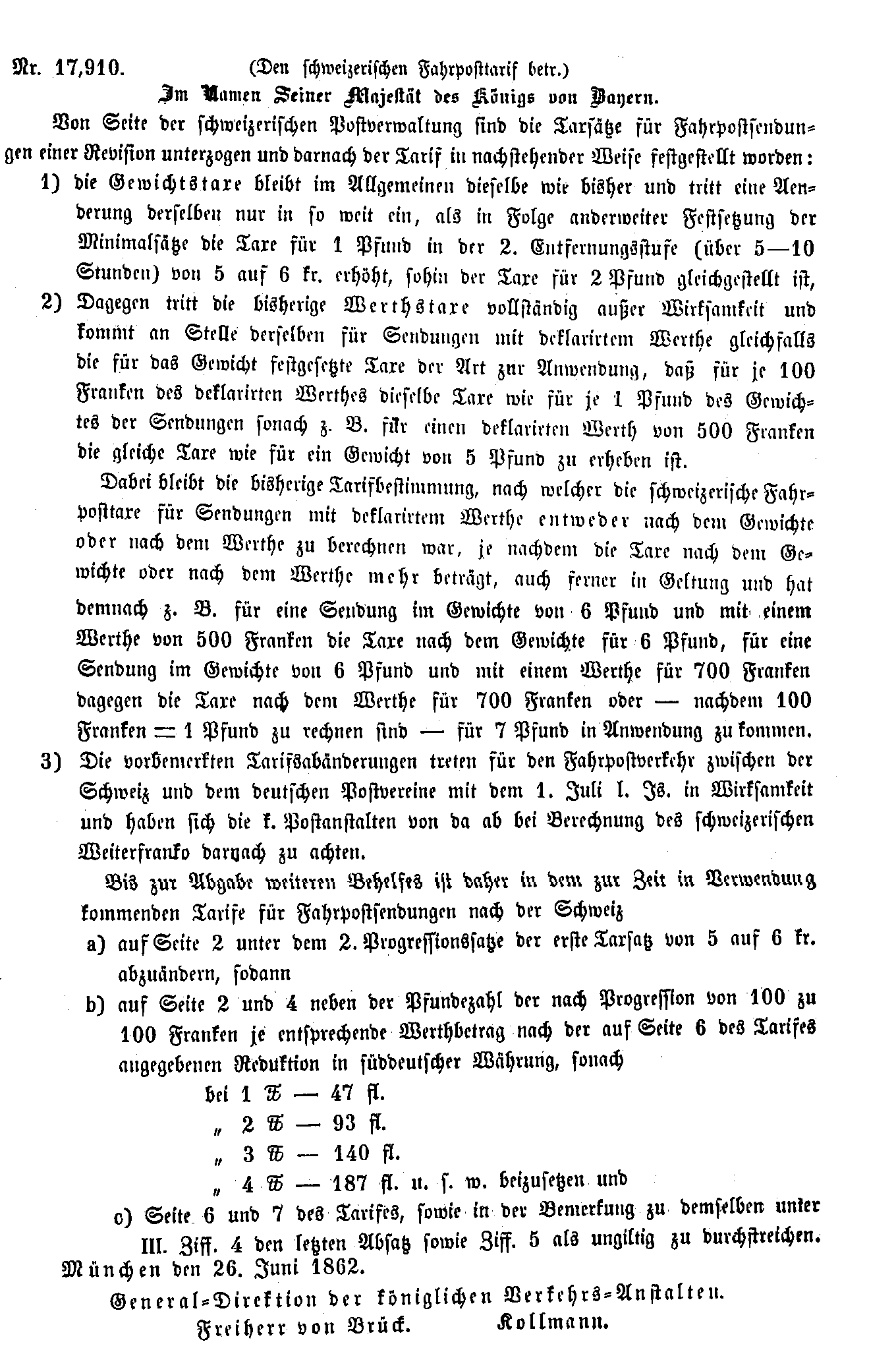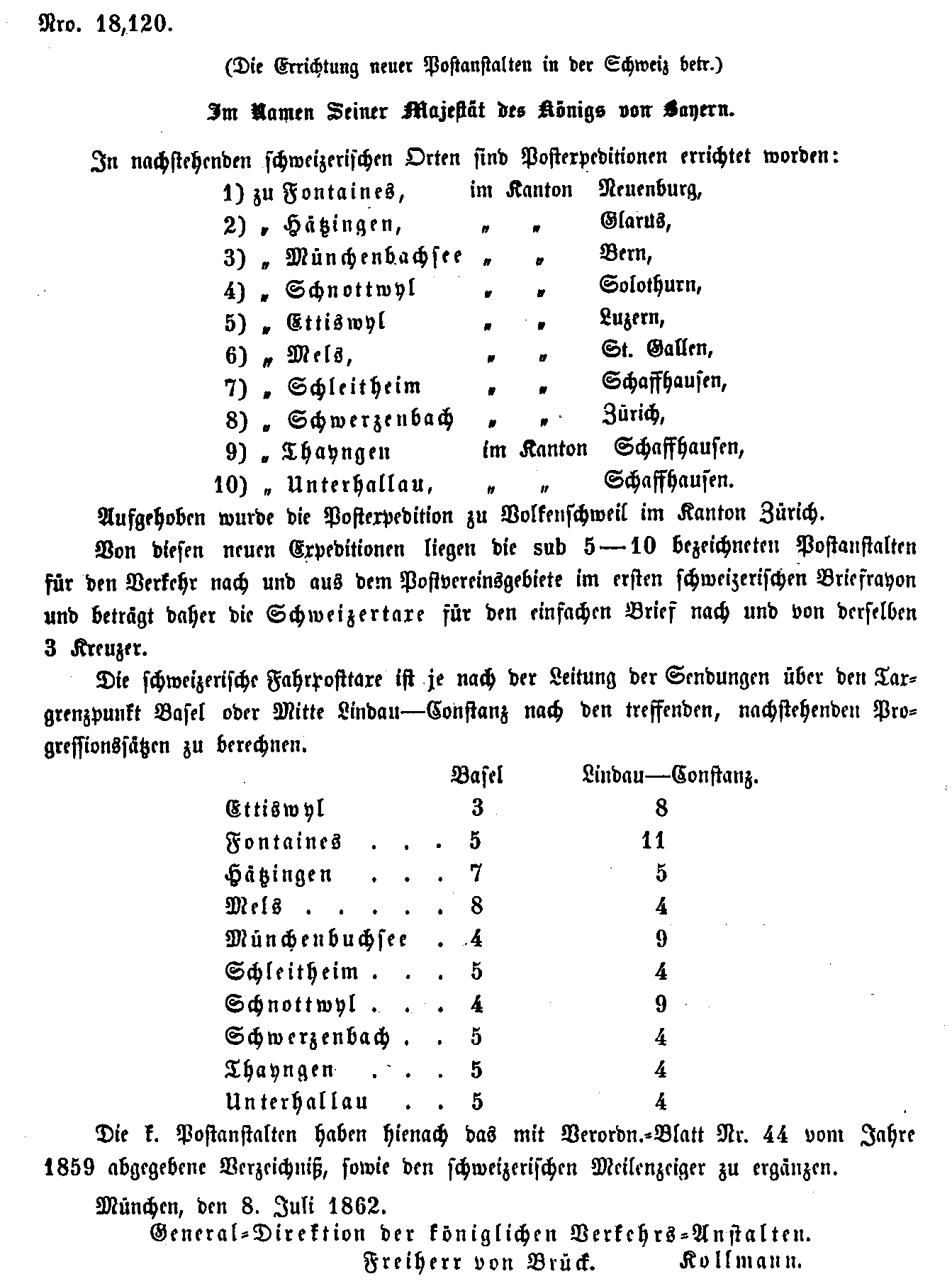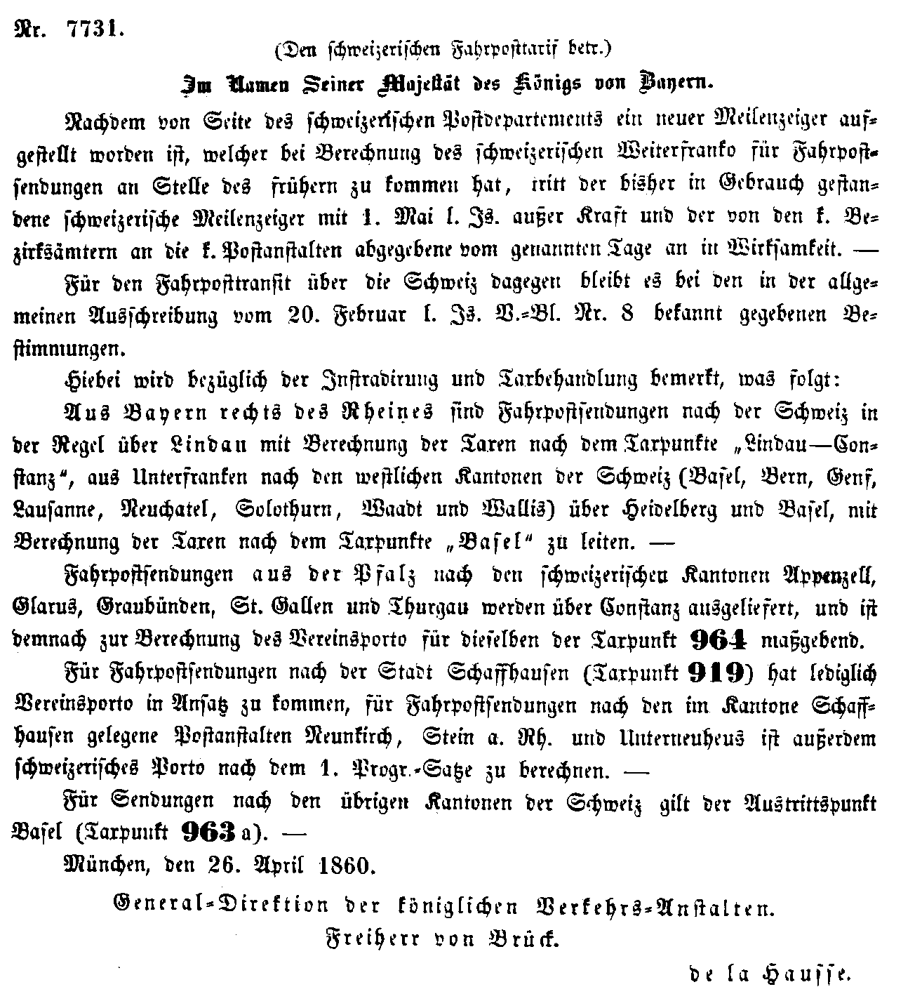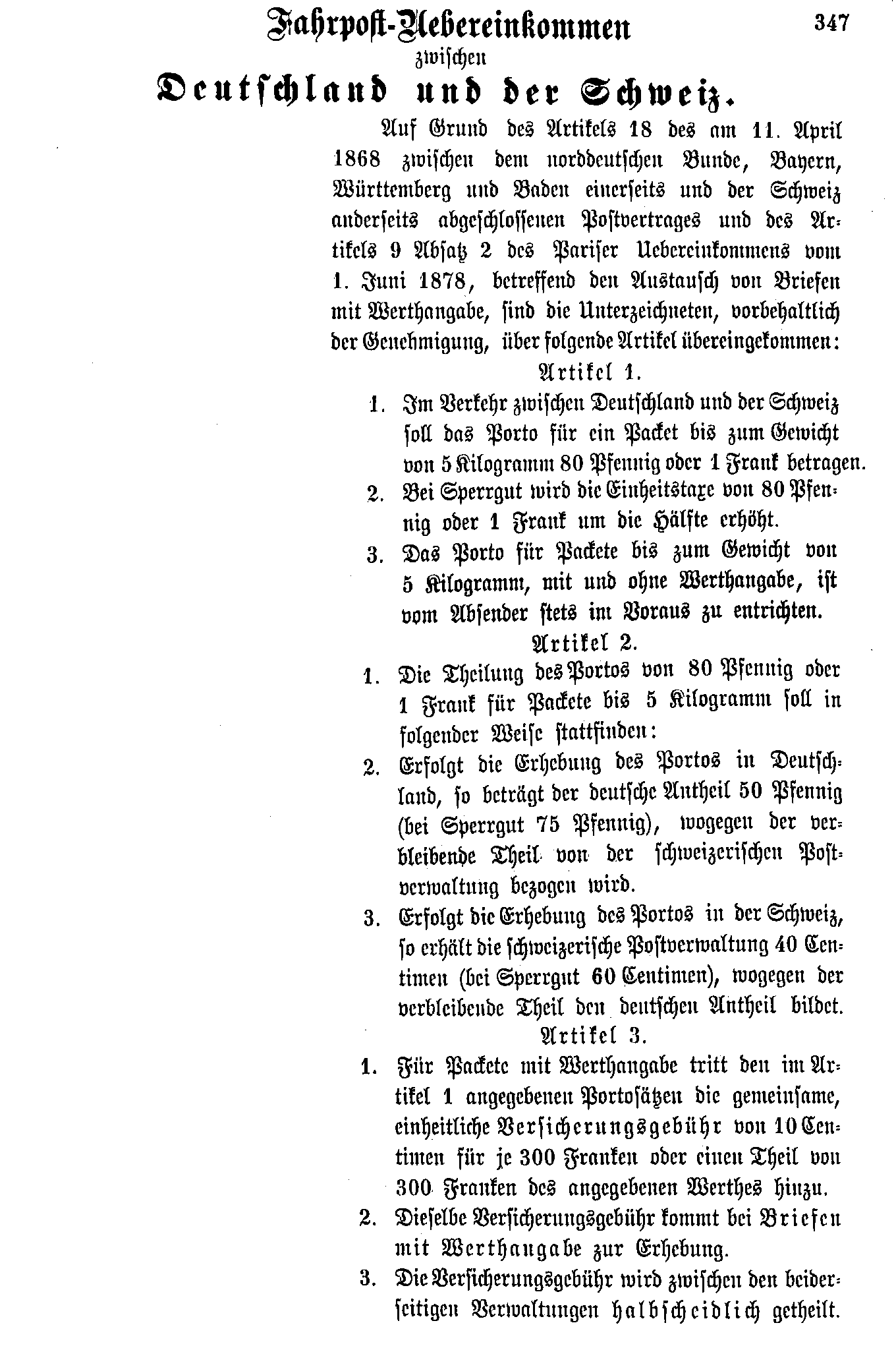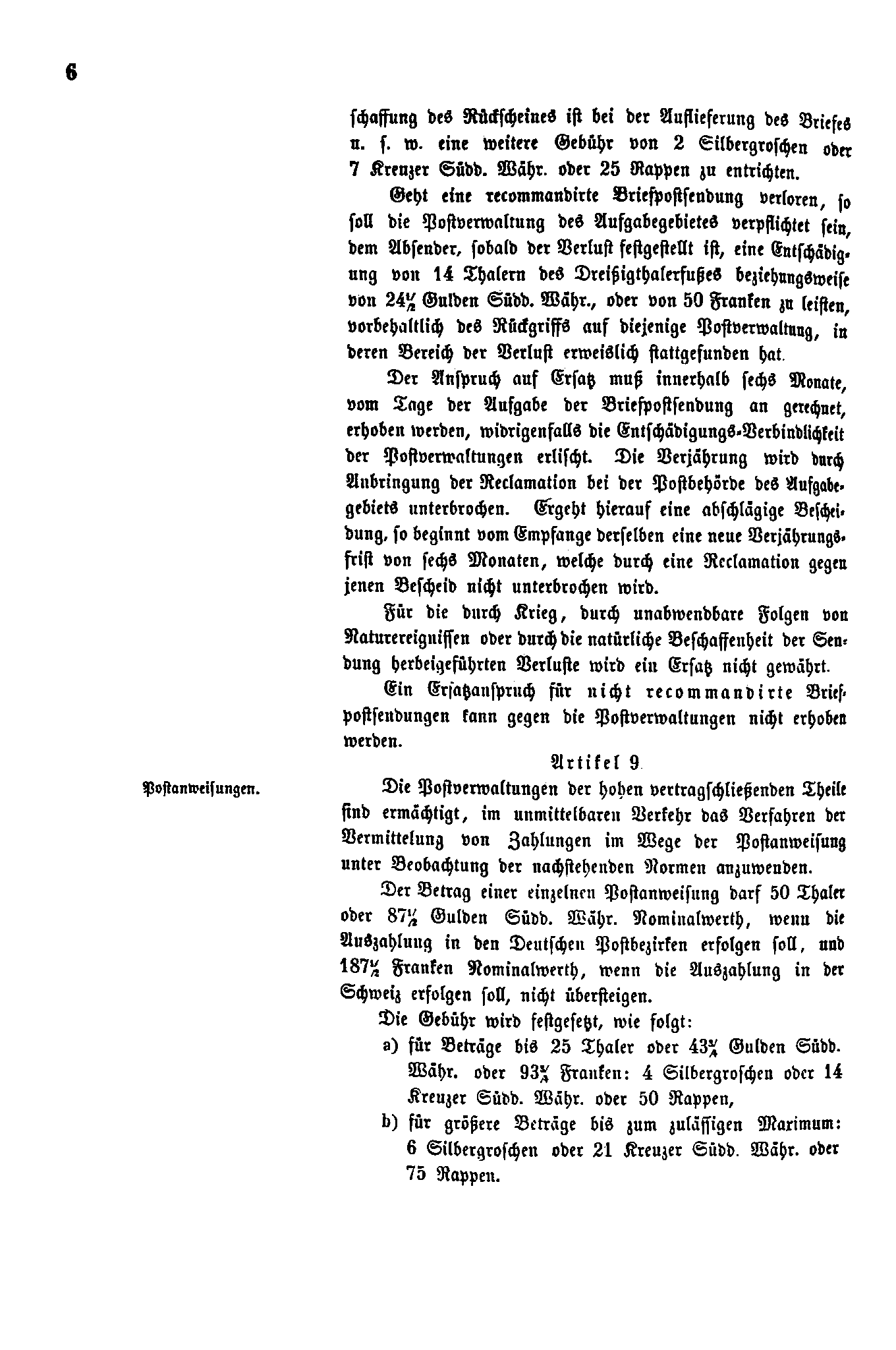 Postverordnungen - Schweiz