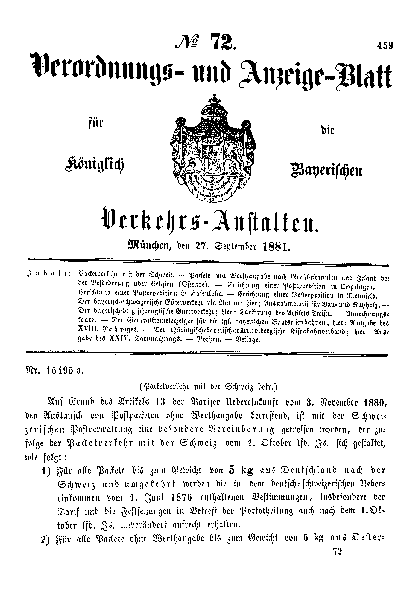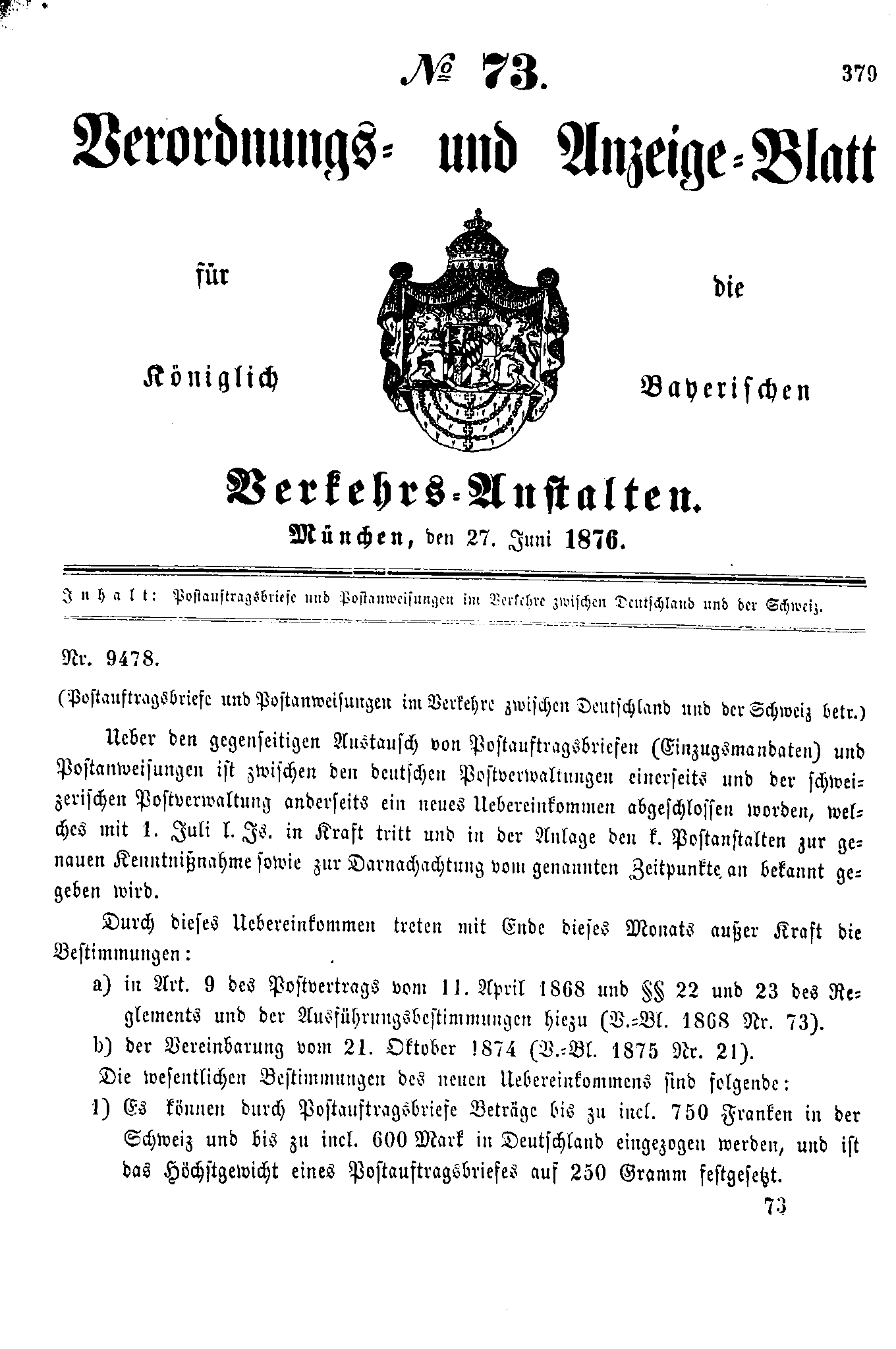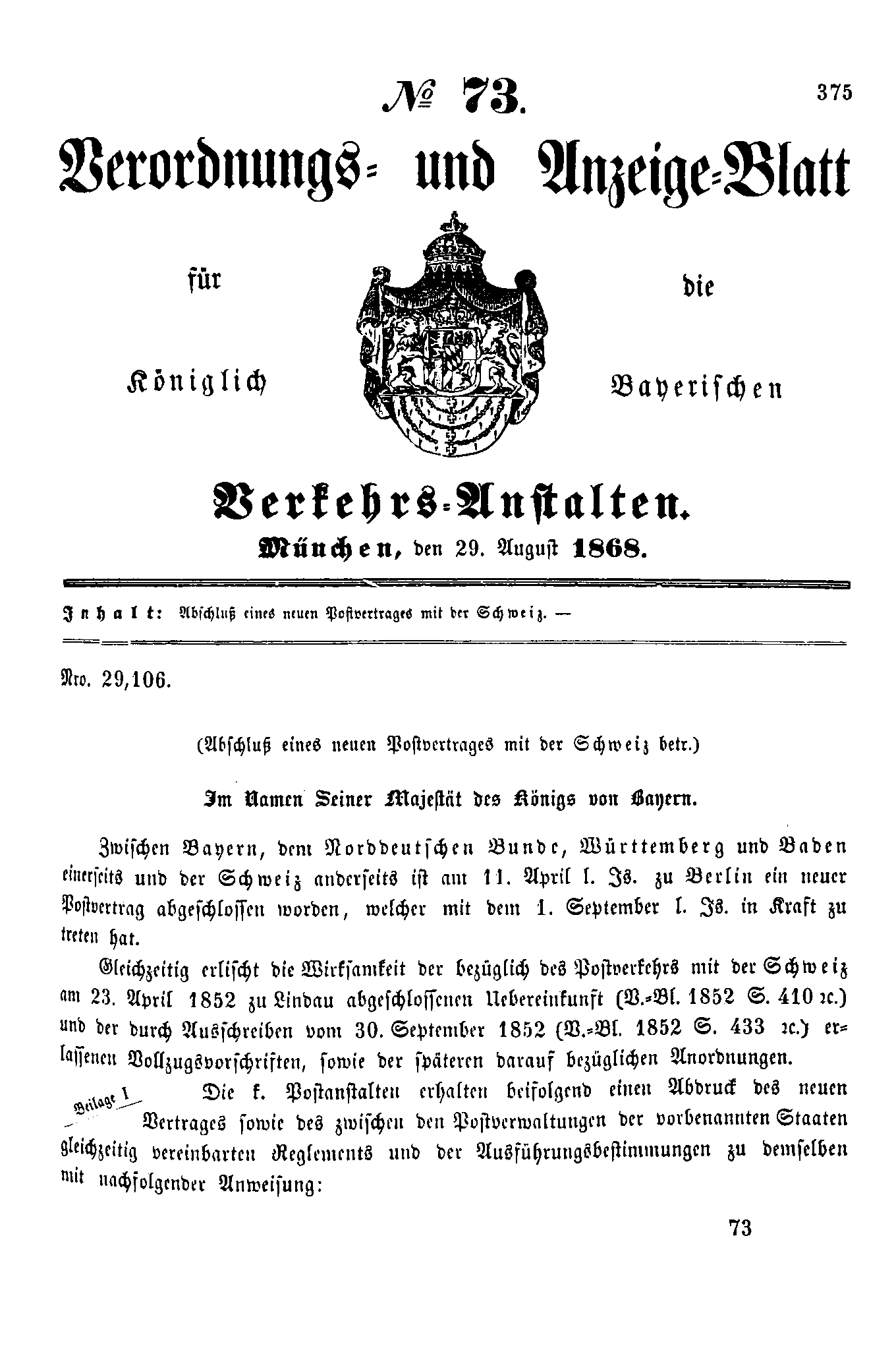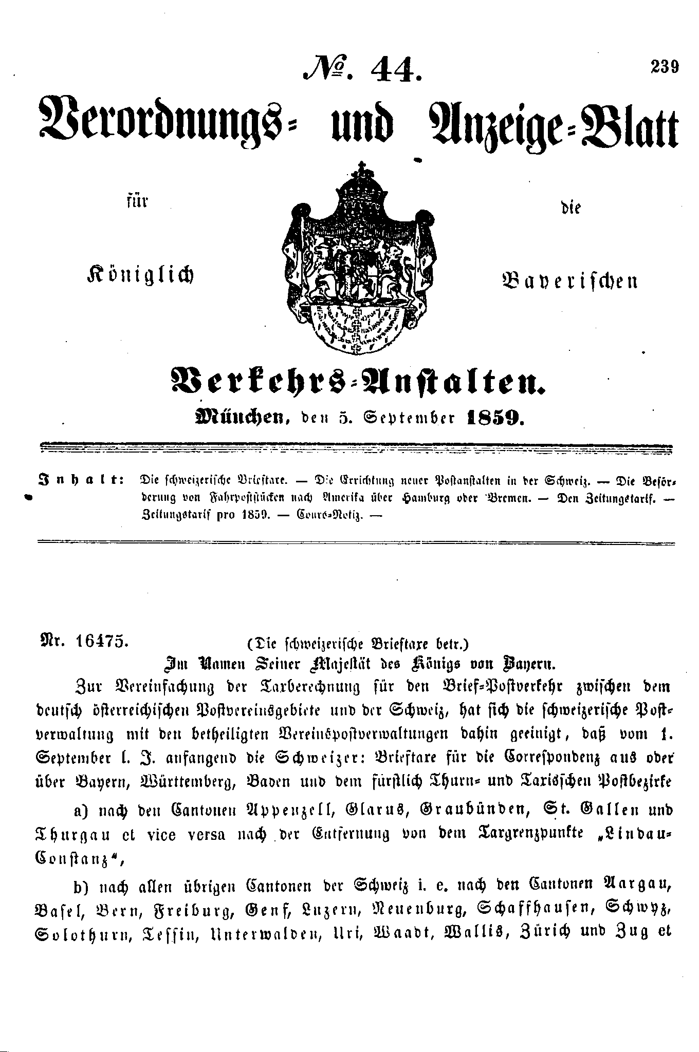 Verordnungs- und Anzeige-Blätter