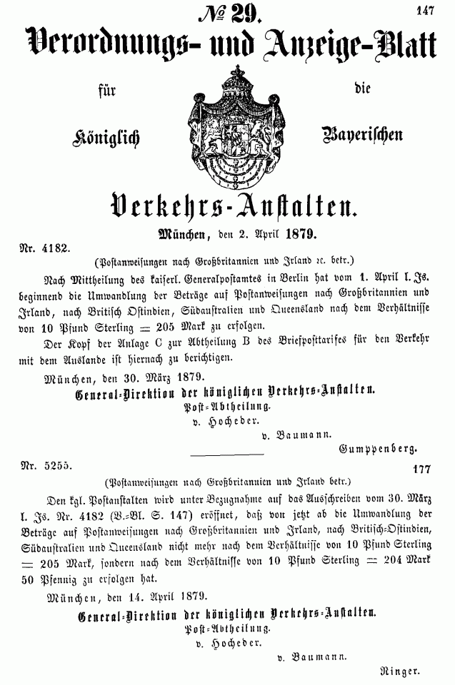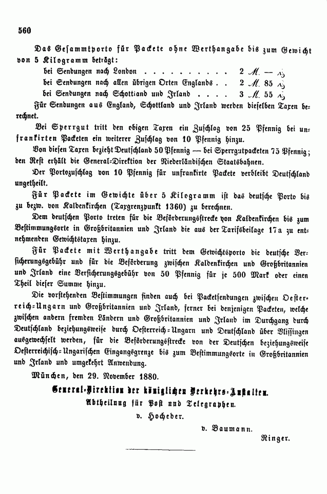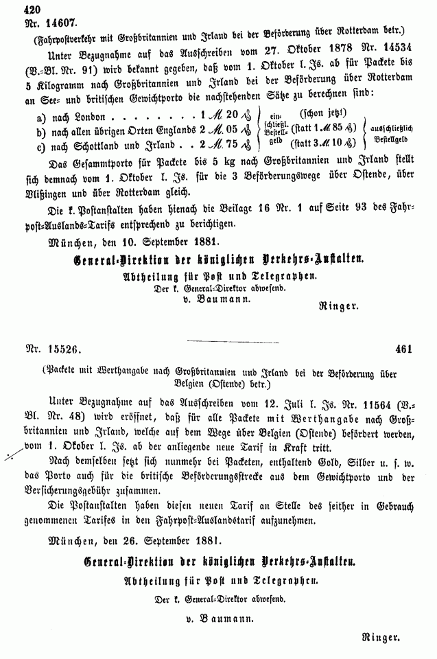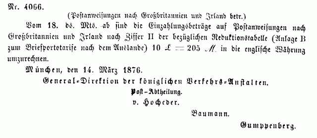 Postverordnungen - Grossbritannien, Irland und Helgoland