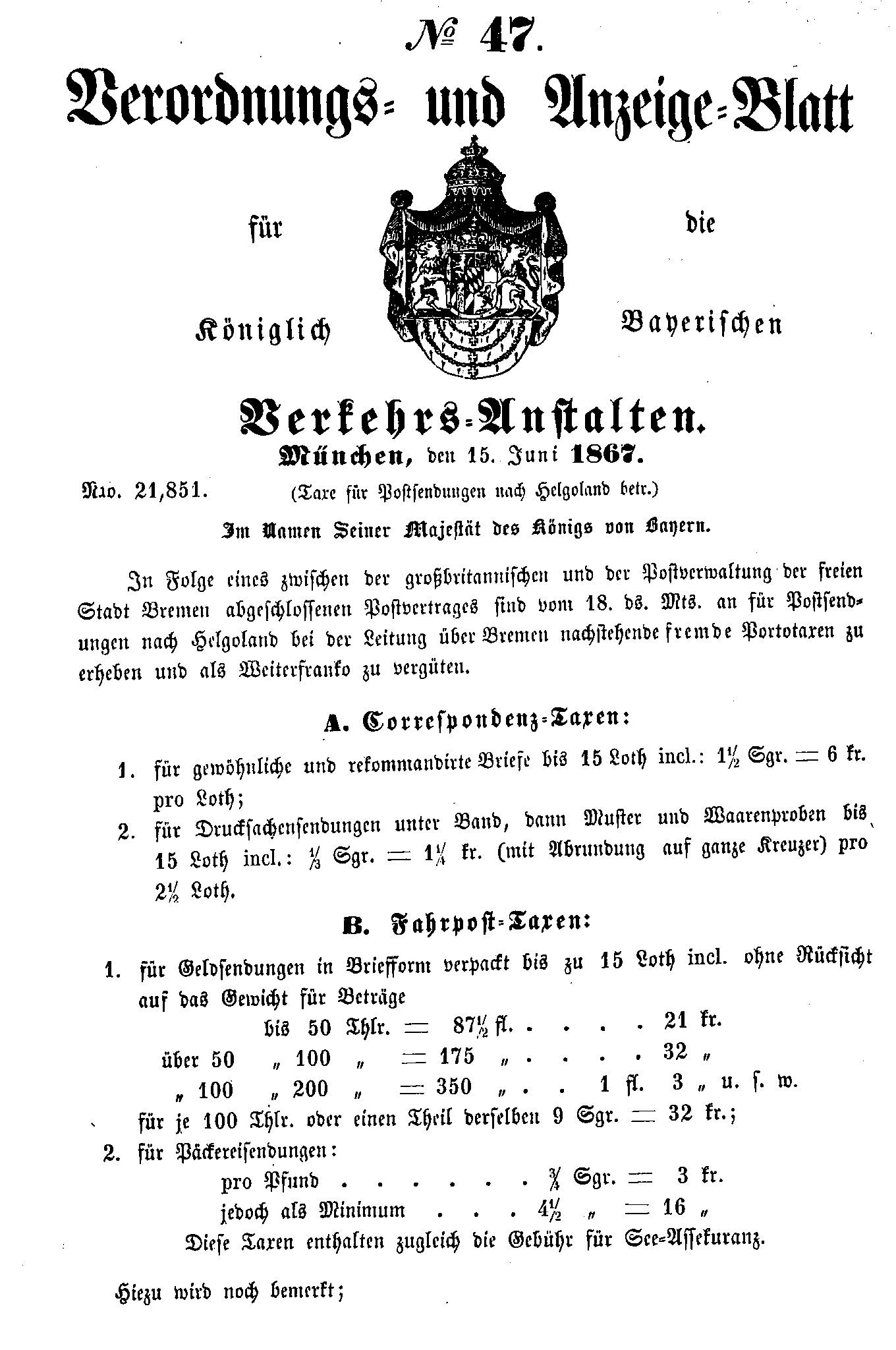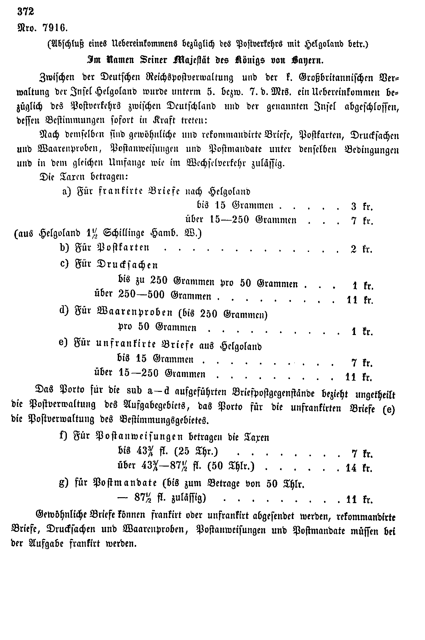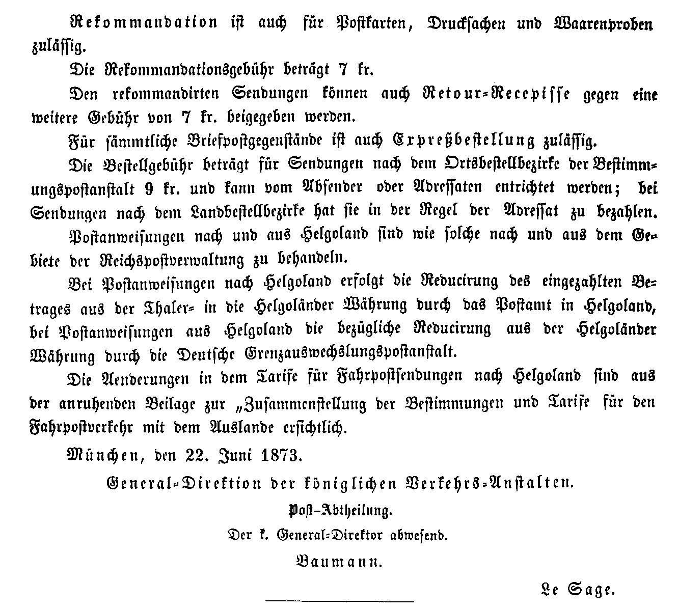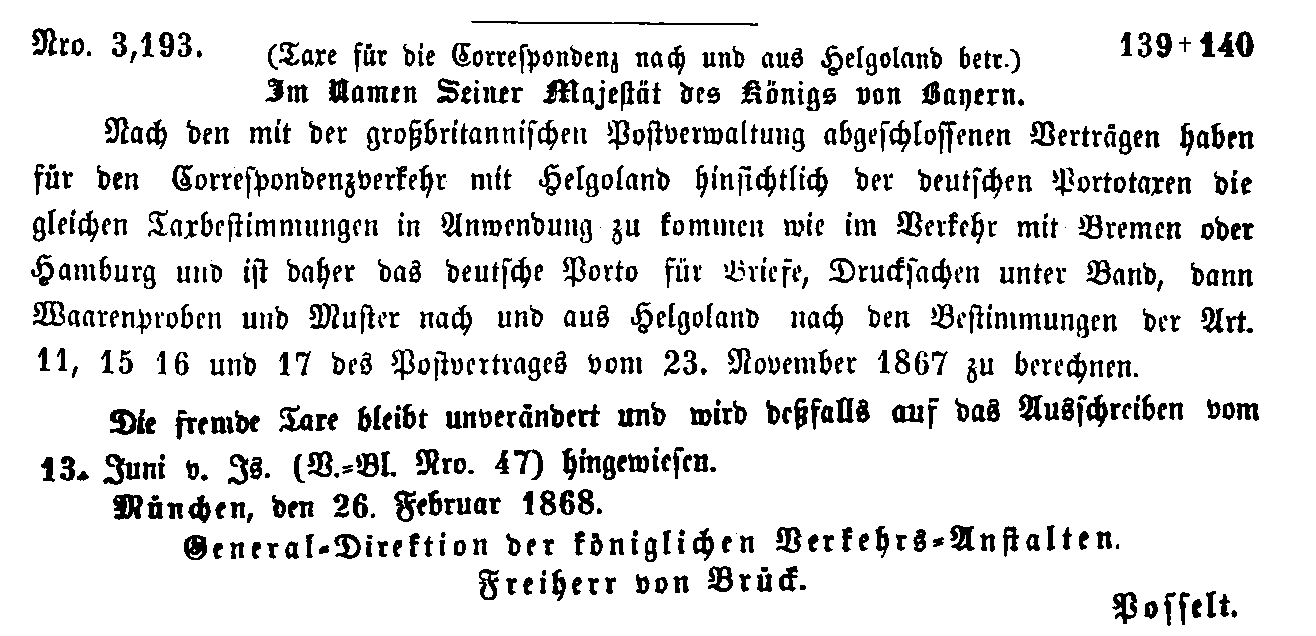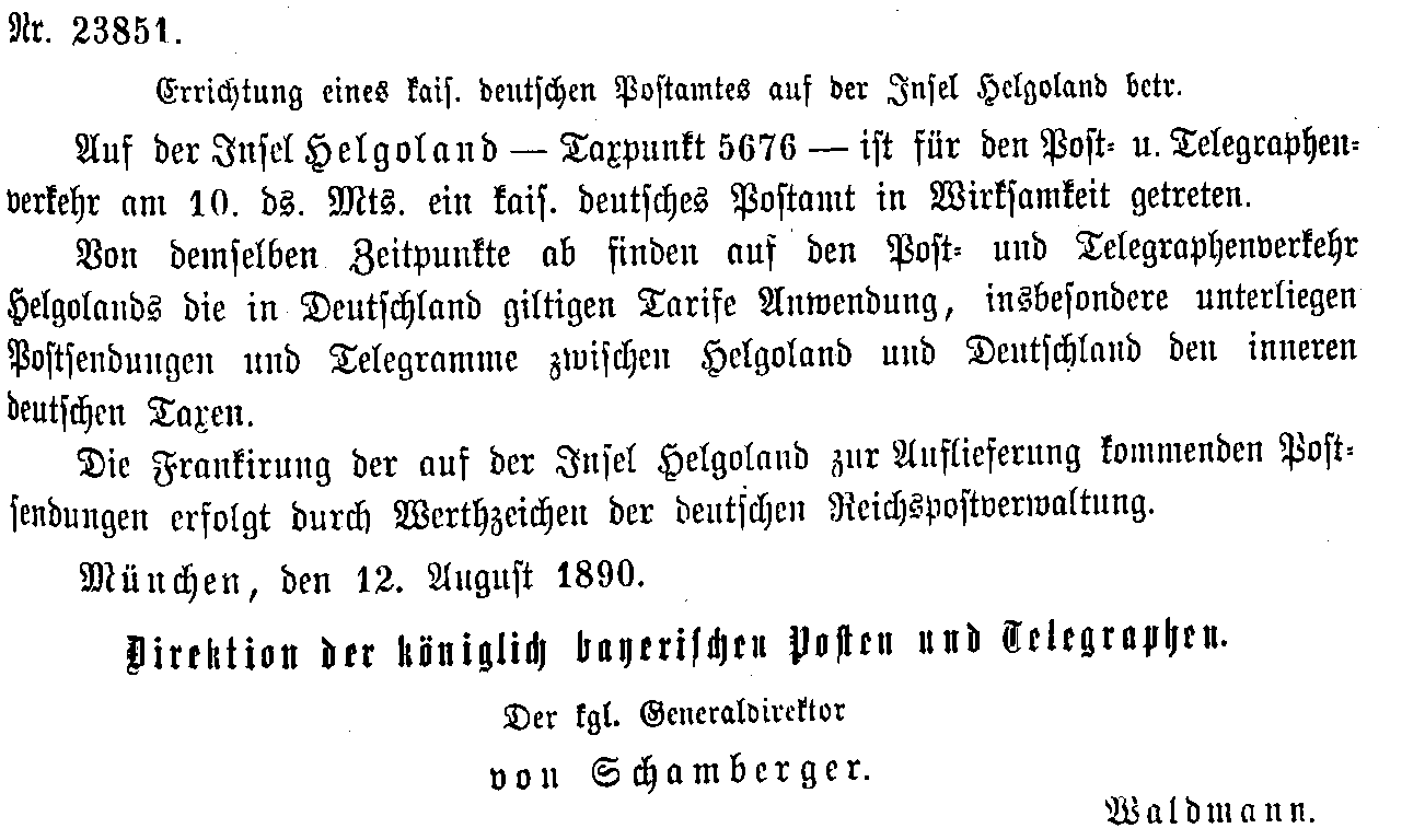 Postverordnungen - Helgoland