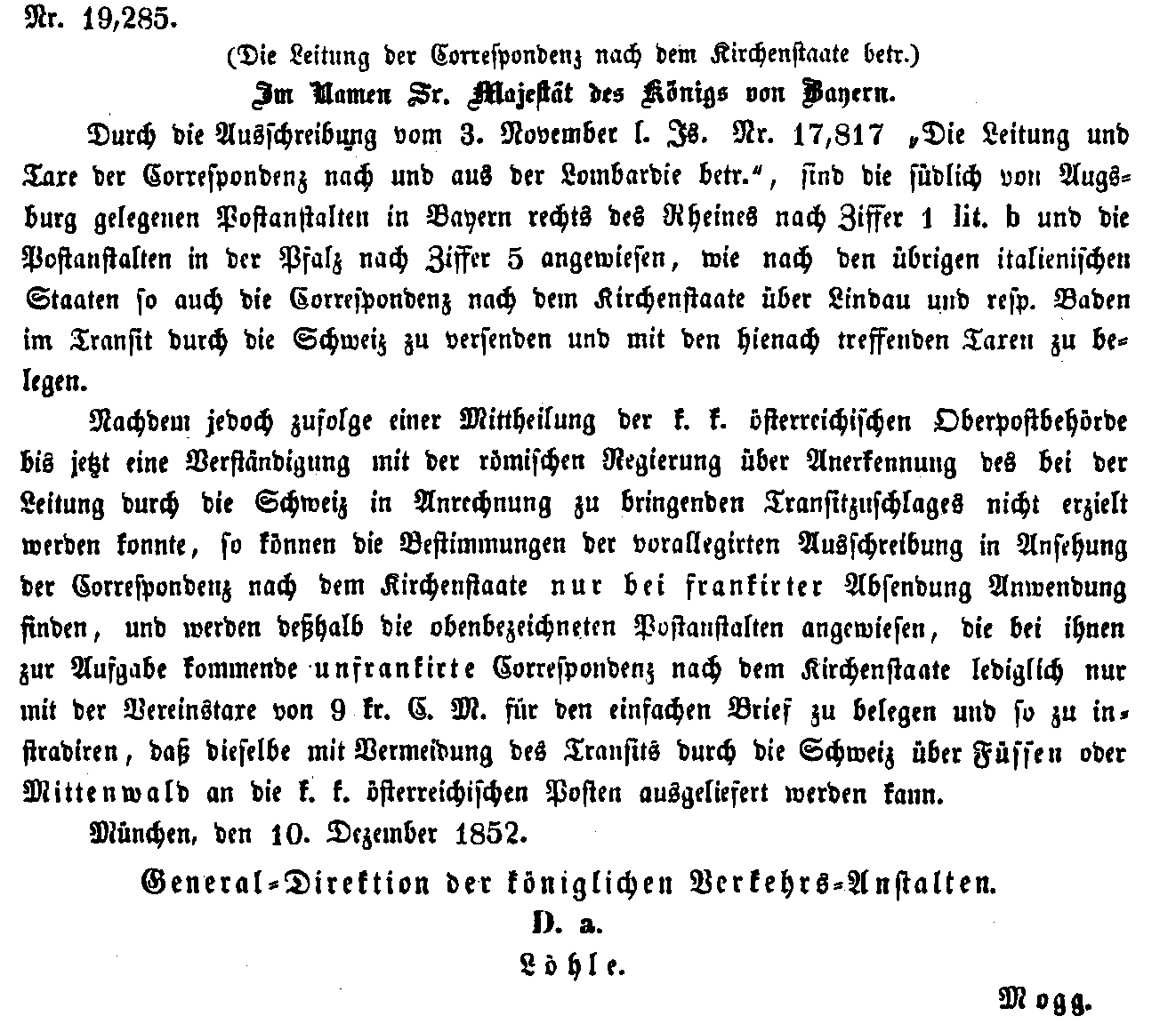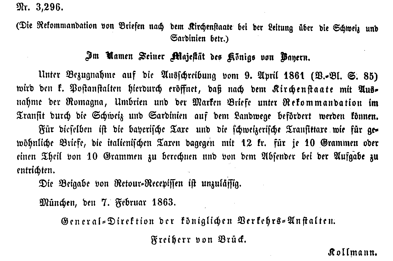 Postverordnungen - Kirchenstaat
