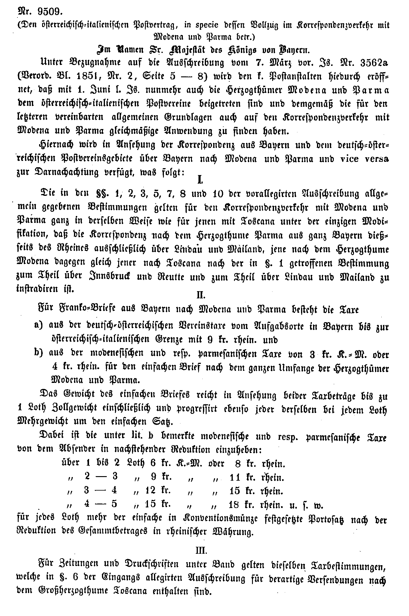 Postverordnungen - Parma