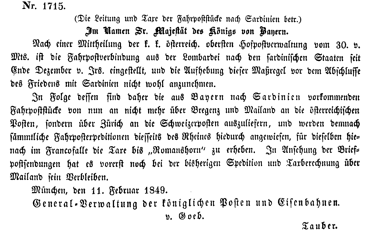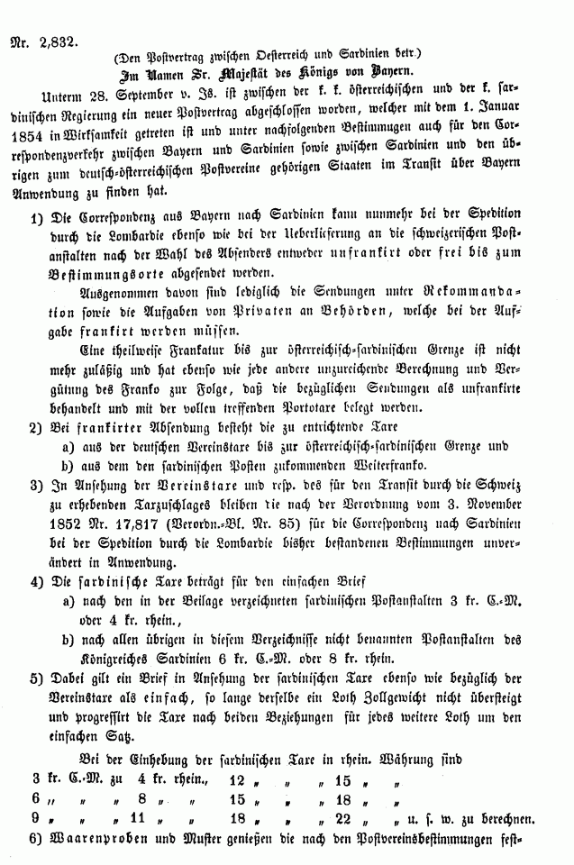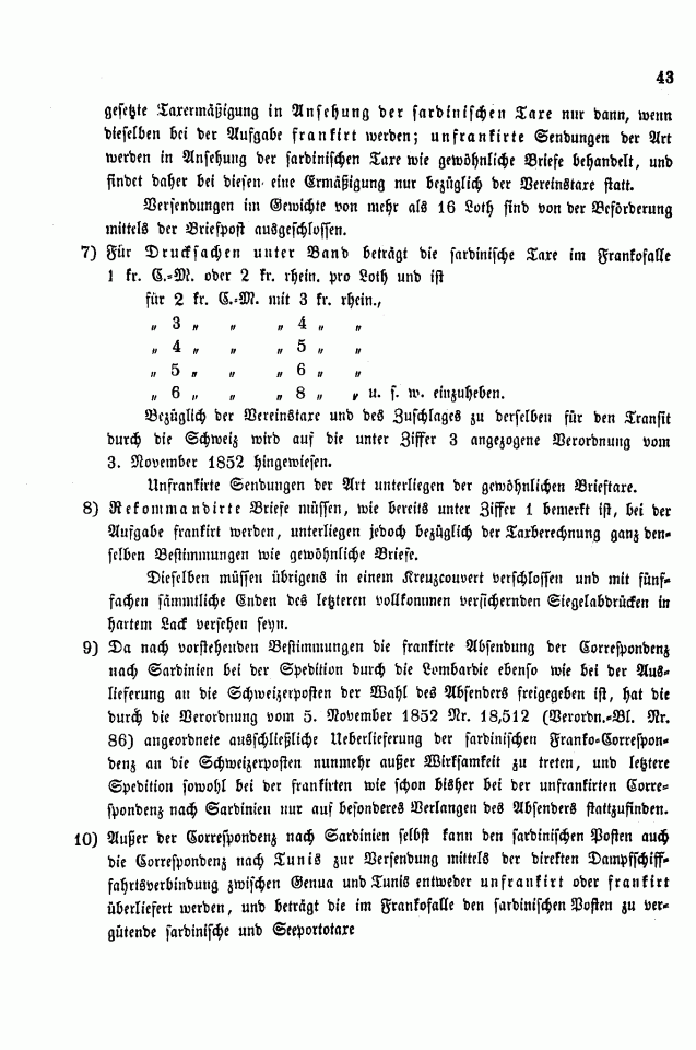 Postverordnungen - Sardinien