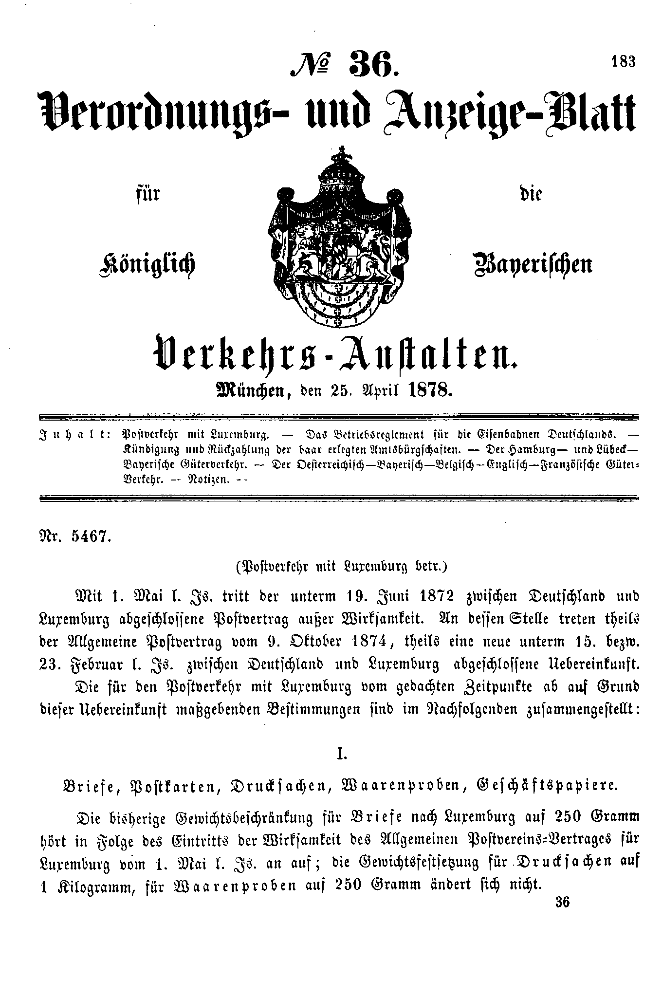 Verordnungs- und Anzeige-Blätter