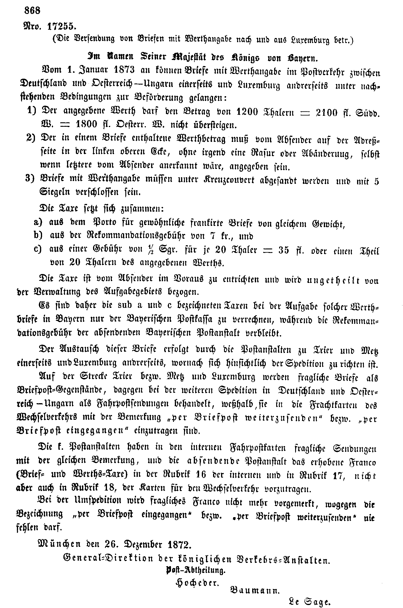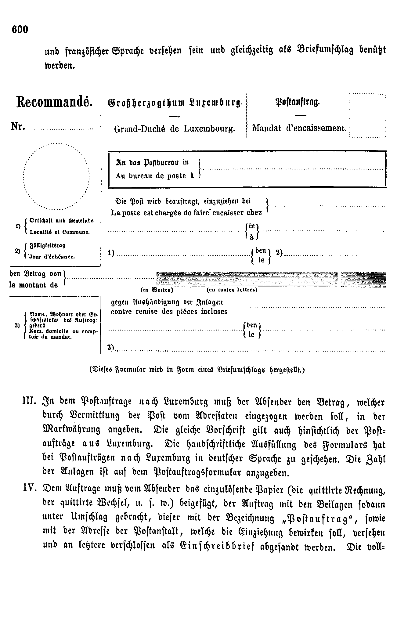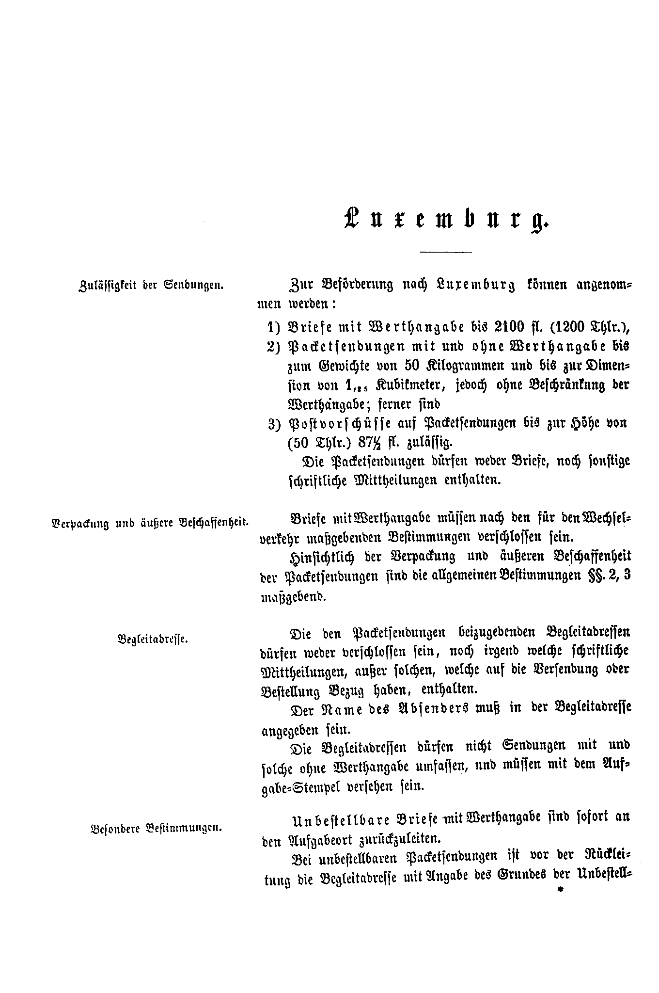 Postverordnungen - Luxemburg