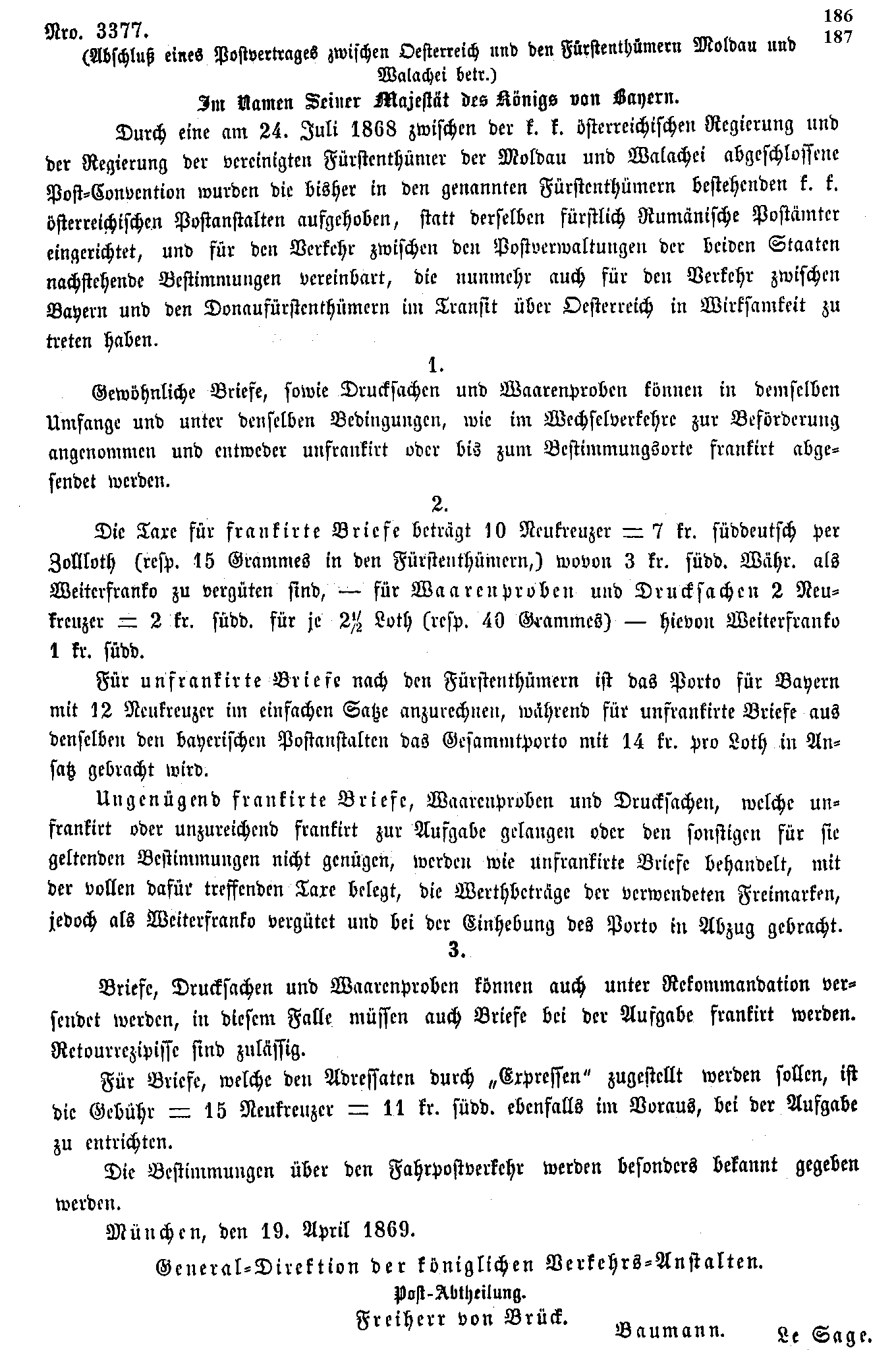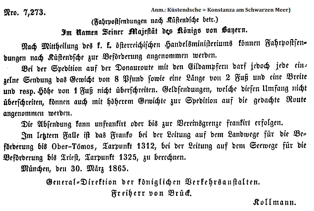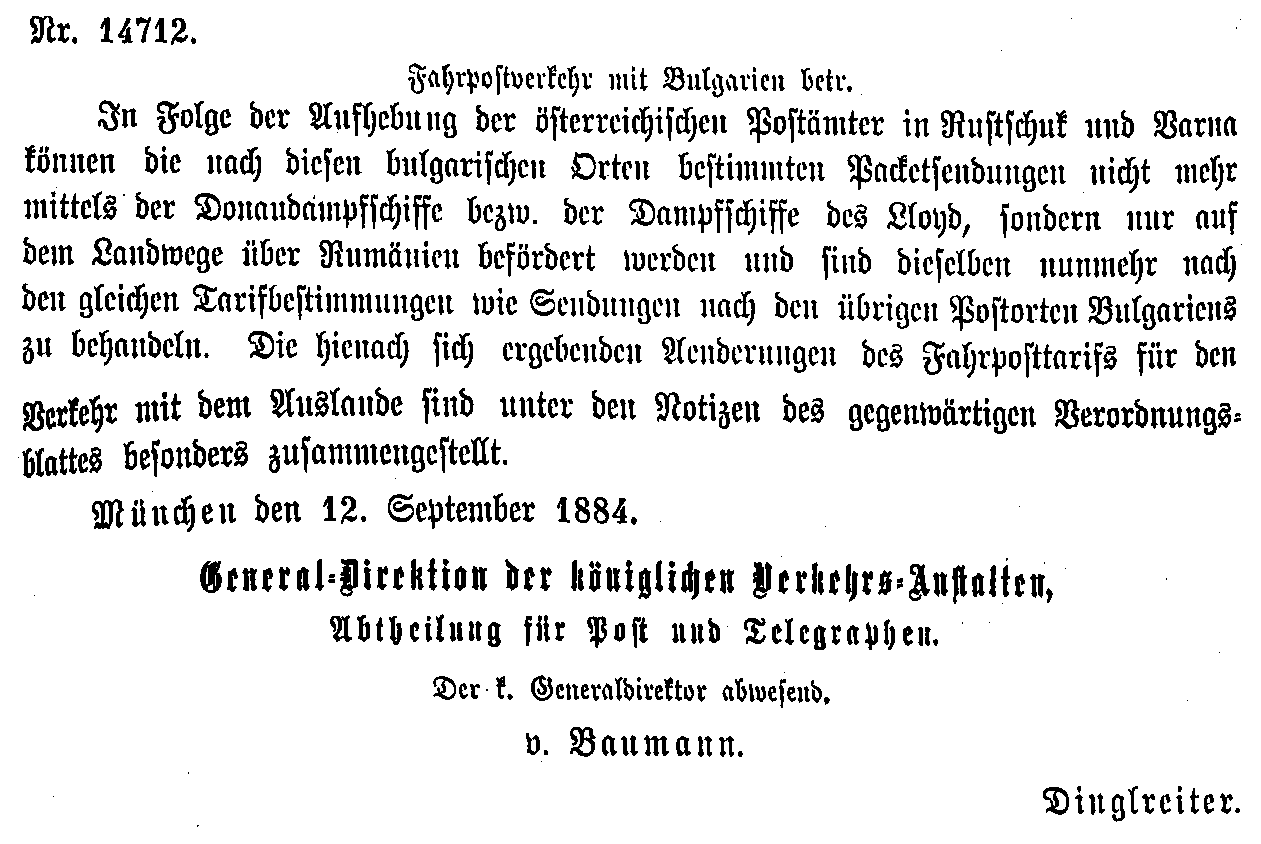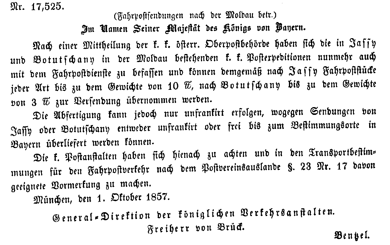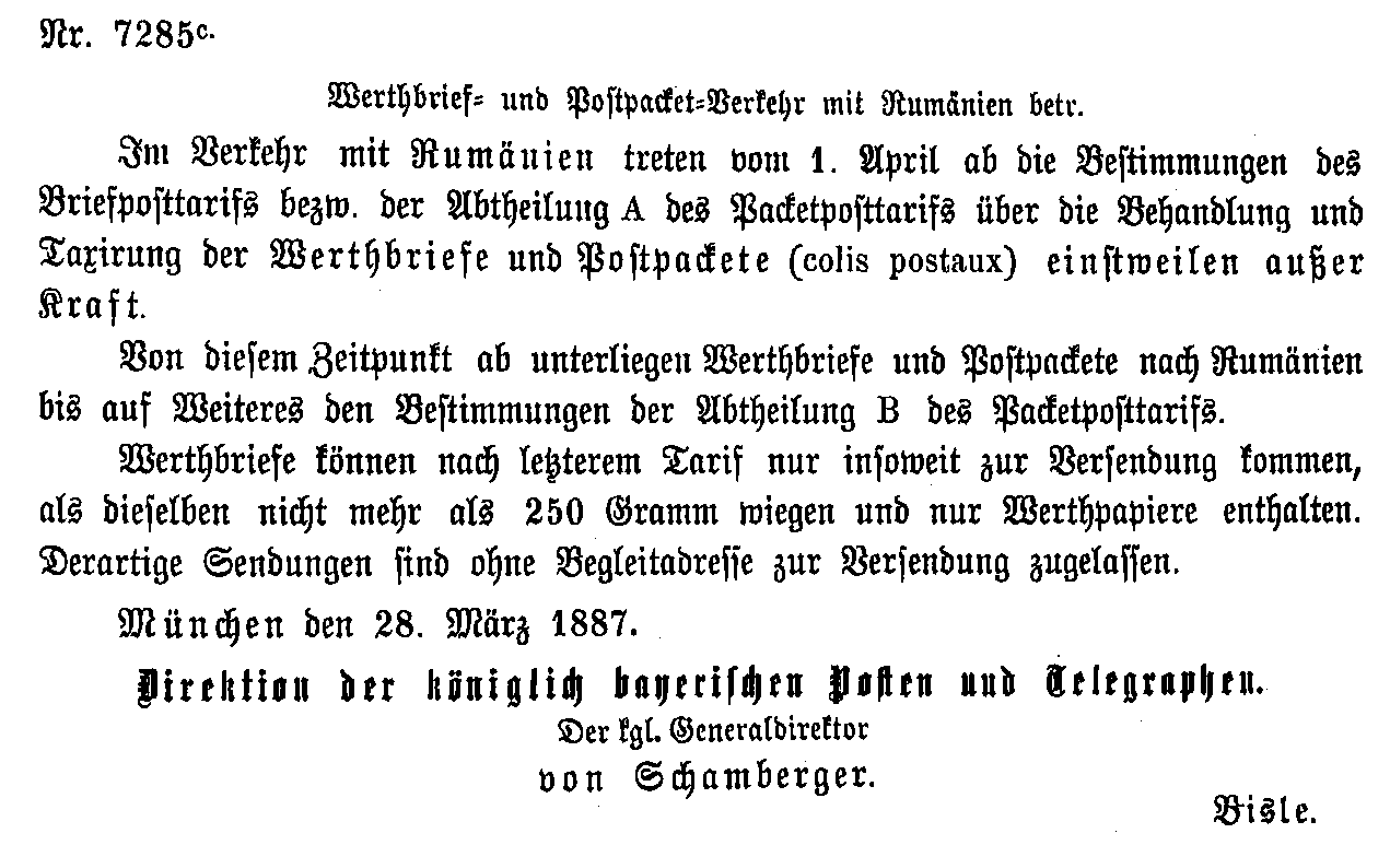 Postverordnungen - Rumänien, Walachei und Moldawien