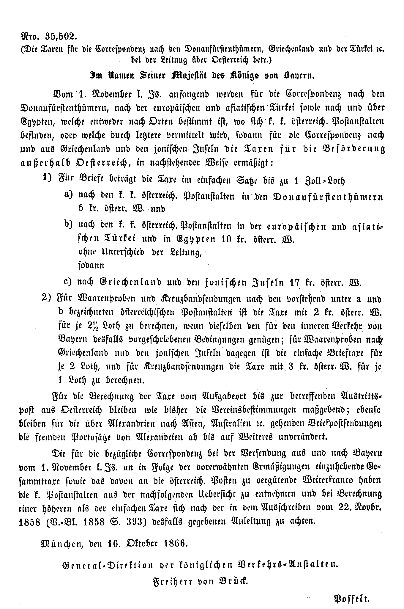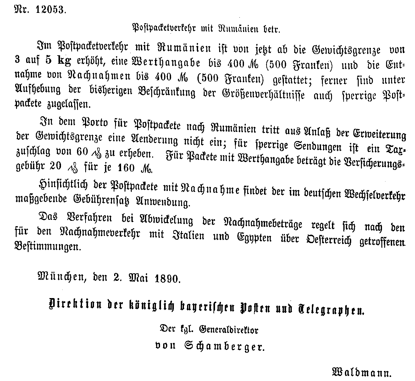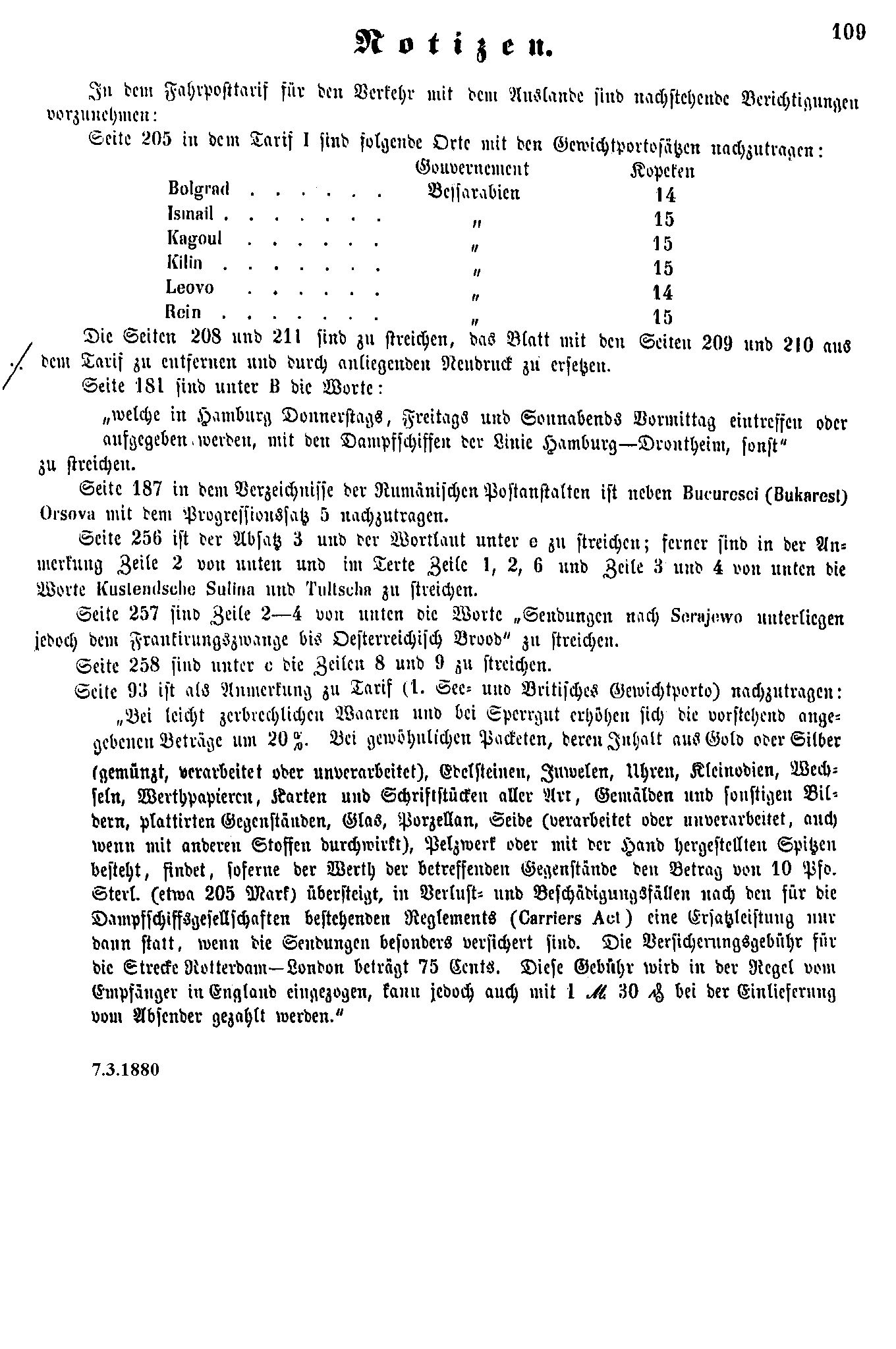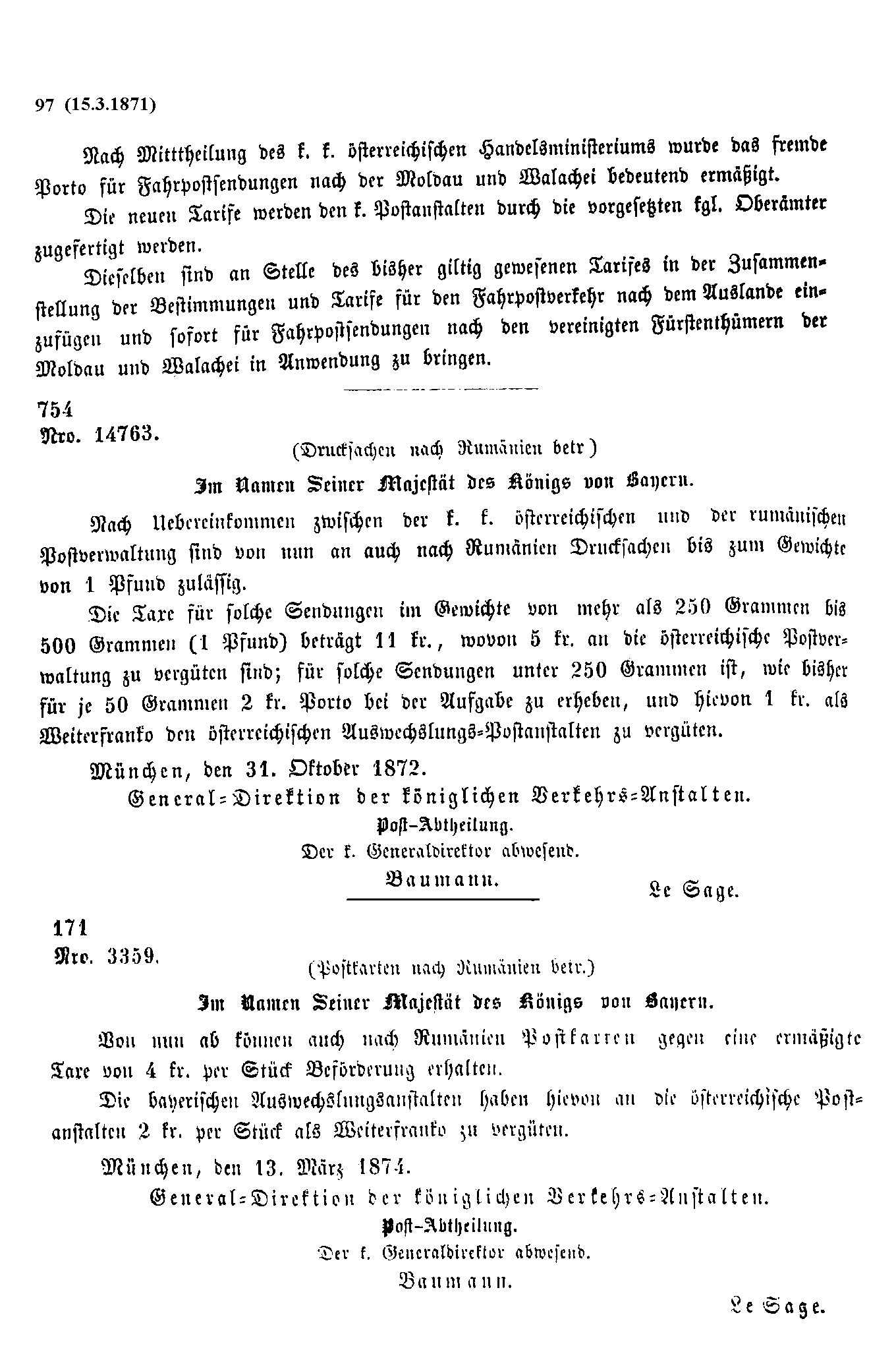 Postverordnungen - Rumänien, Walachei und Moldawien