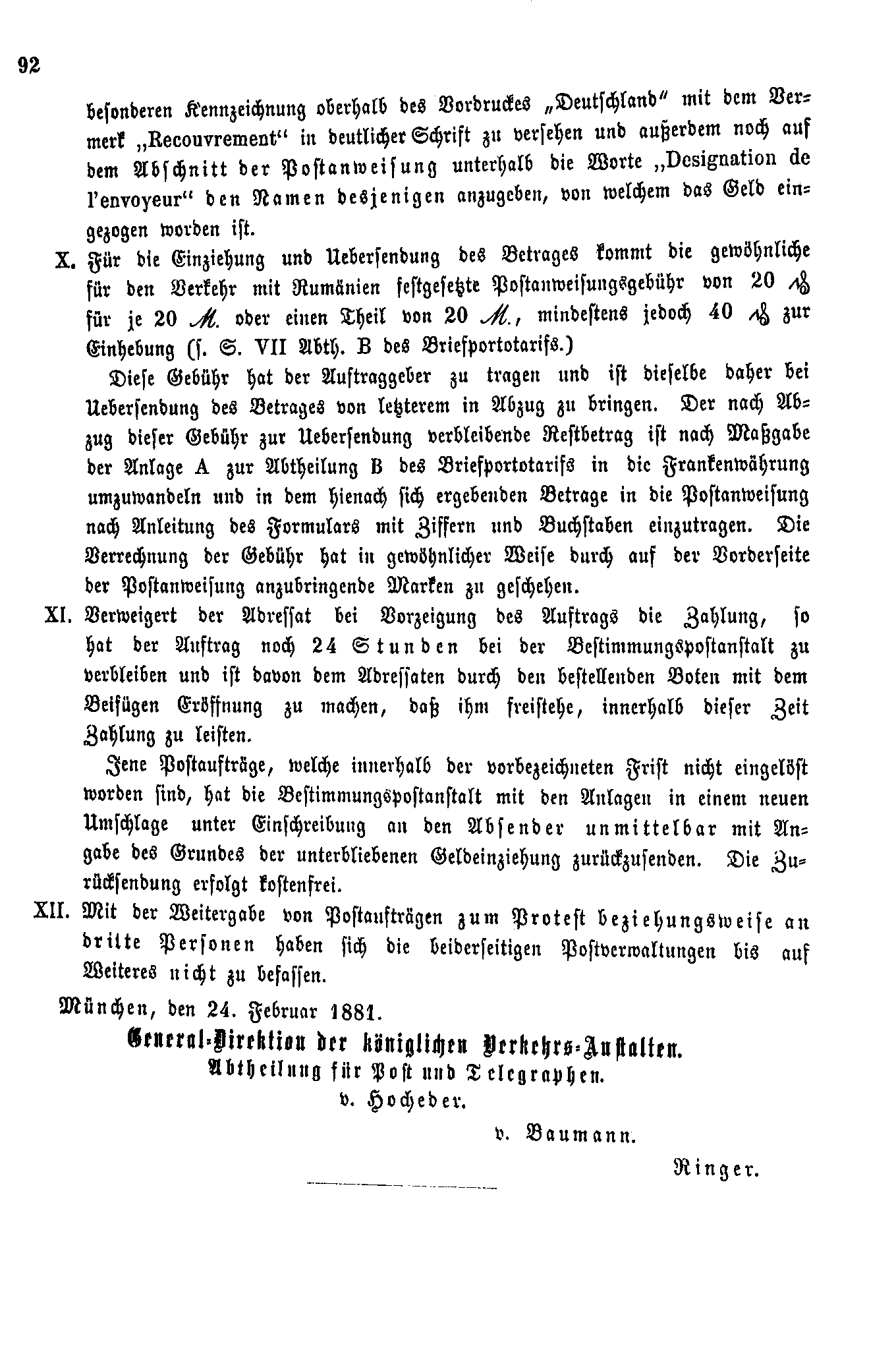 • Postverordnungen