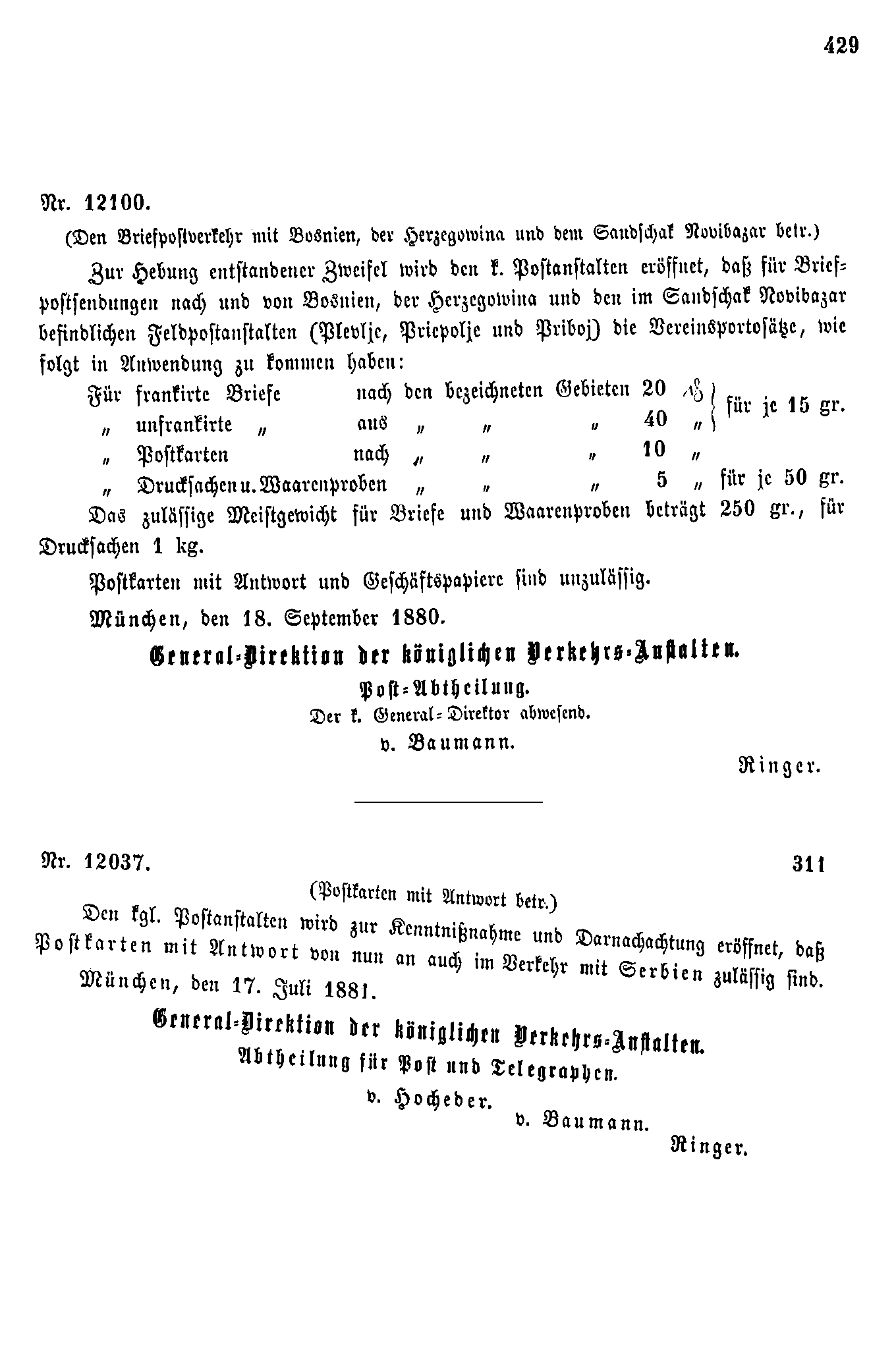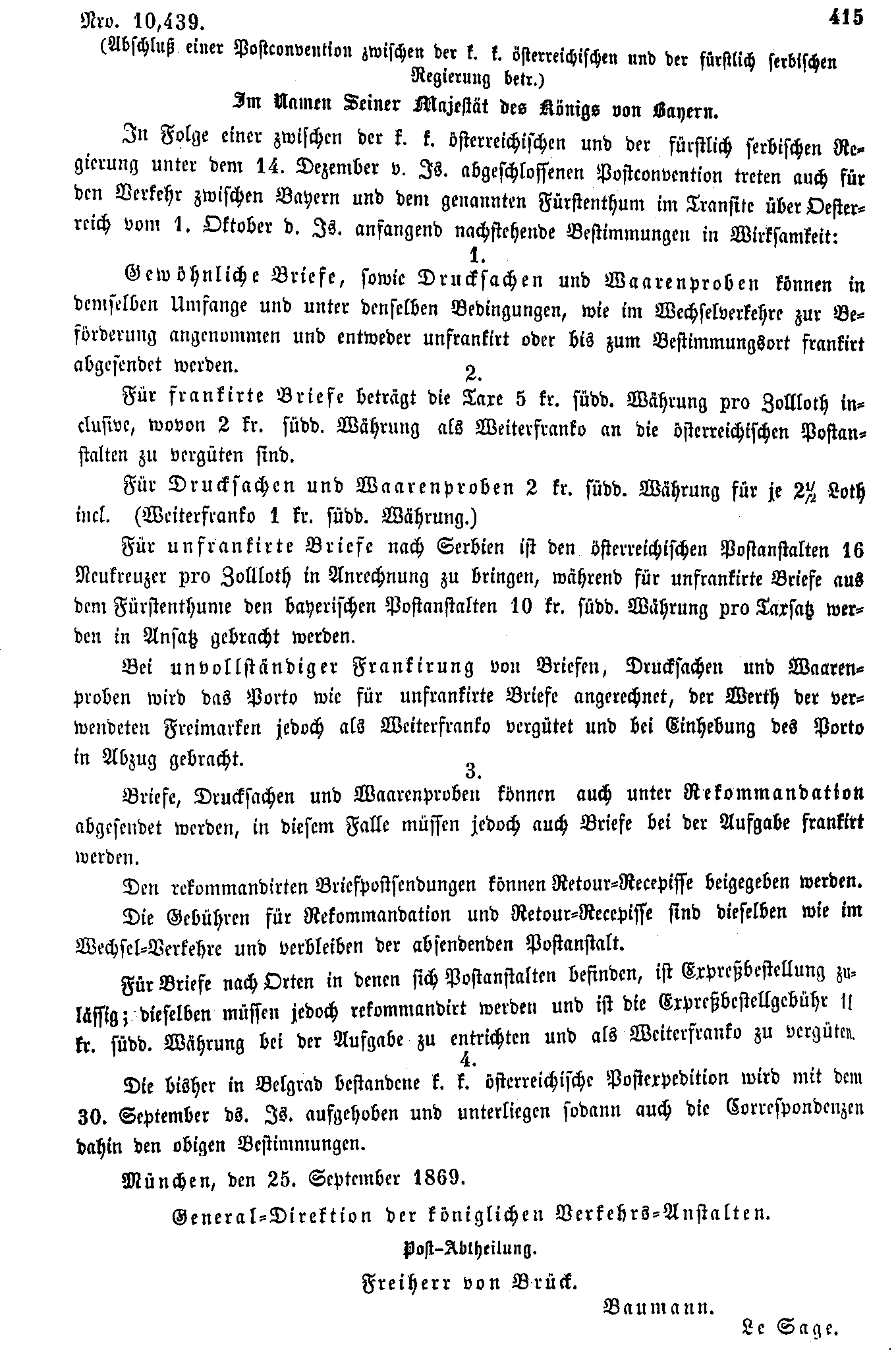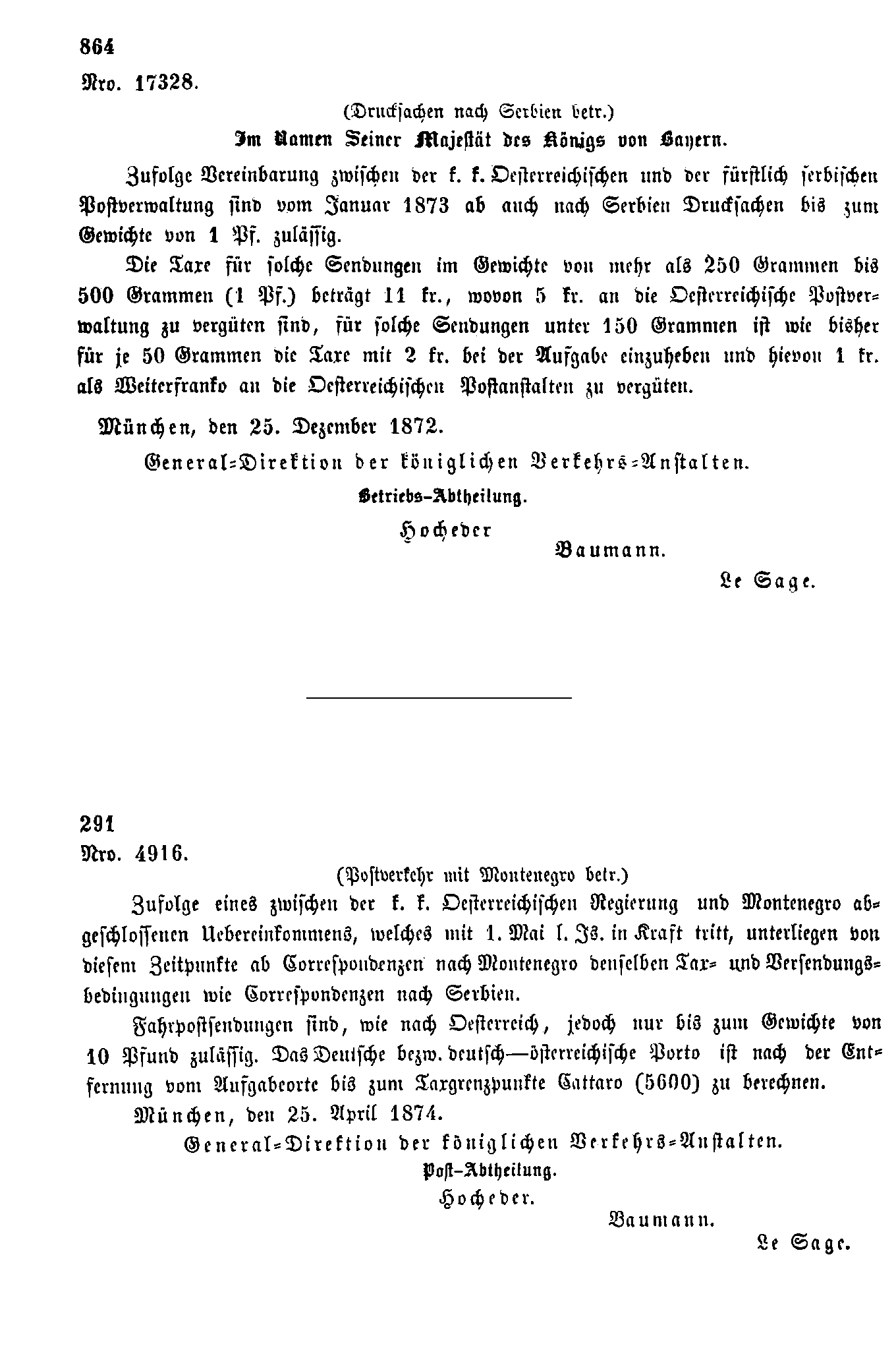 Postverordnungen - Serbien, Montenegro, Bosnien und Herzegowina