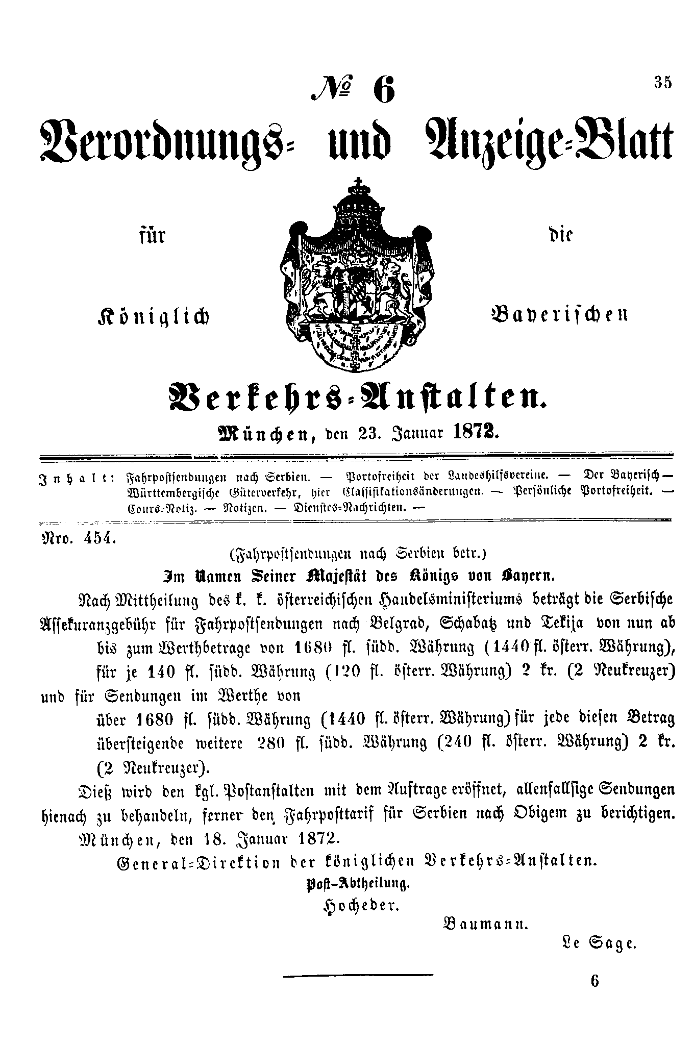 Verordnungs- und Anzeige-Blätter