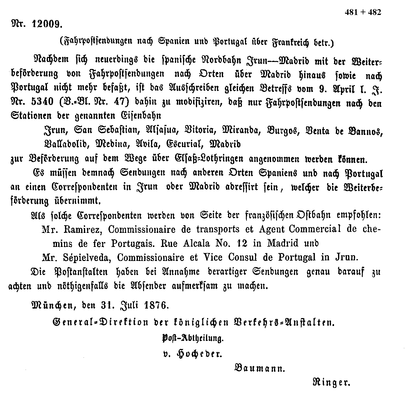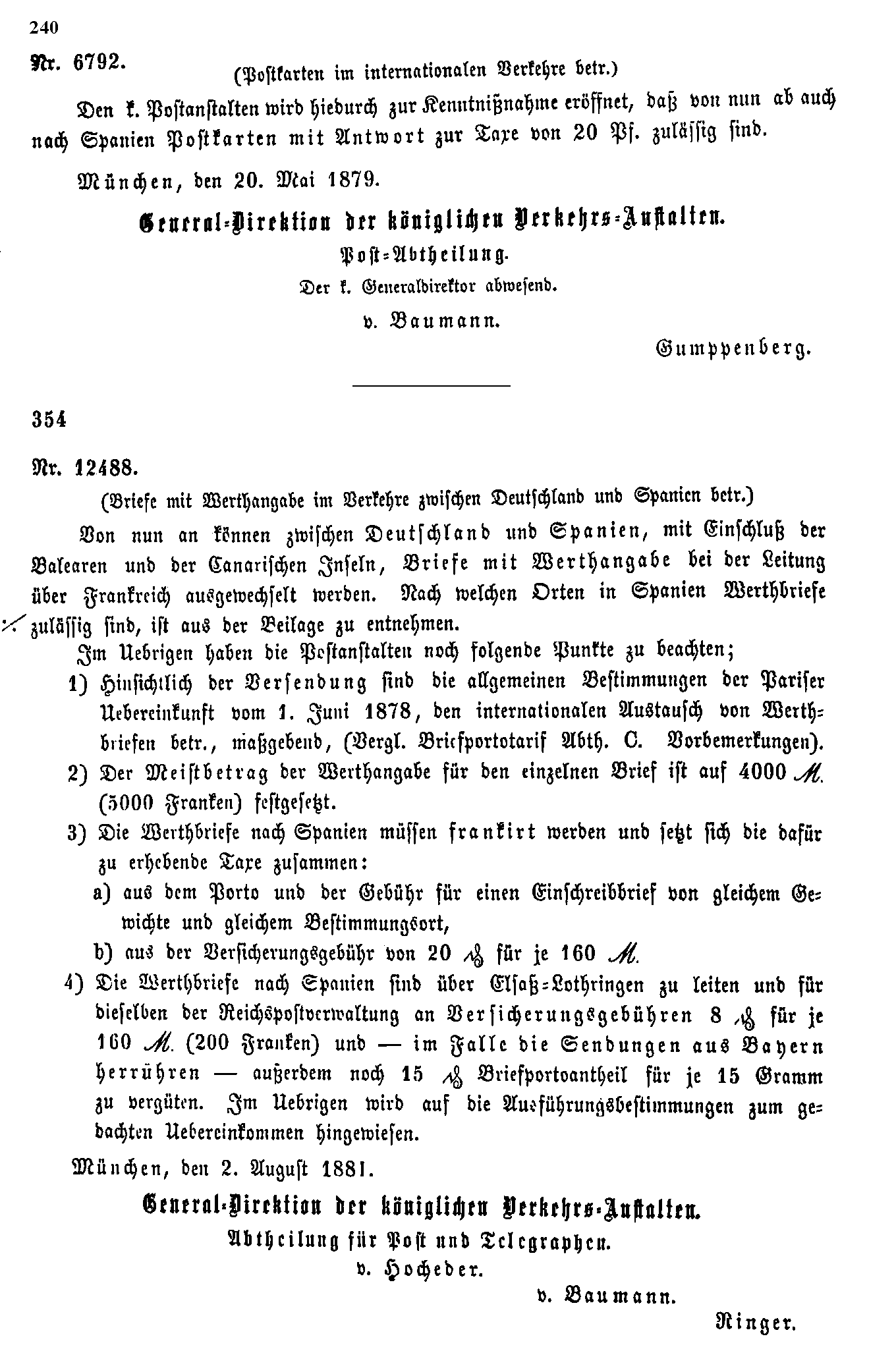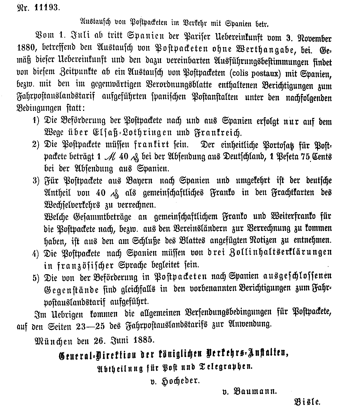 Postverordnungen - Spanien